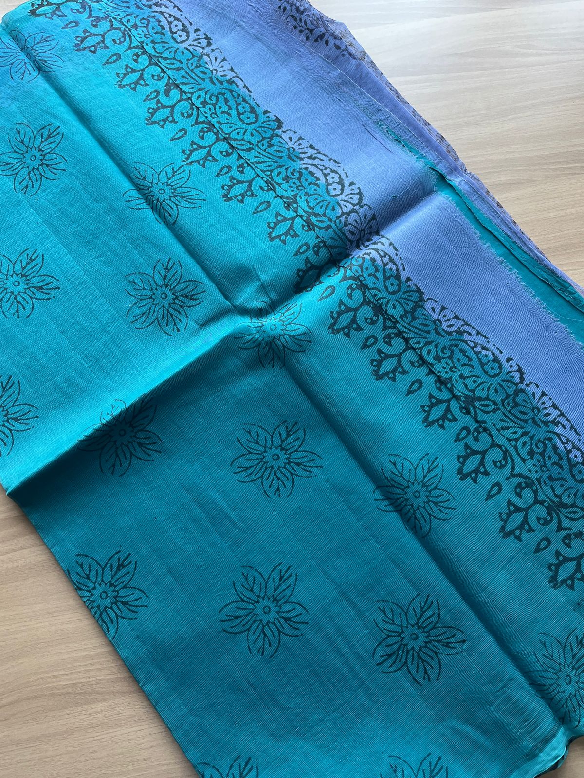 Block Printed Supernet Saree- 20573
