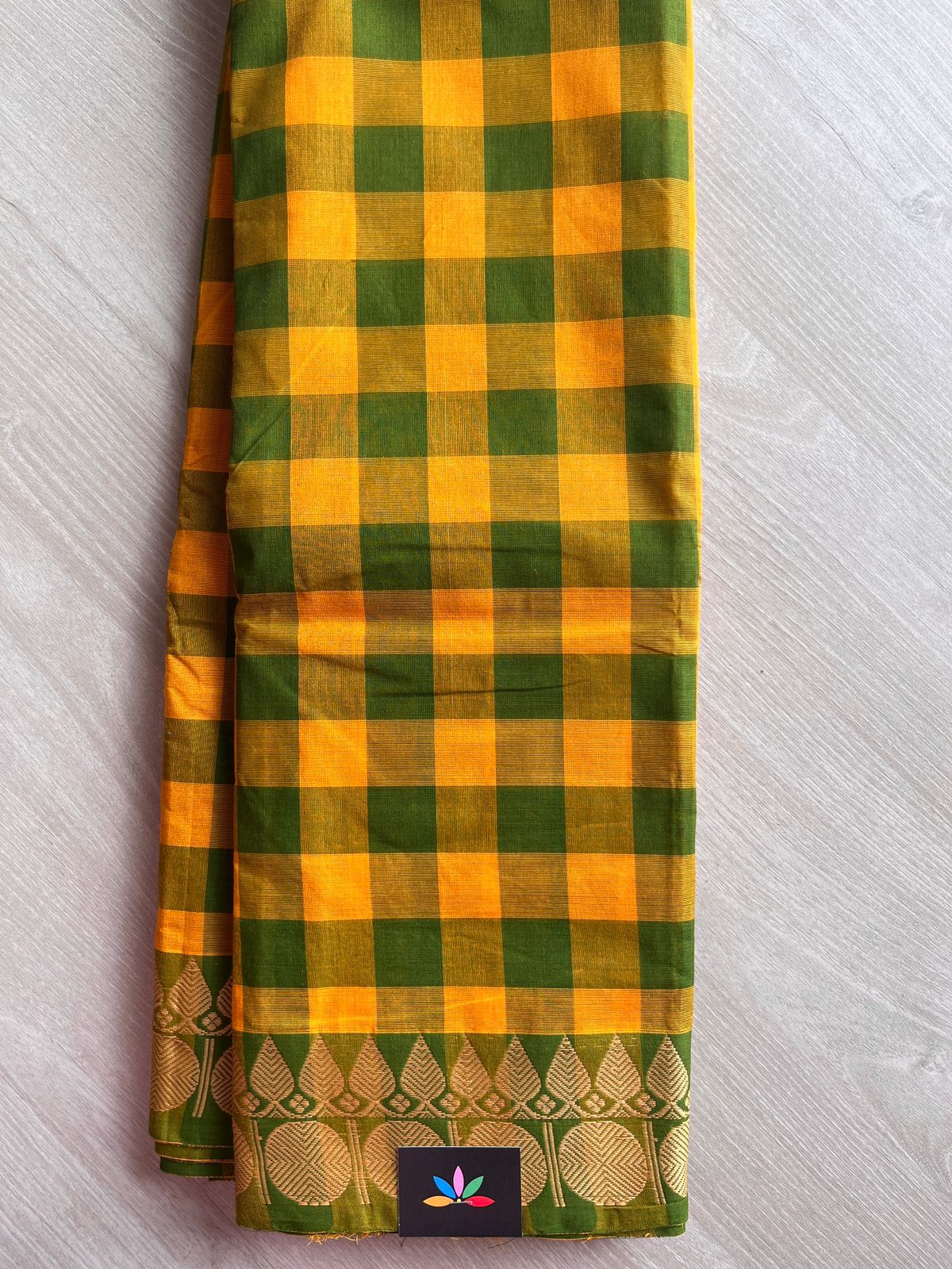 Checked Chettinad Cotton Saree (Without blouse) - 26896