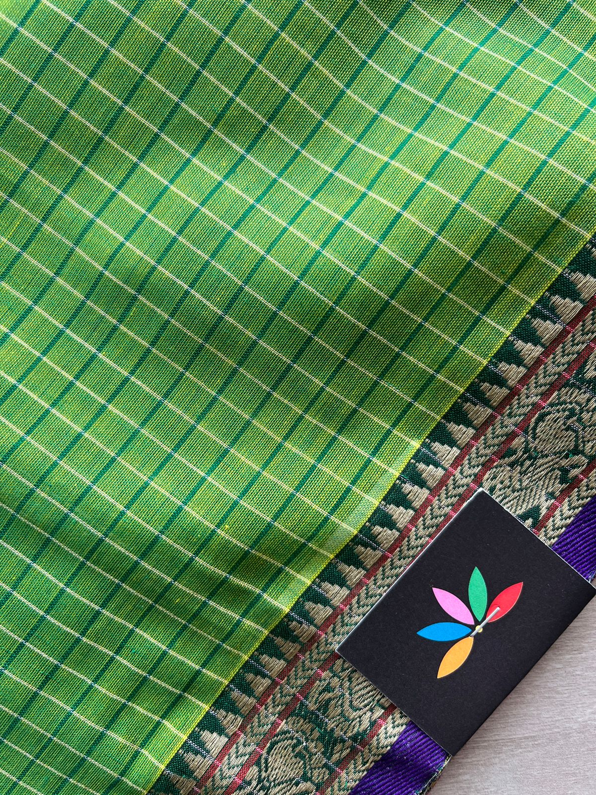 Checked Small Border Narayanpet Cotton Saree