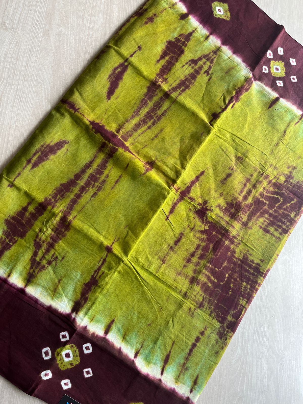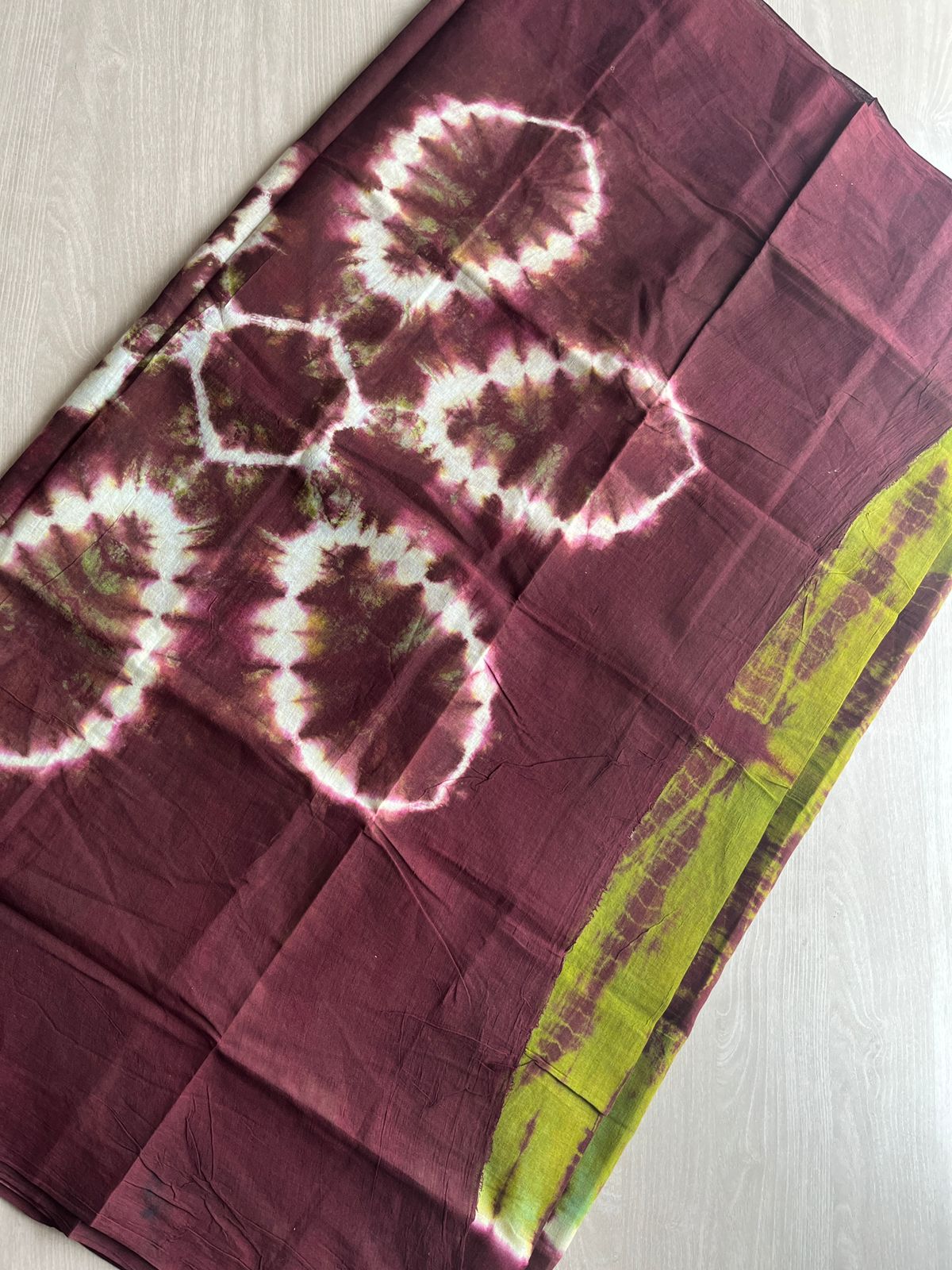 Contrast Border Shibori Printed Cotton Saree