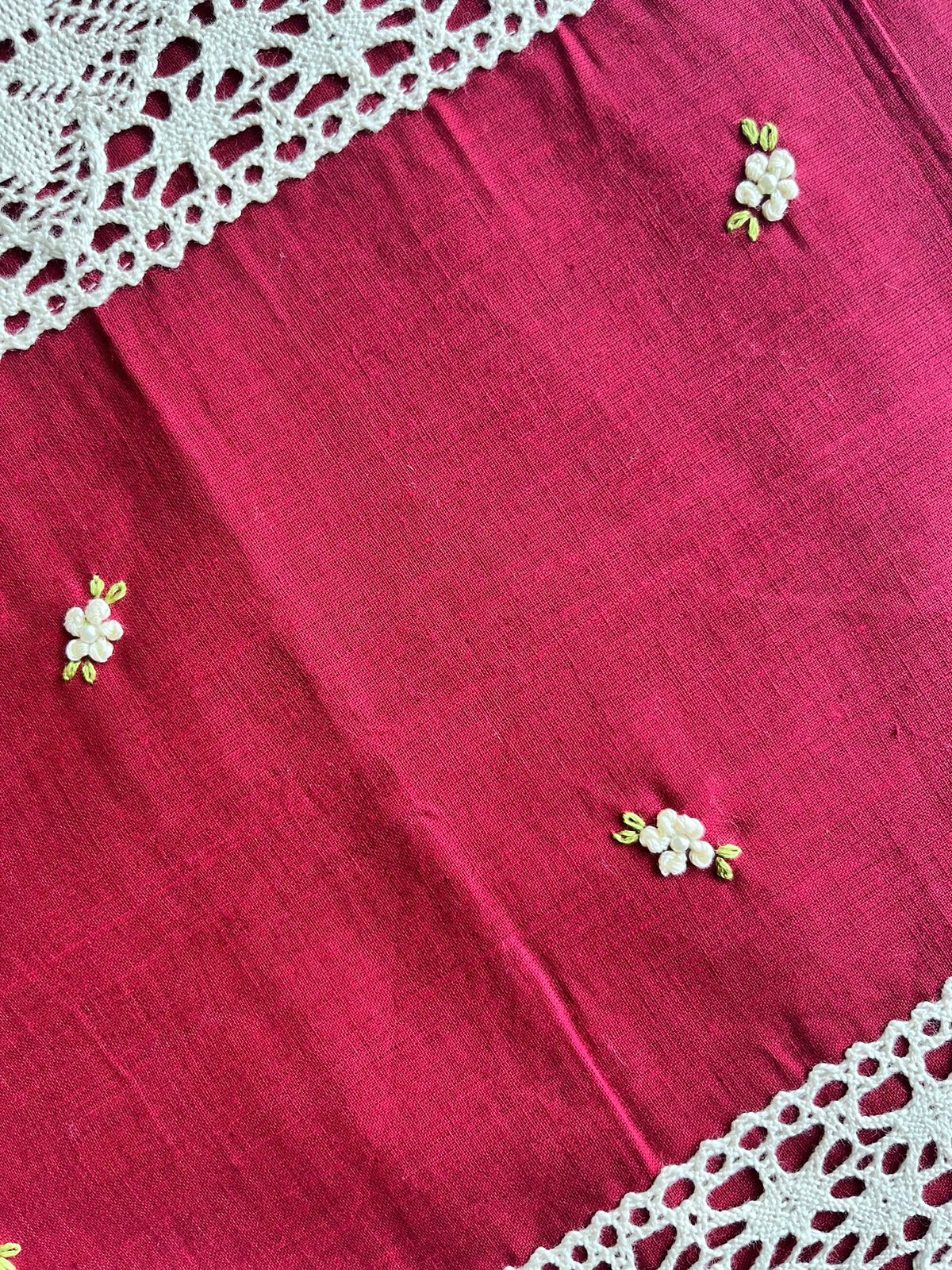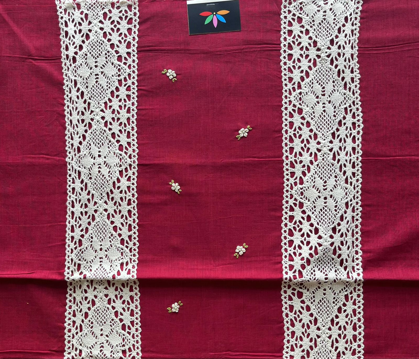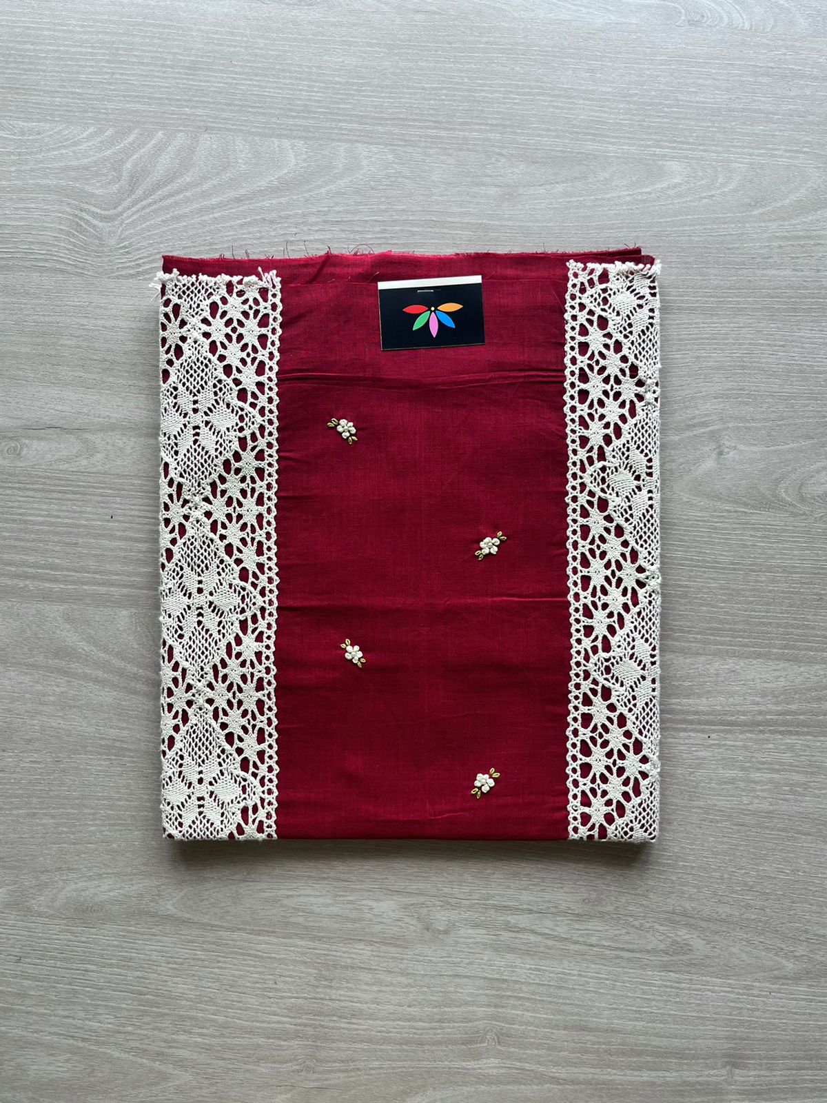 Maroon hand embroidered Cotton with lace on yoke Kurti Fabric