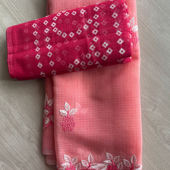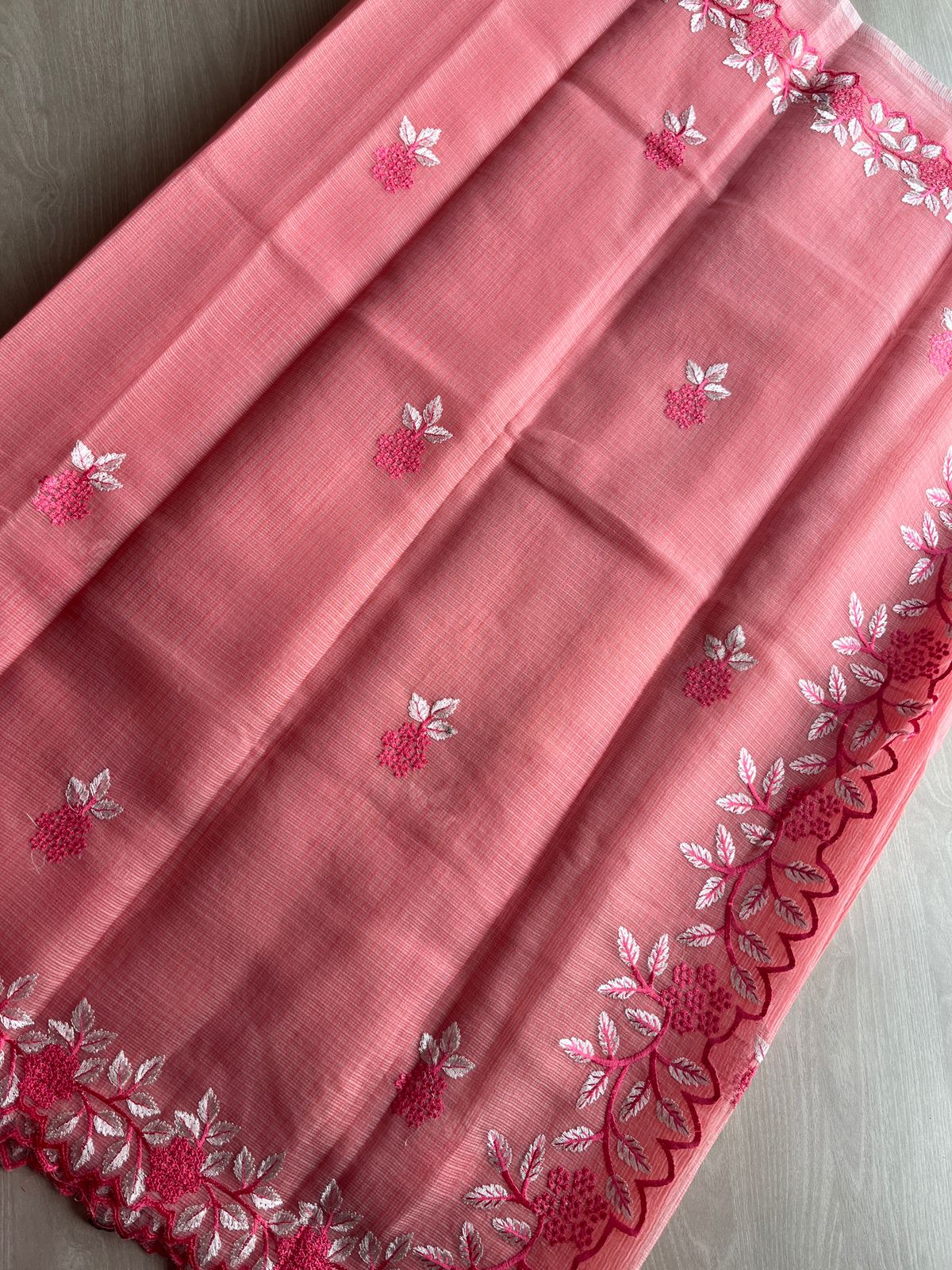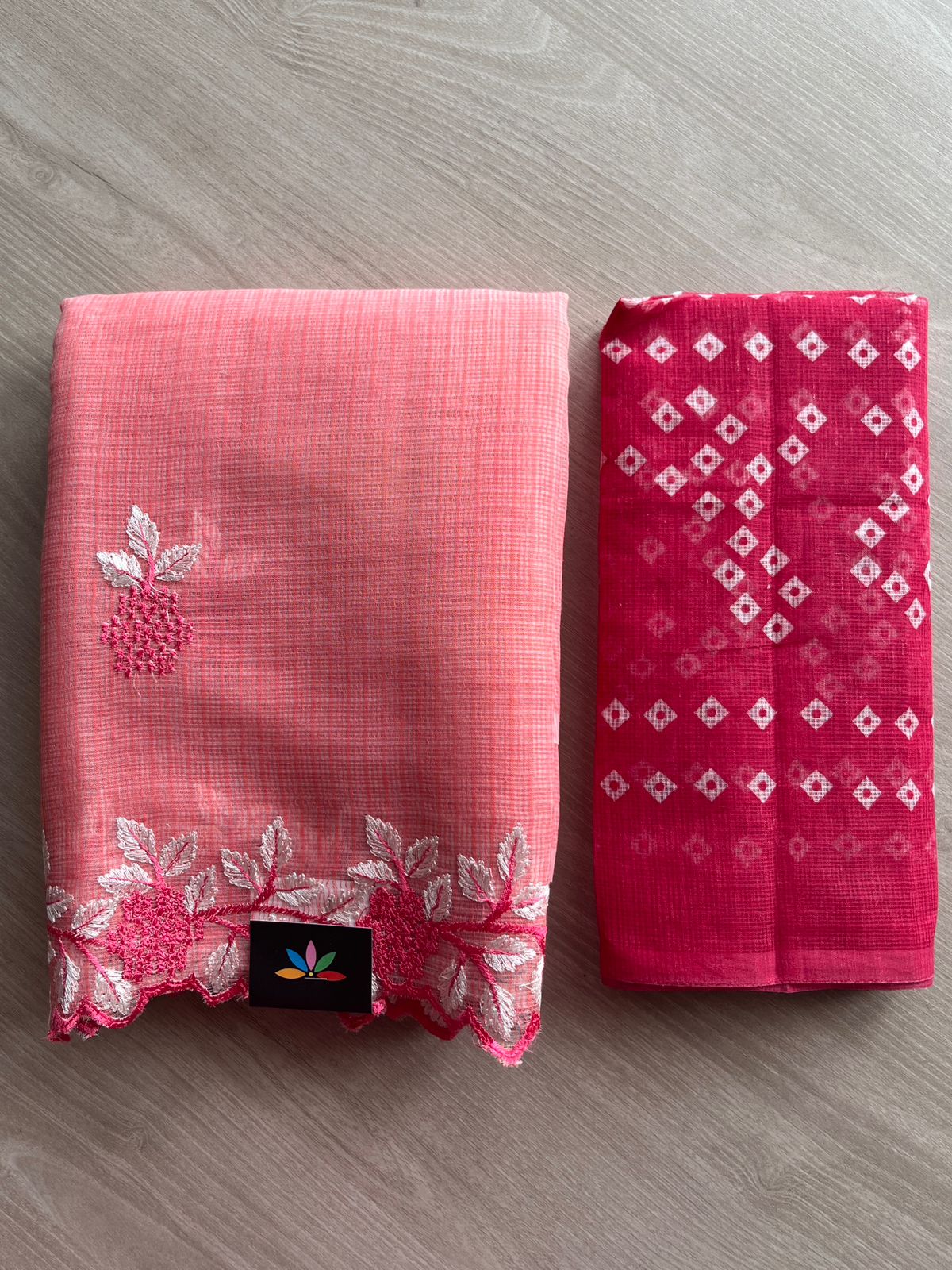 Cutwork Border Embroidered Kota Saree with Blouse-26759-26760