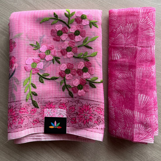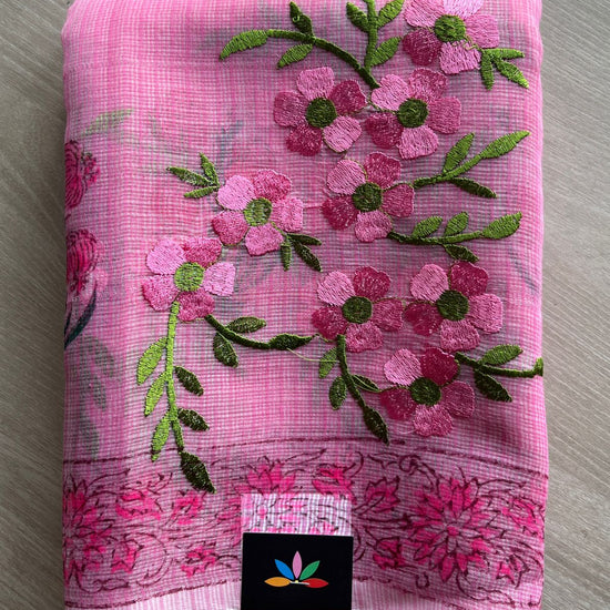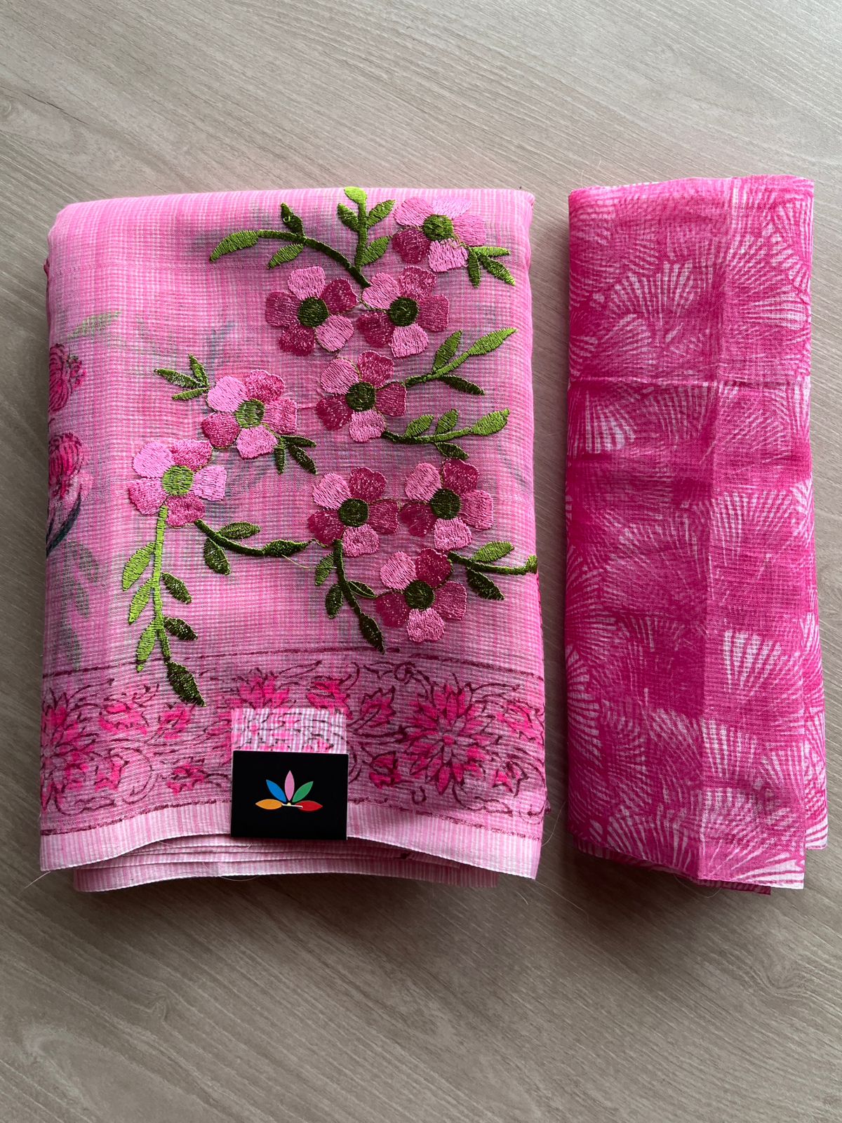 Embroidered Printed Kota Saree with Contrast Blouse-24615