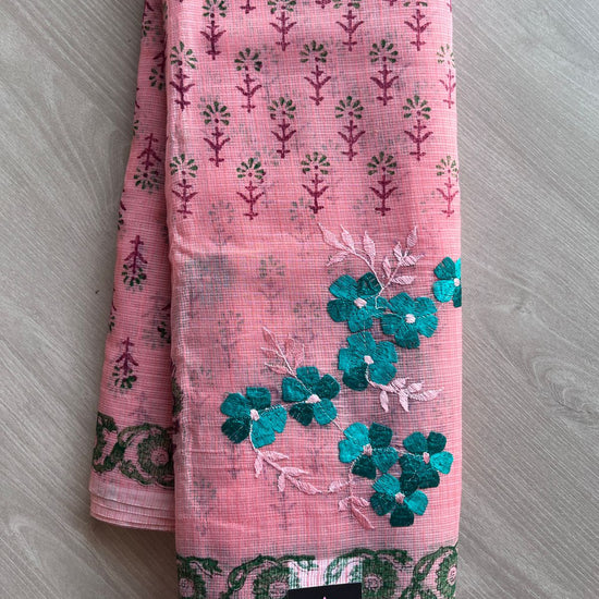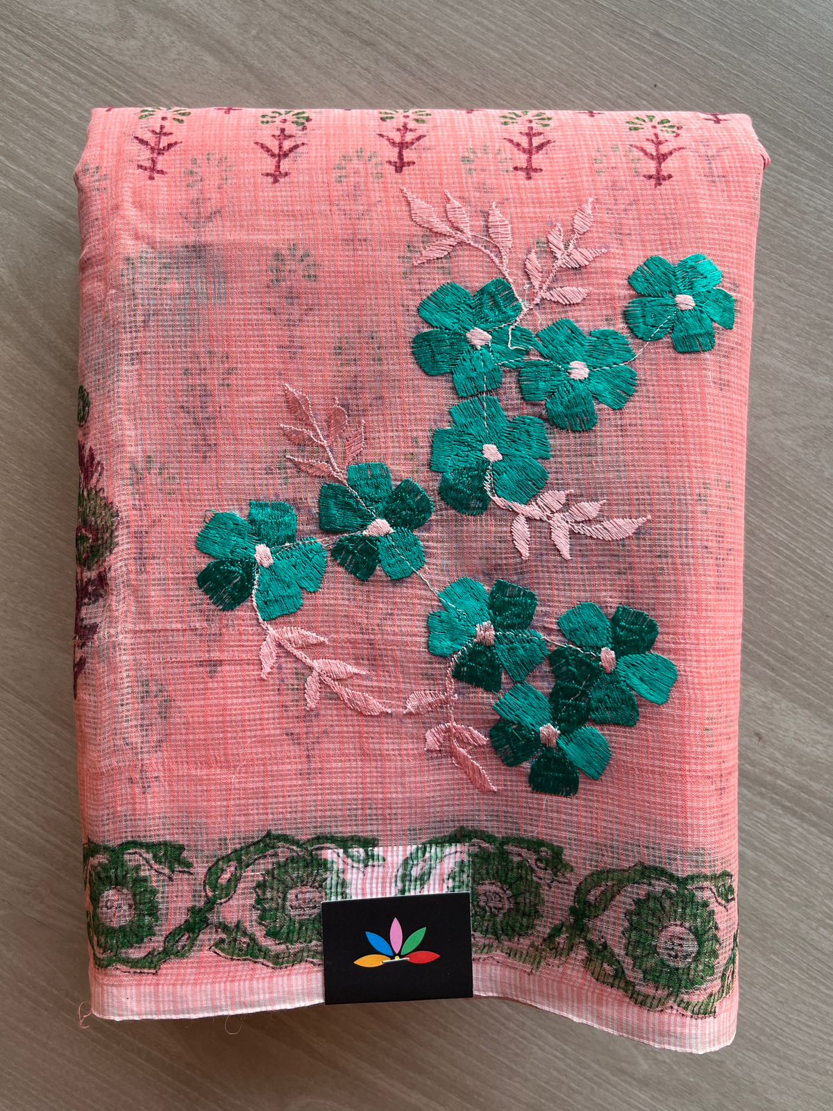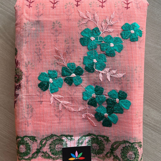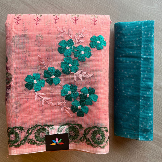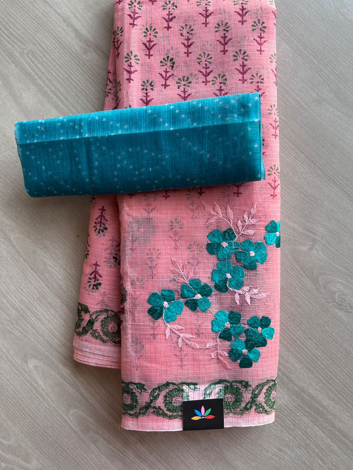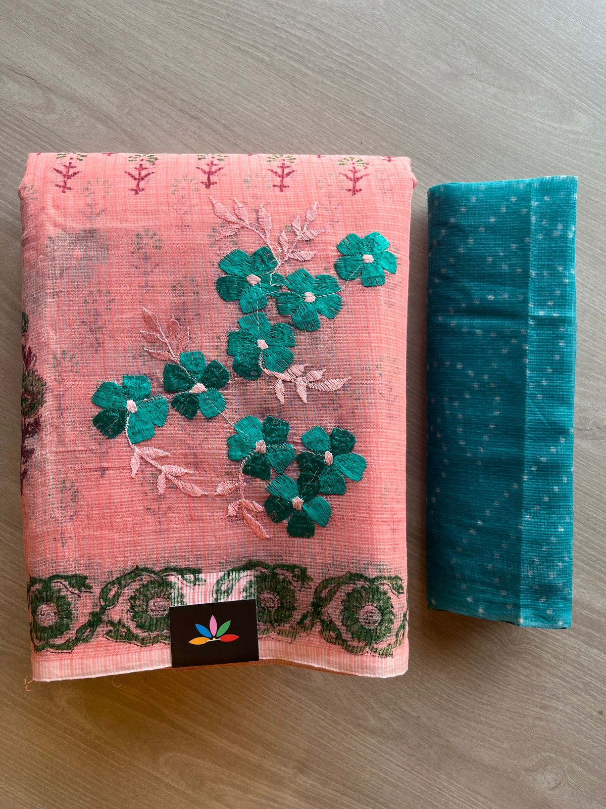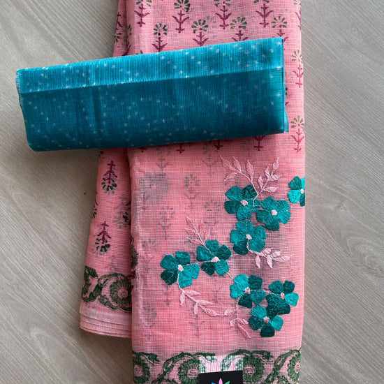 Embroidered Printed Kota Saree with Contrast Blouse-26592