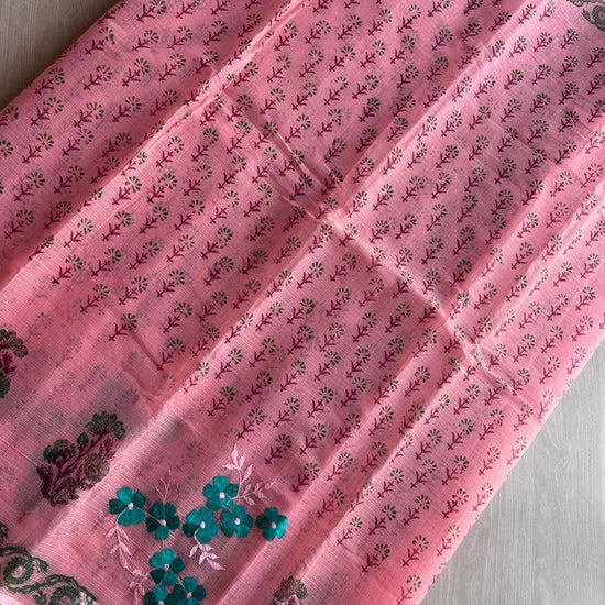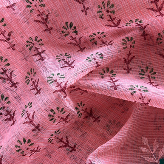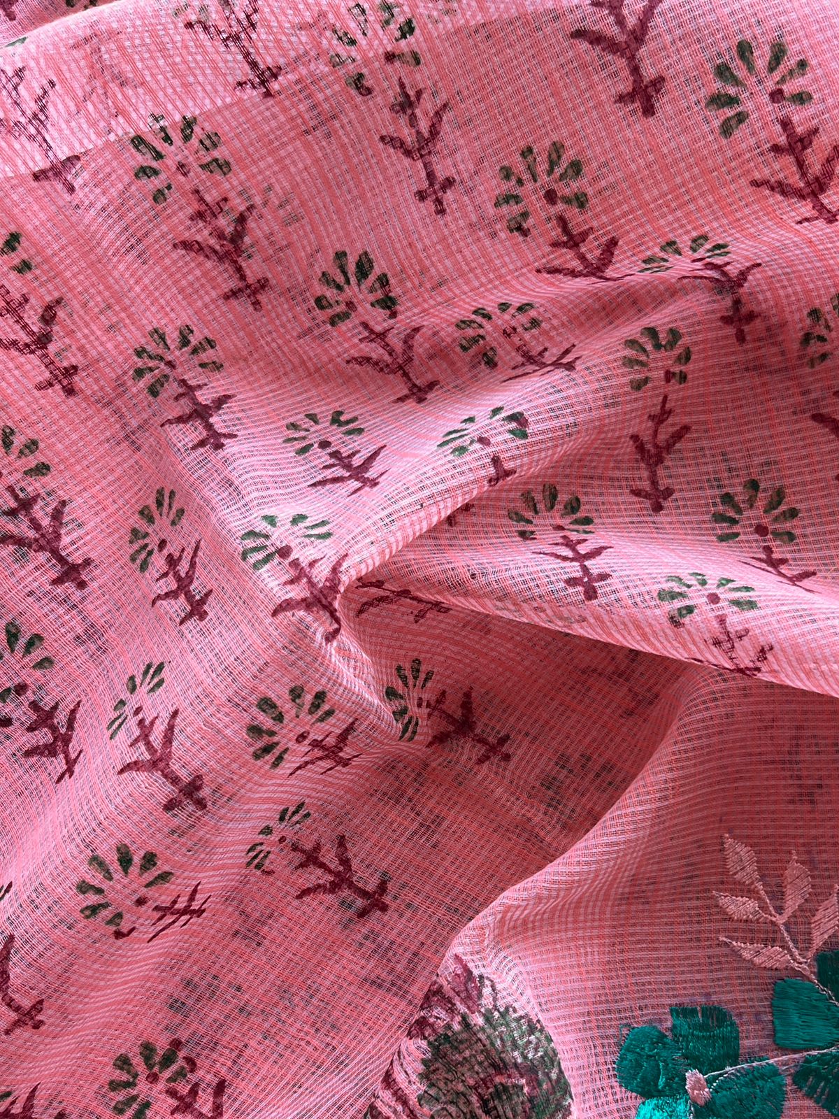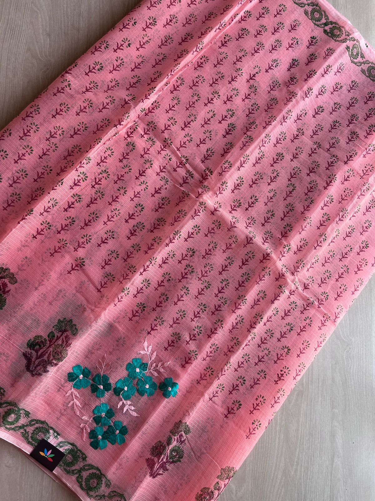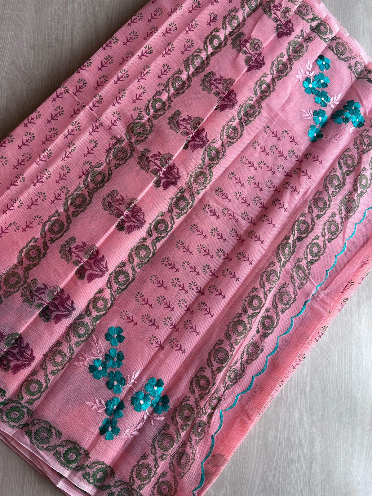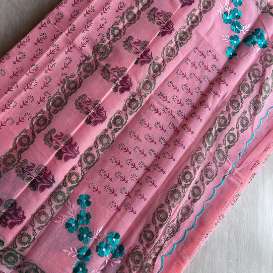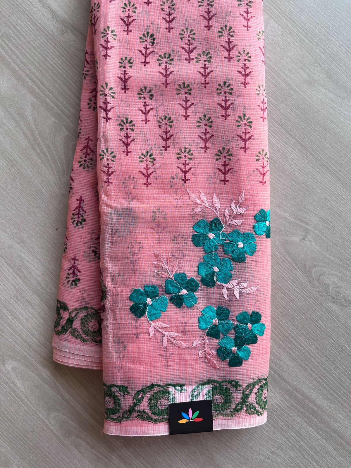 Embroidered Printed Kota Saree with Contrast Blouse-26592
