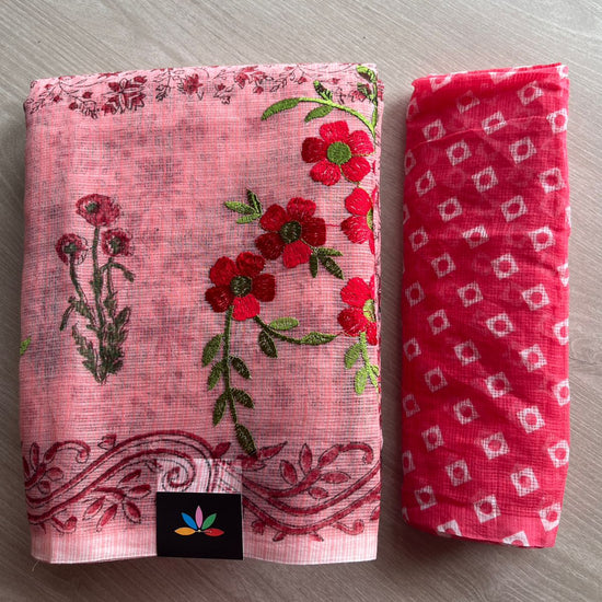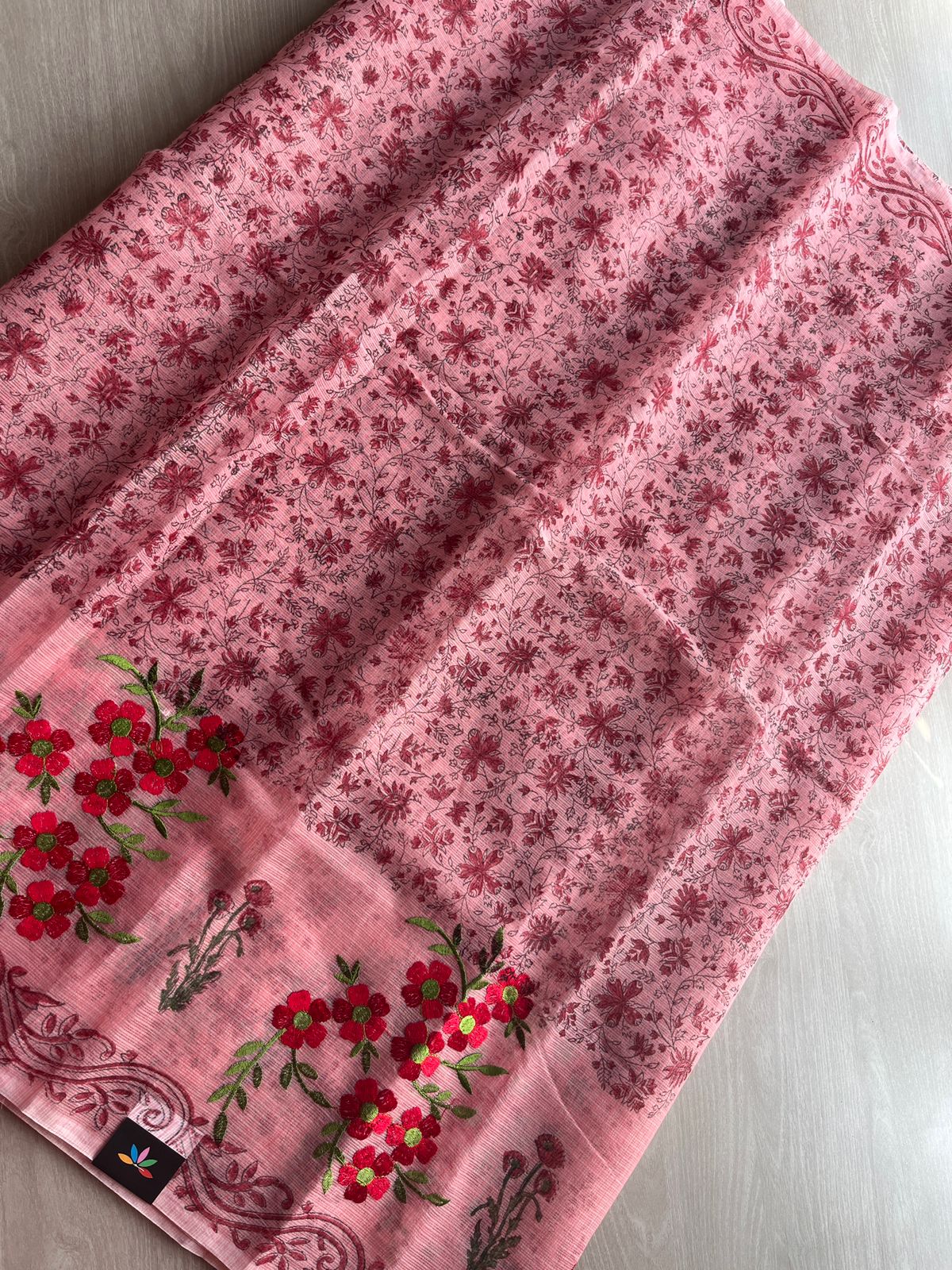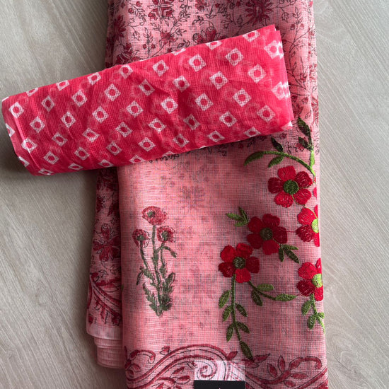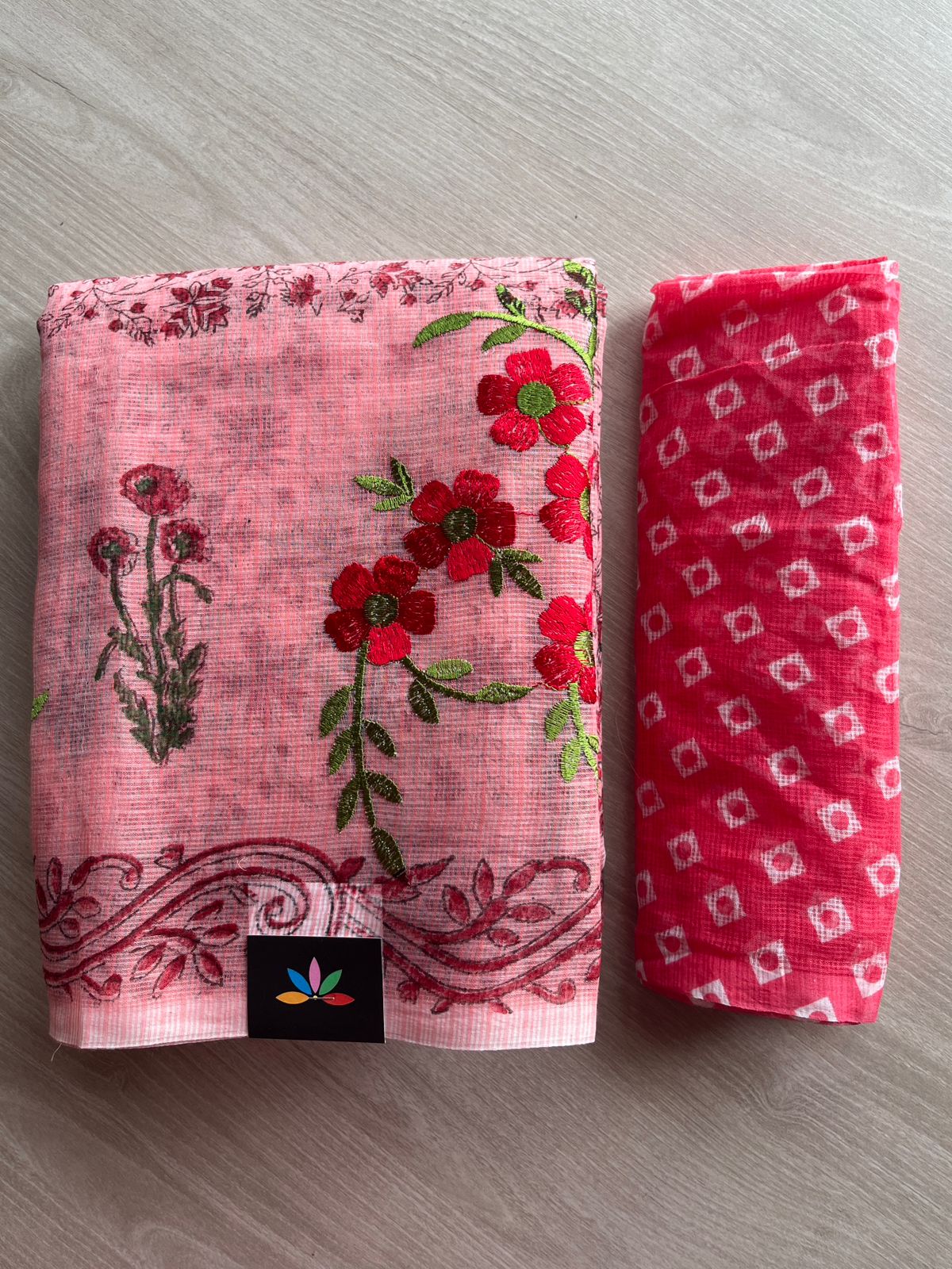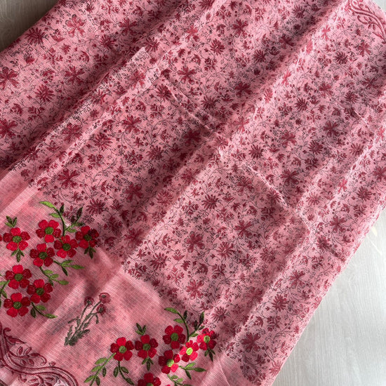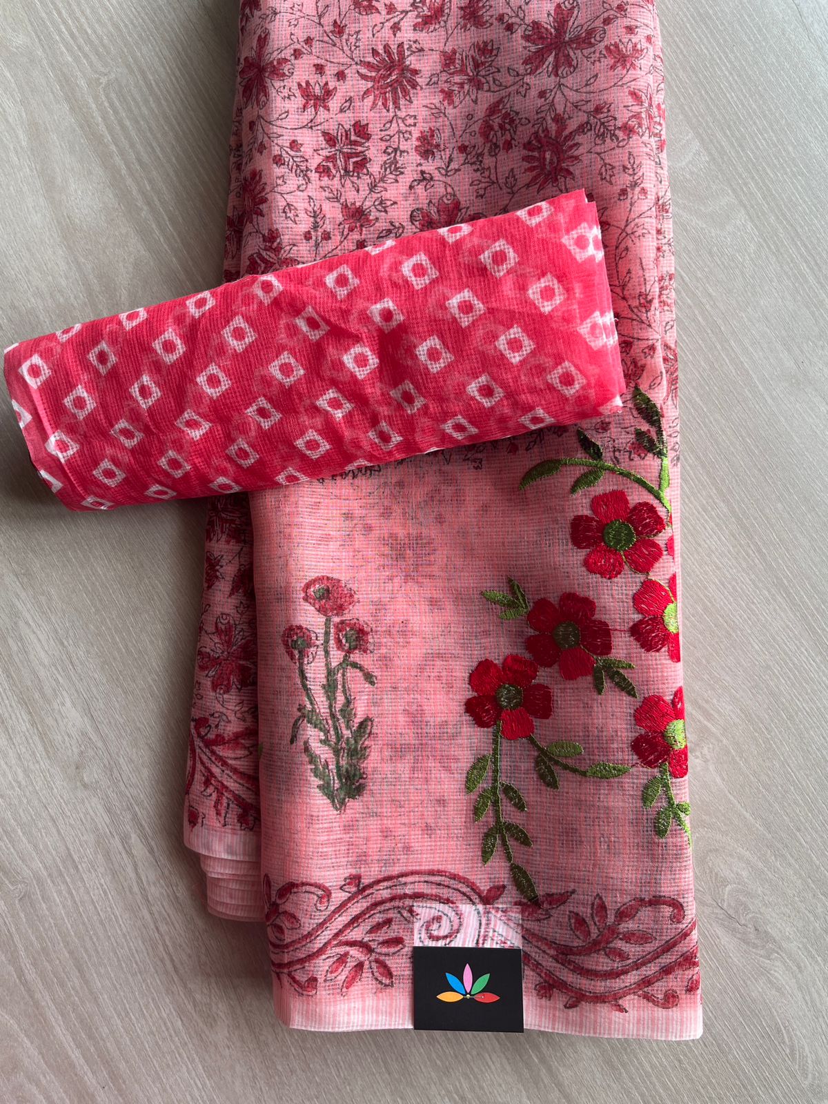 Embroidered Printed Kota Saree with Contrast Blouse-26744