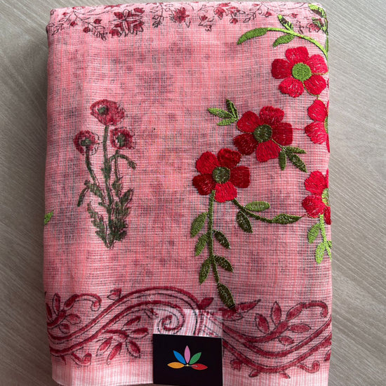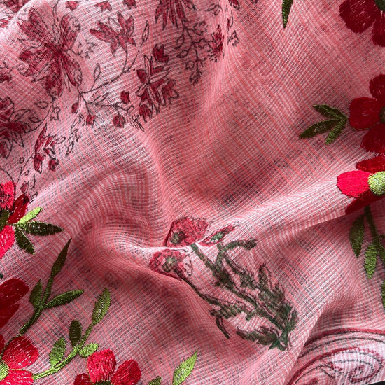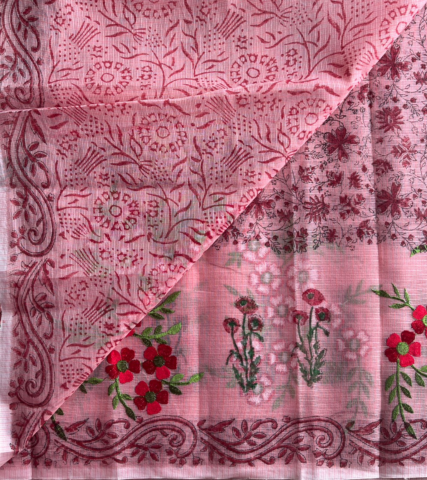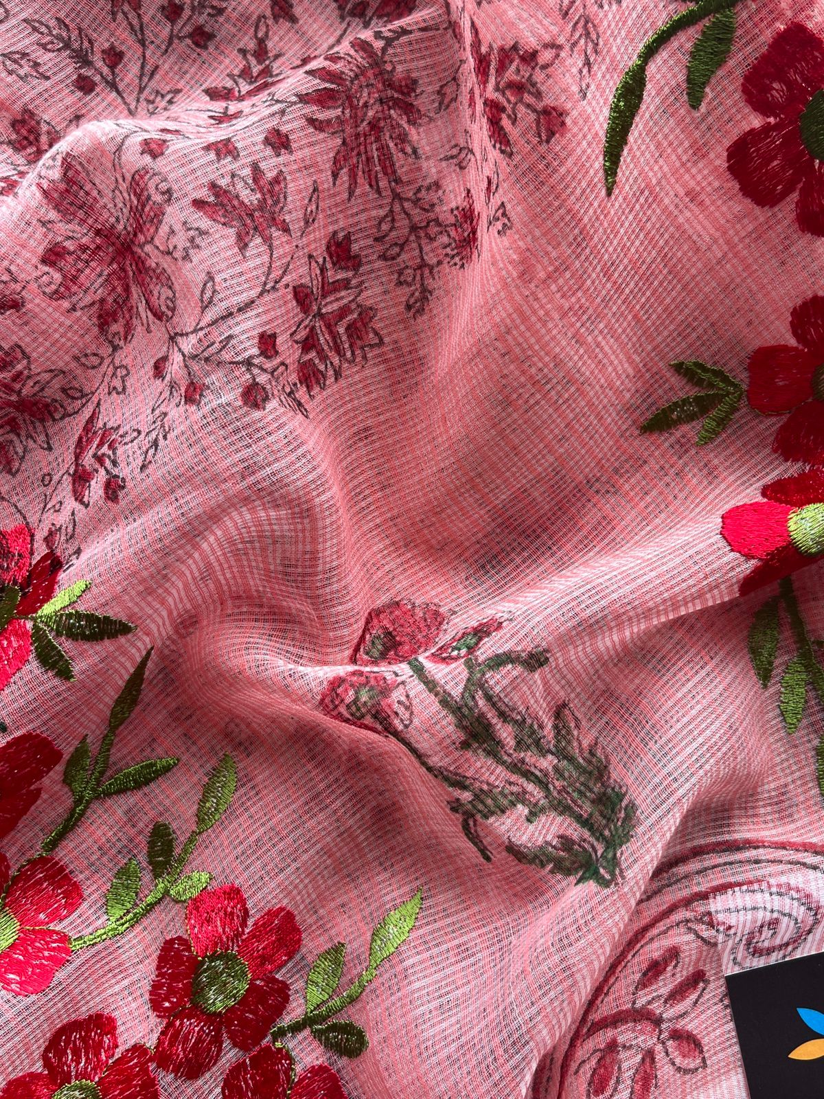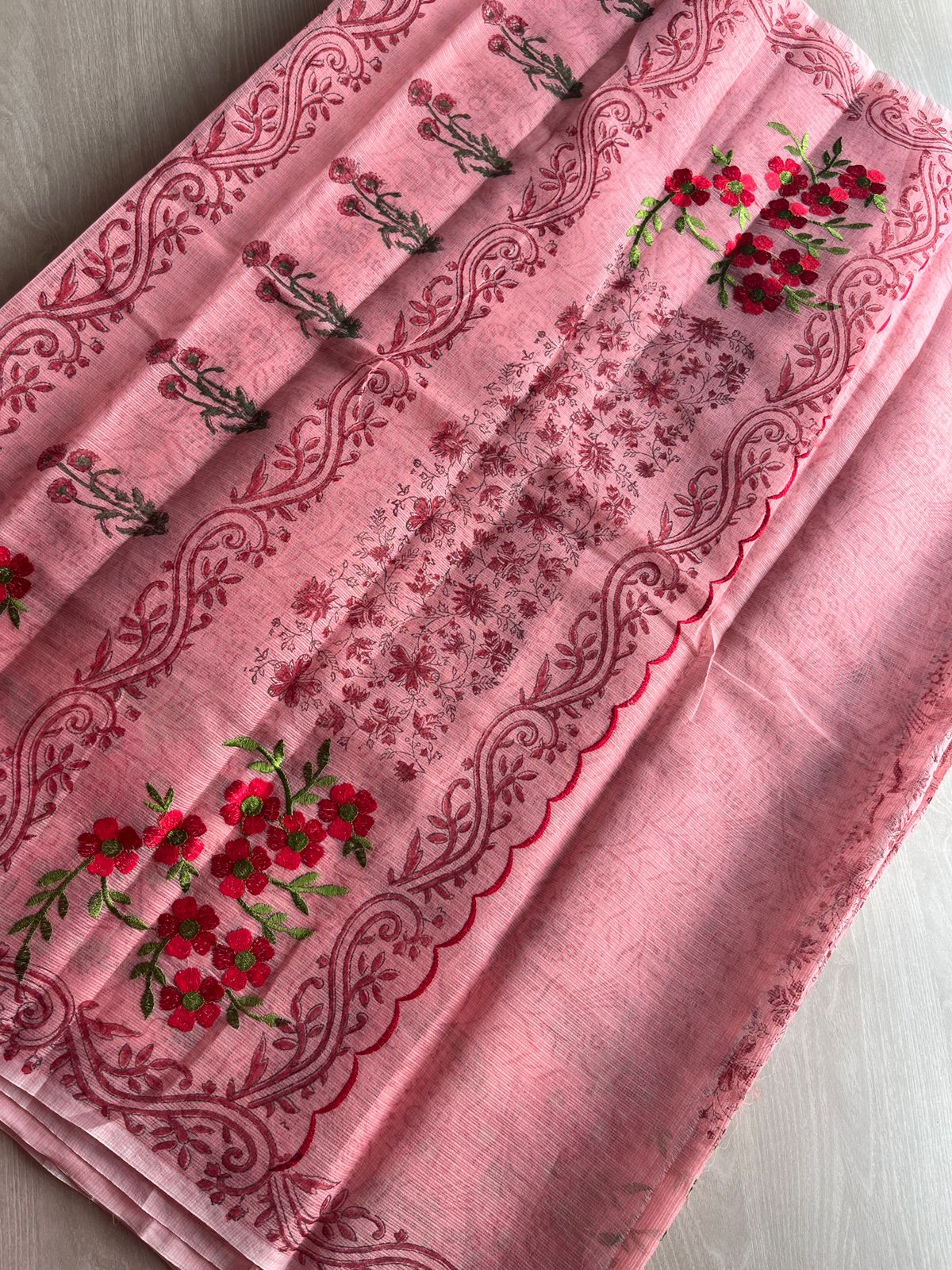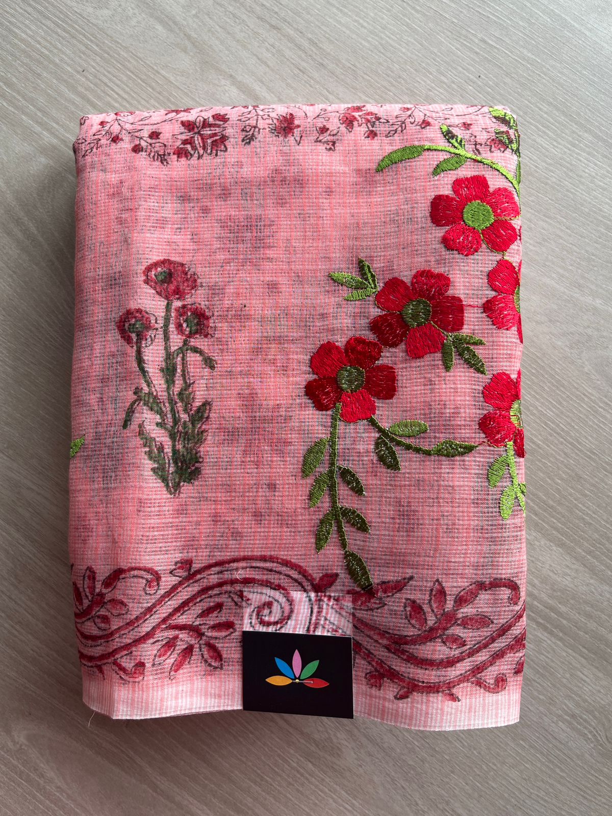 Embroidered Printed Kota Saree with Contrast Blouse-26744
