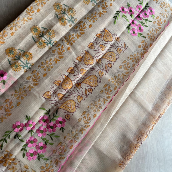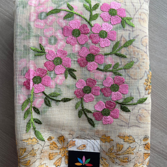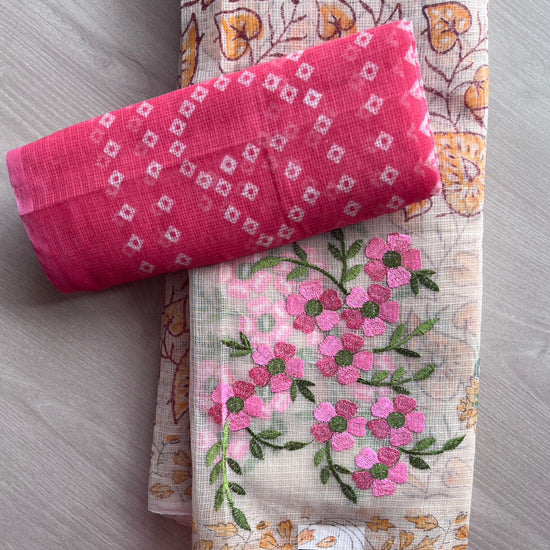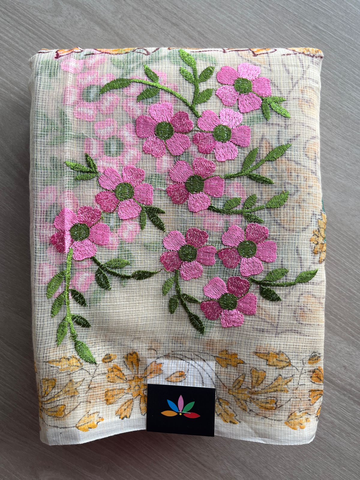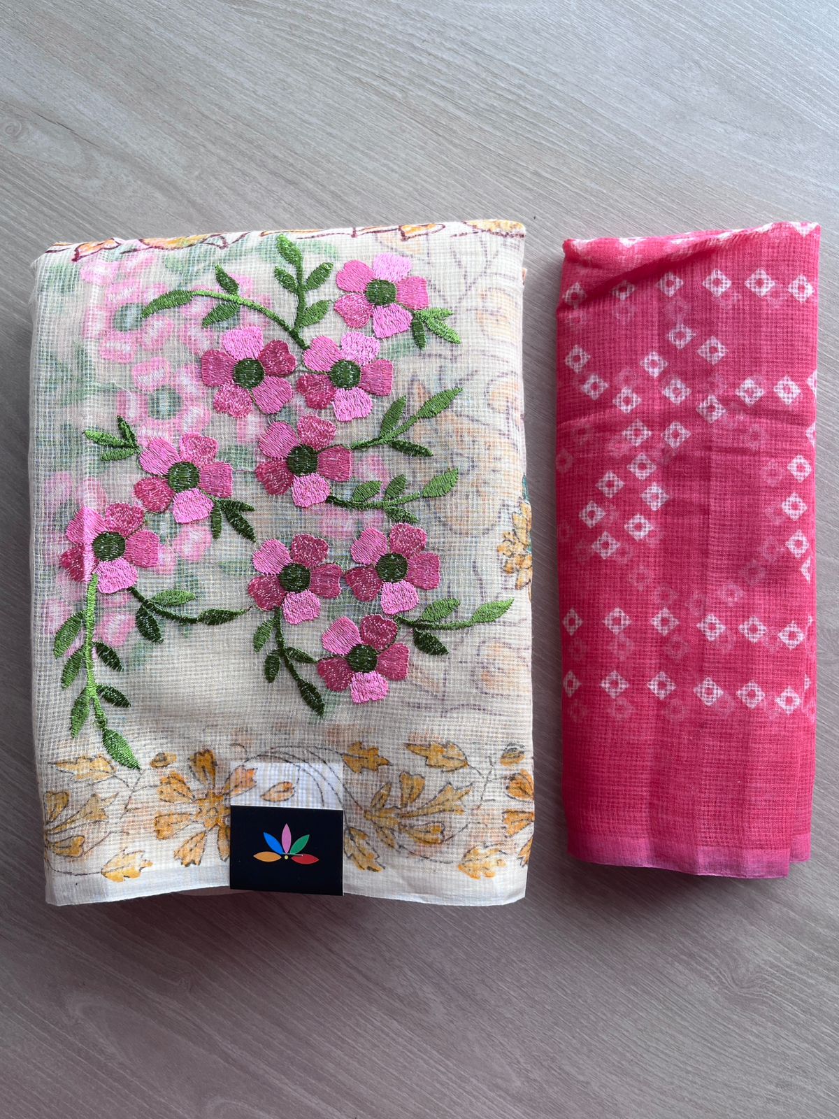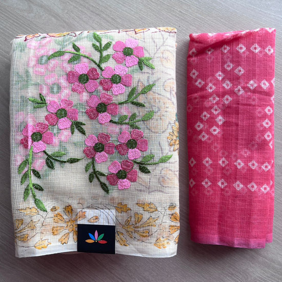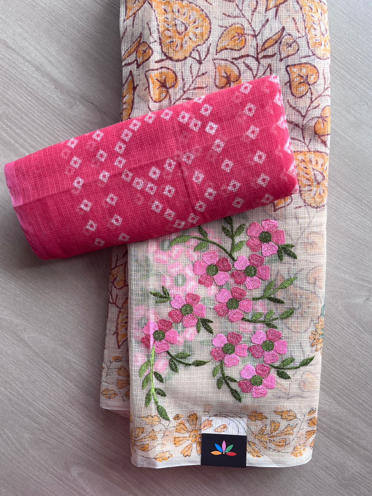 Embroidered Printed Kota Saree with Contrast Blouse-26745