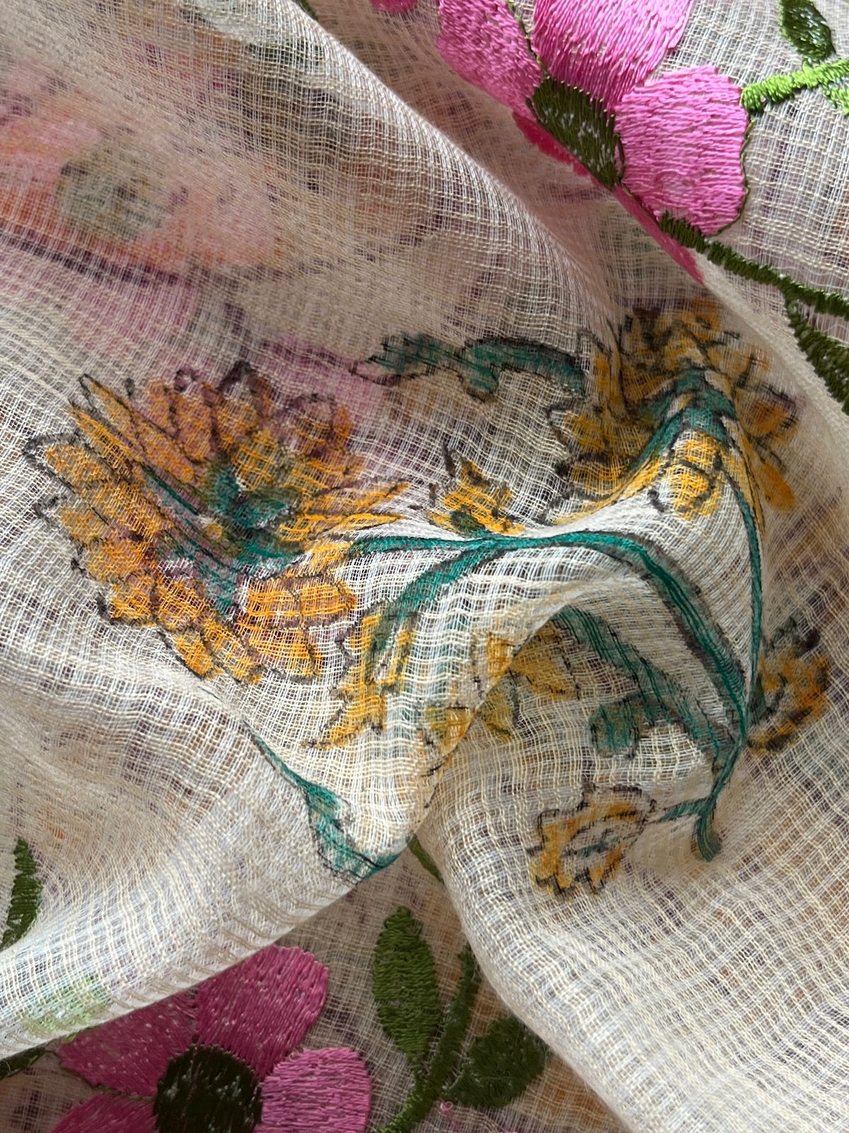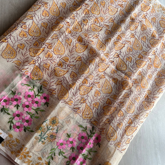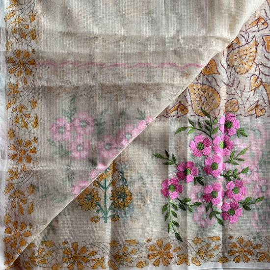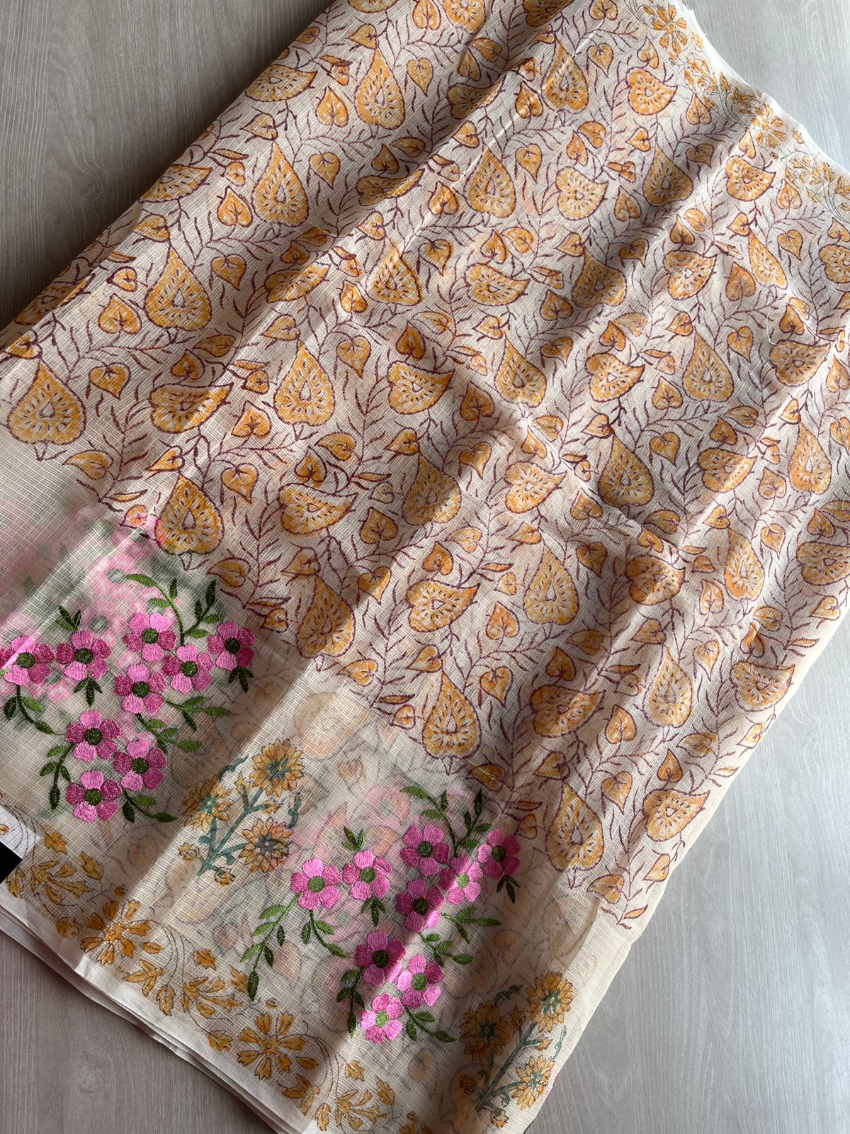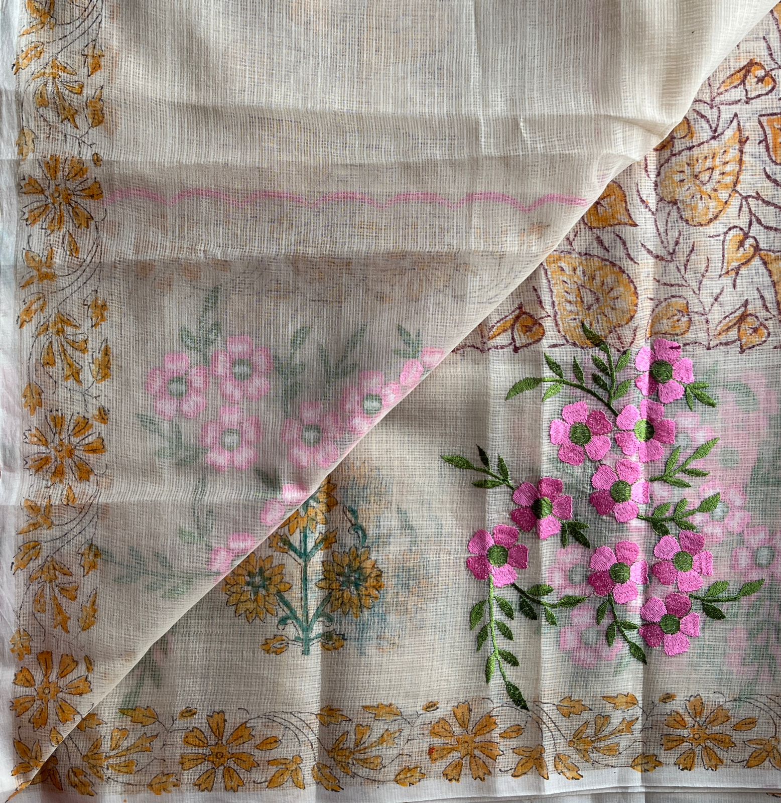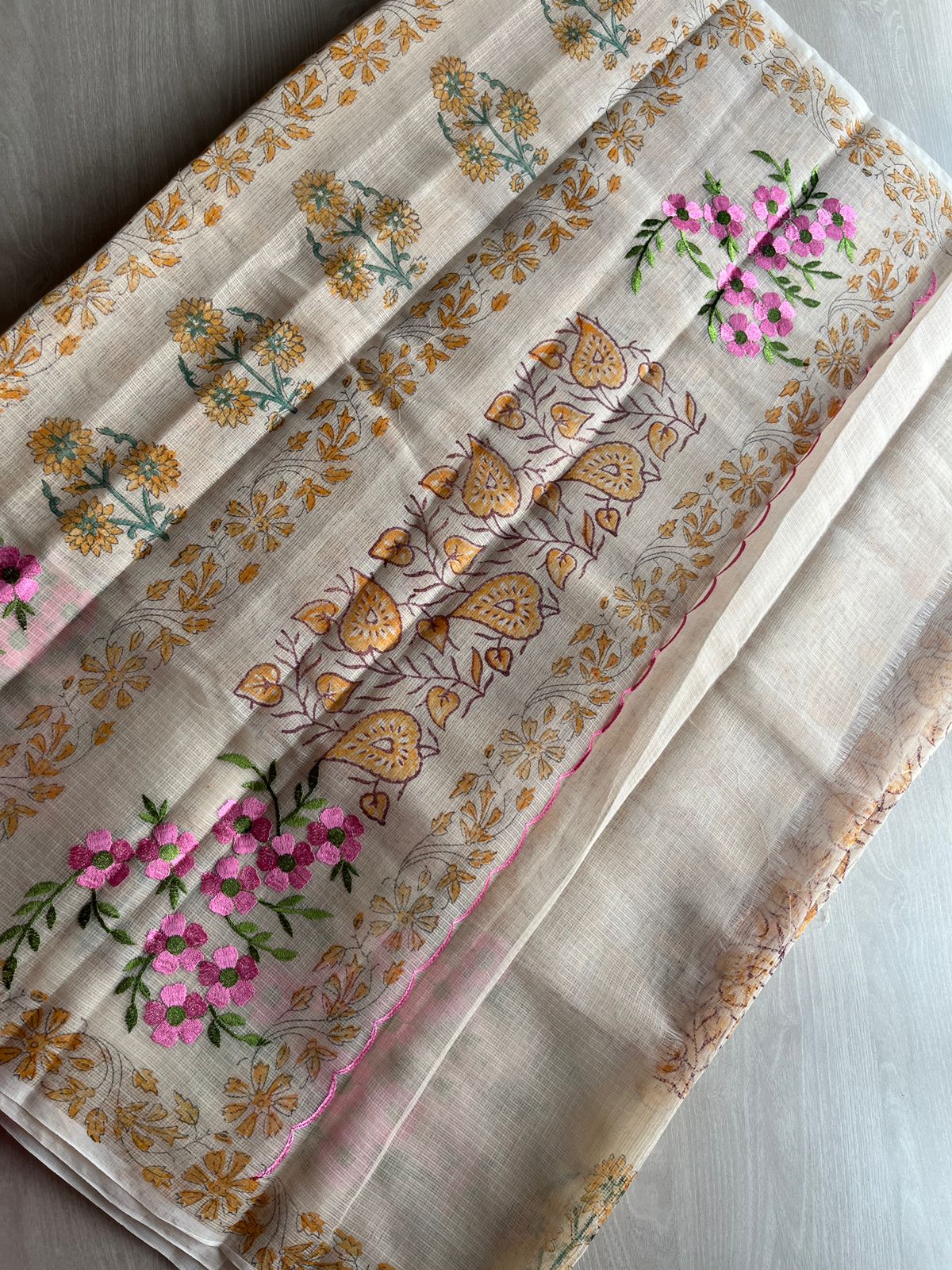 Embroidered Printed Kota Saree with Contrast Blouse-26745