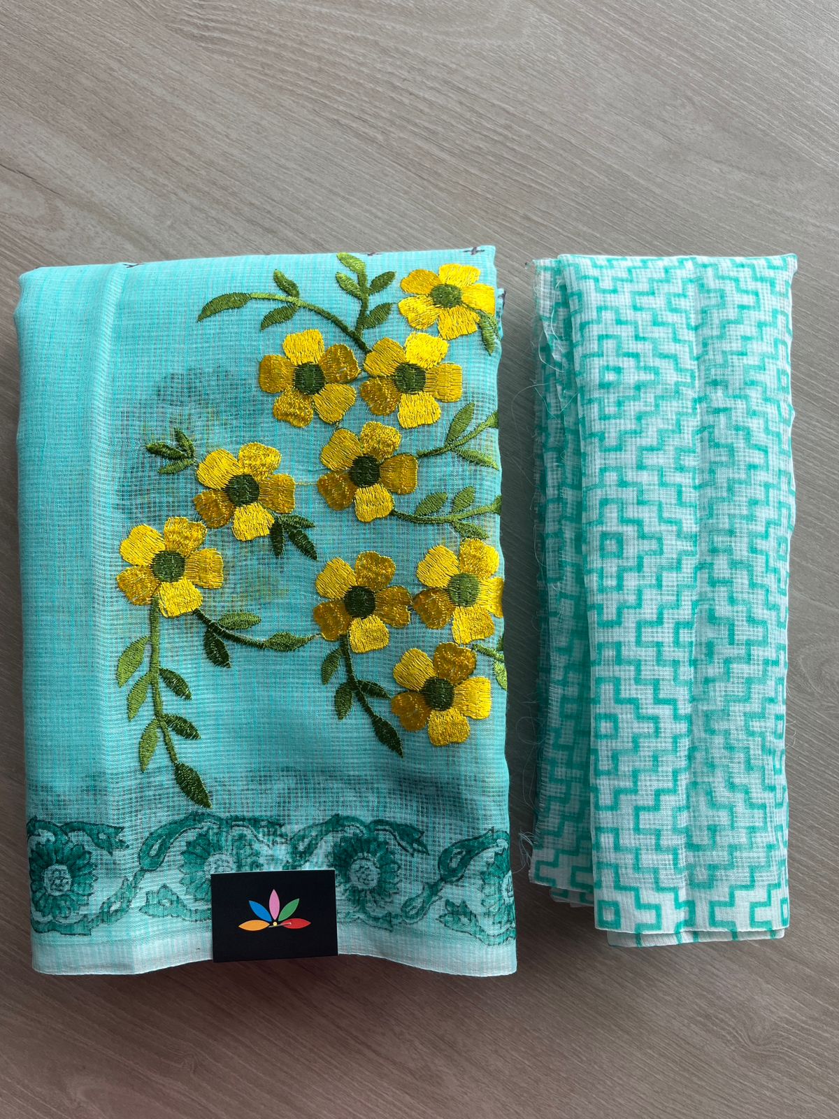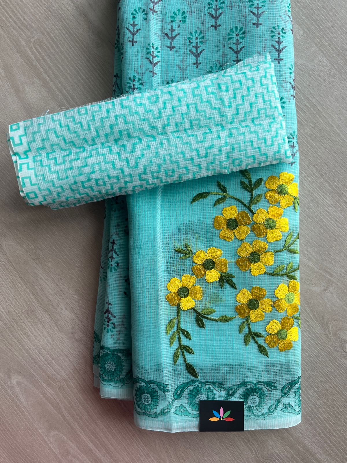 Embroidered Printed Kota Saree with Contrast Blouse-26746
