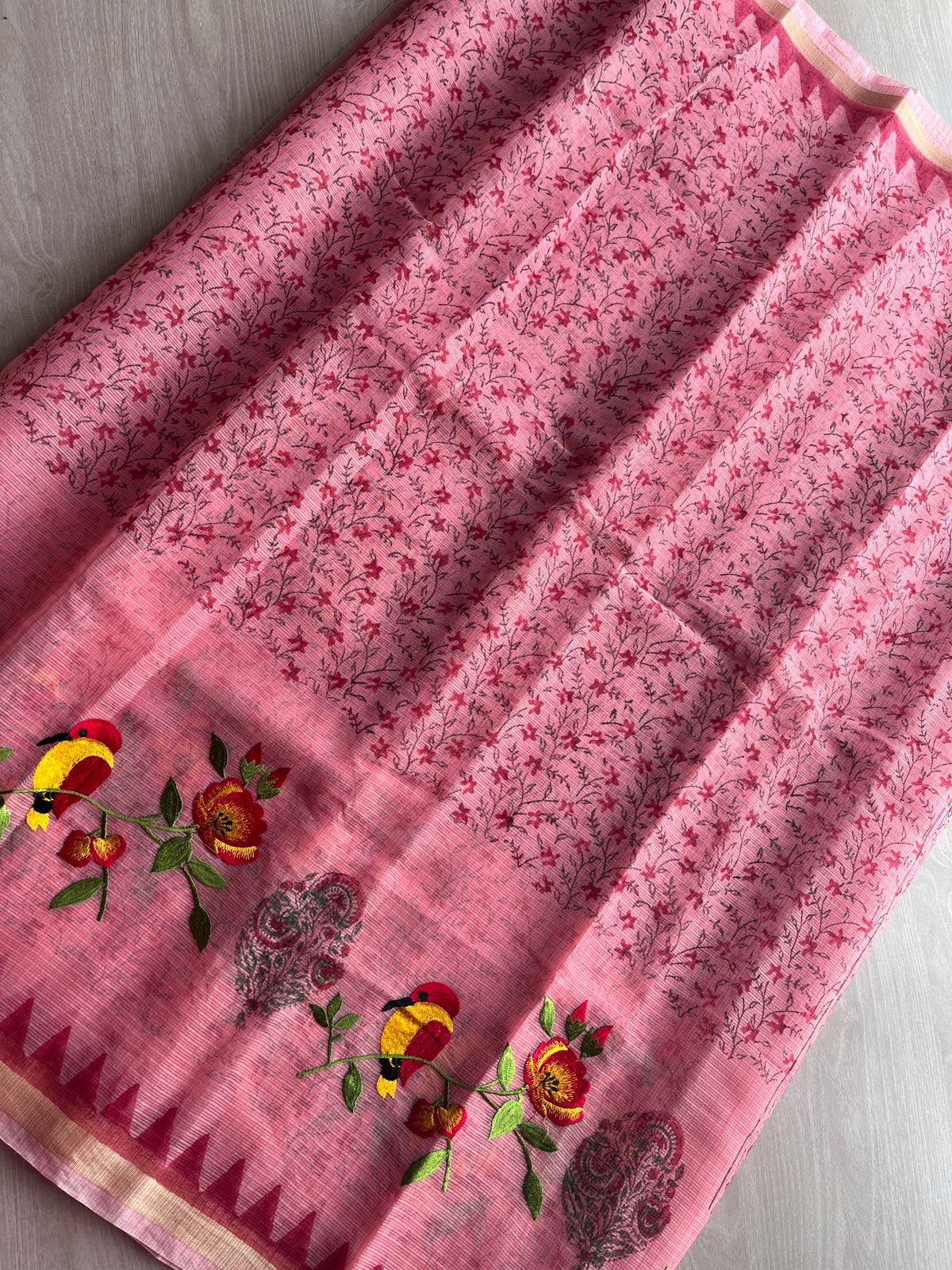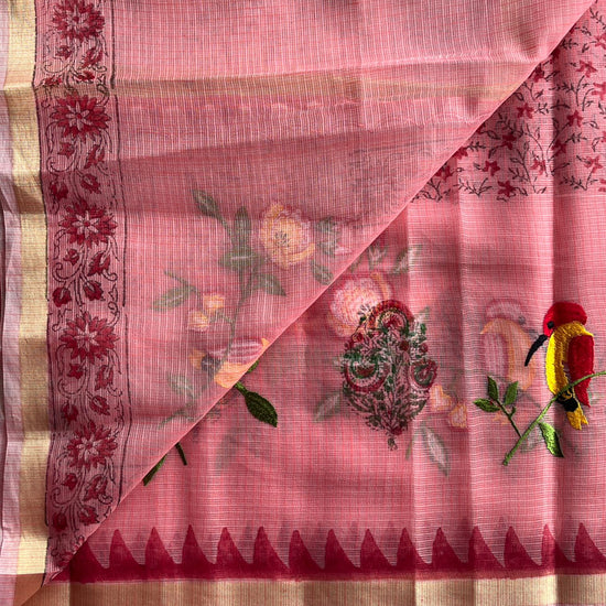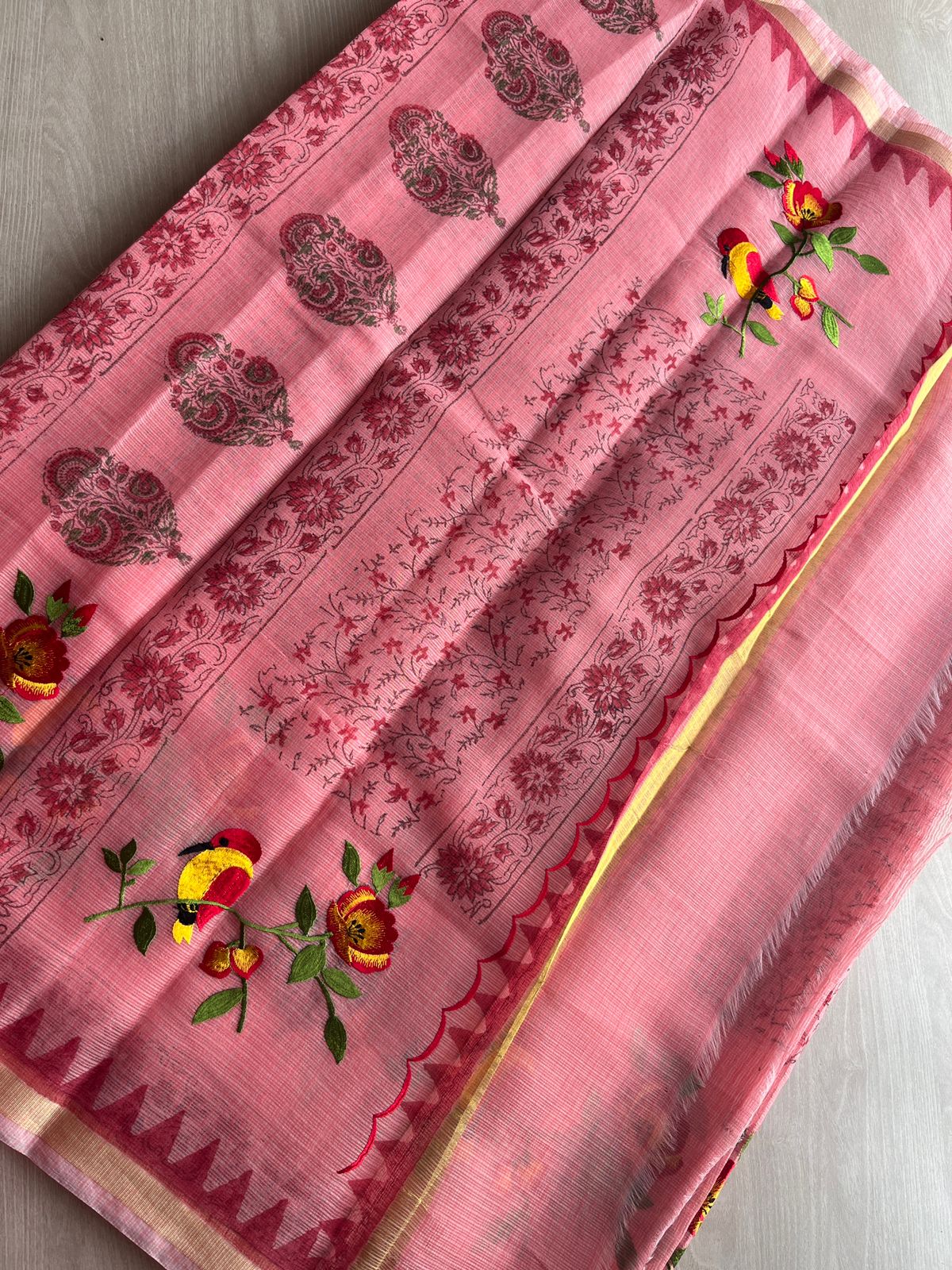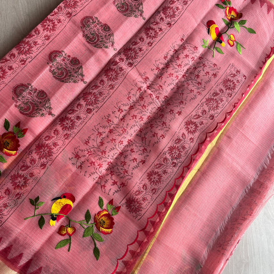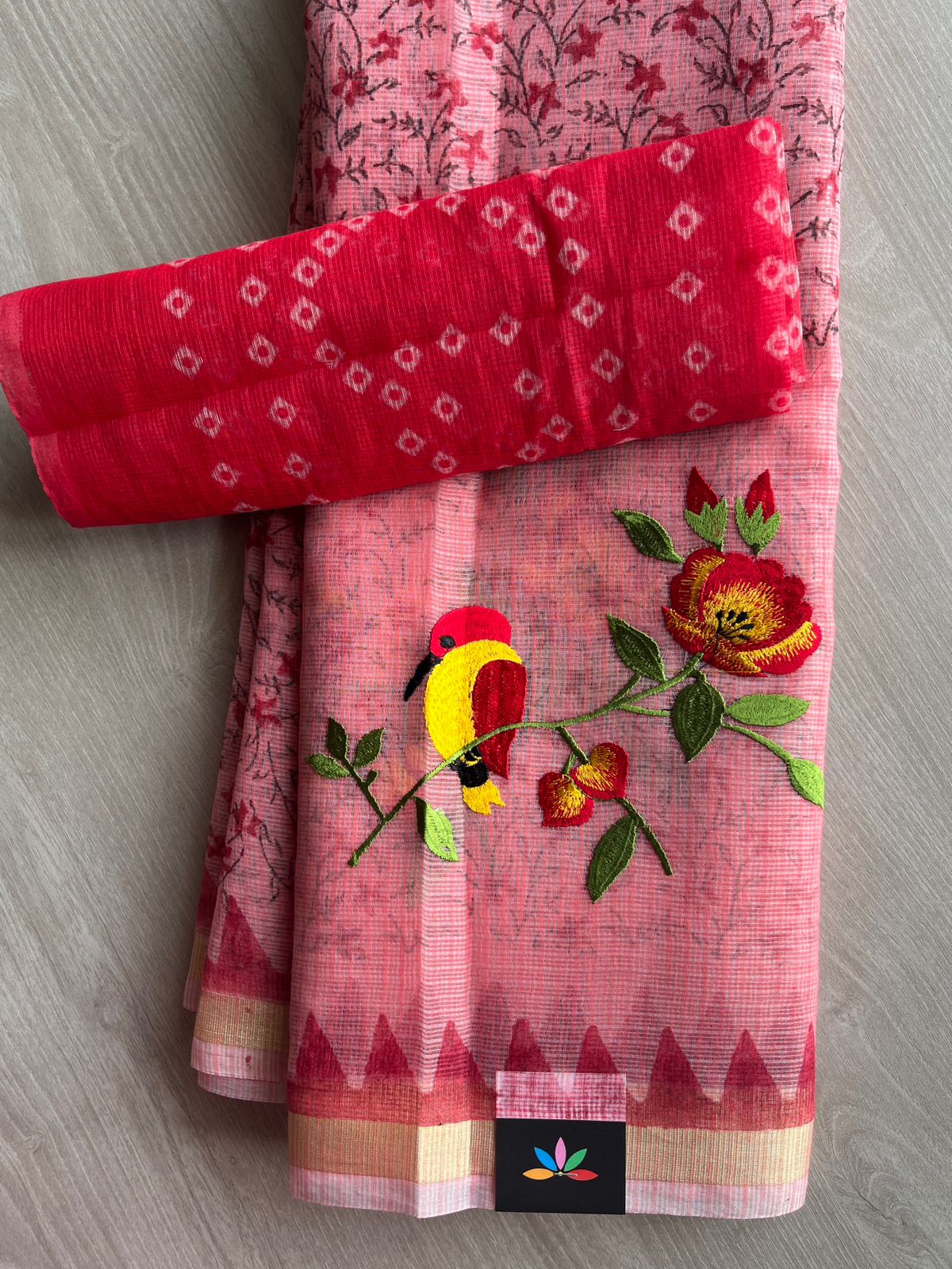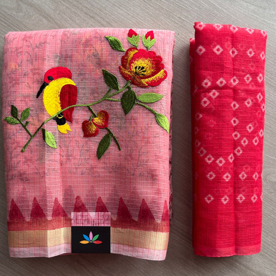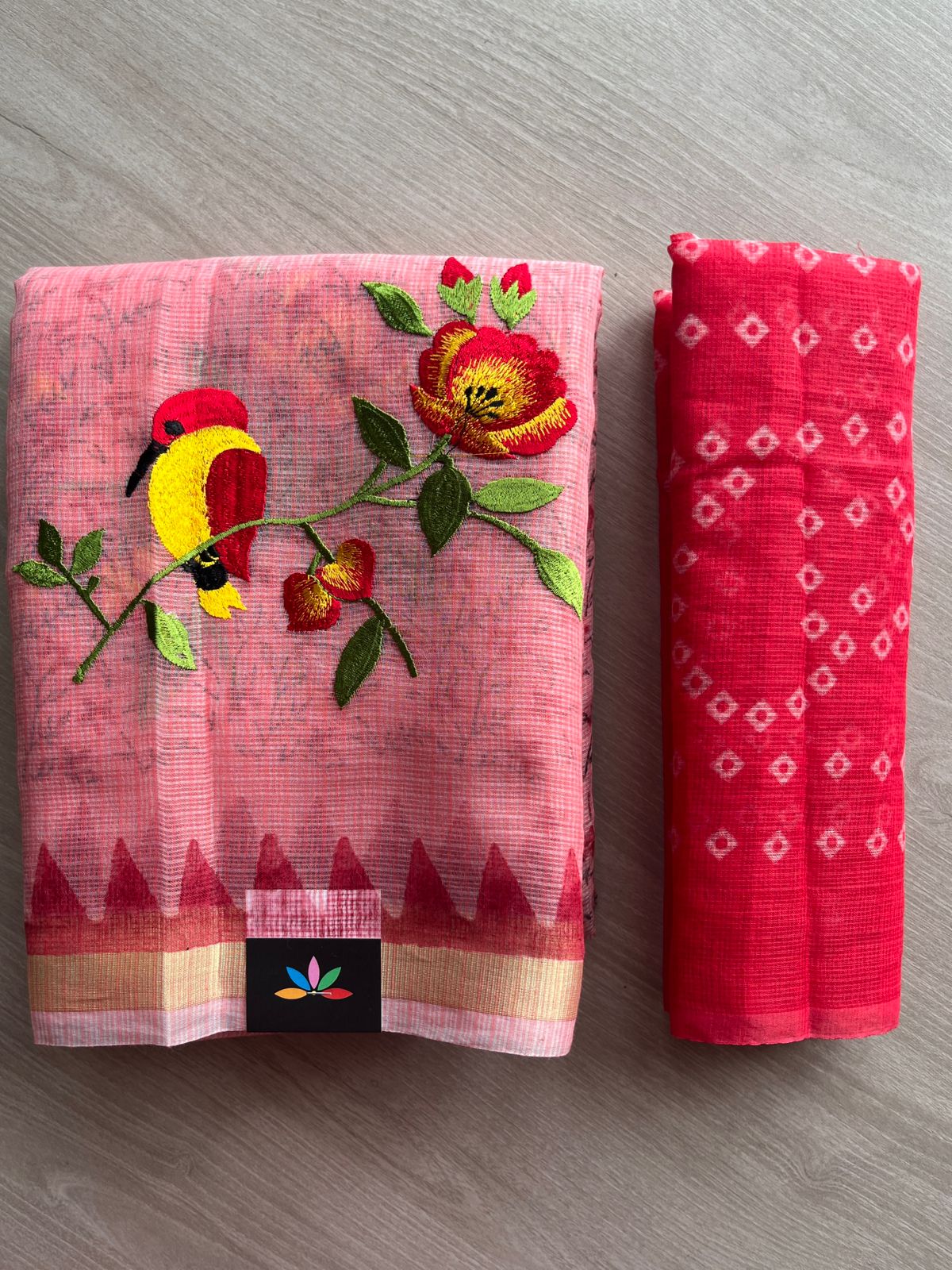 Embroidered Printed Kota Saree with Contrast Blouse-26748