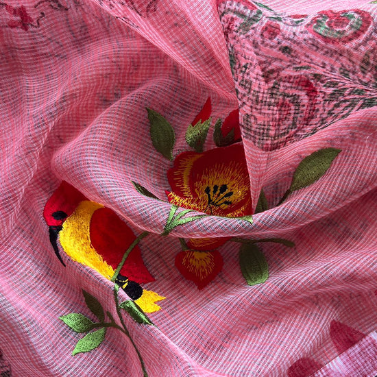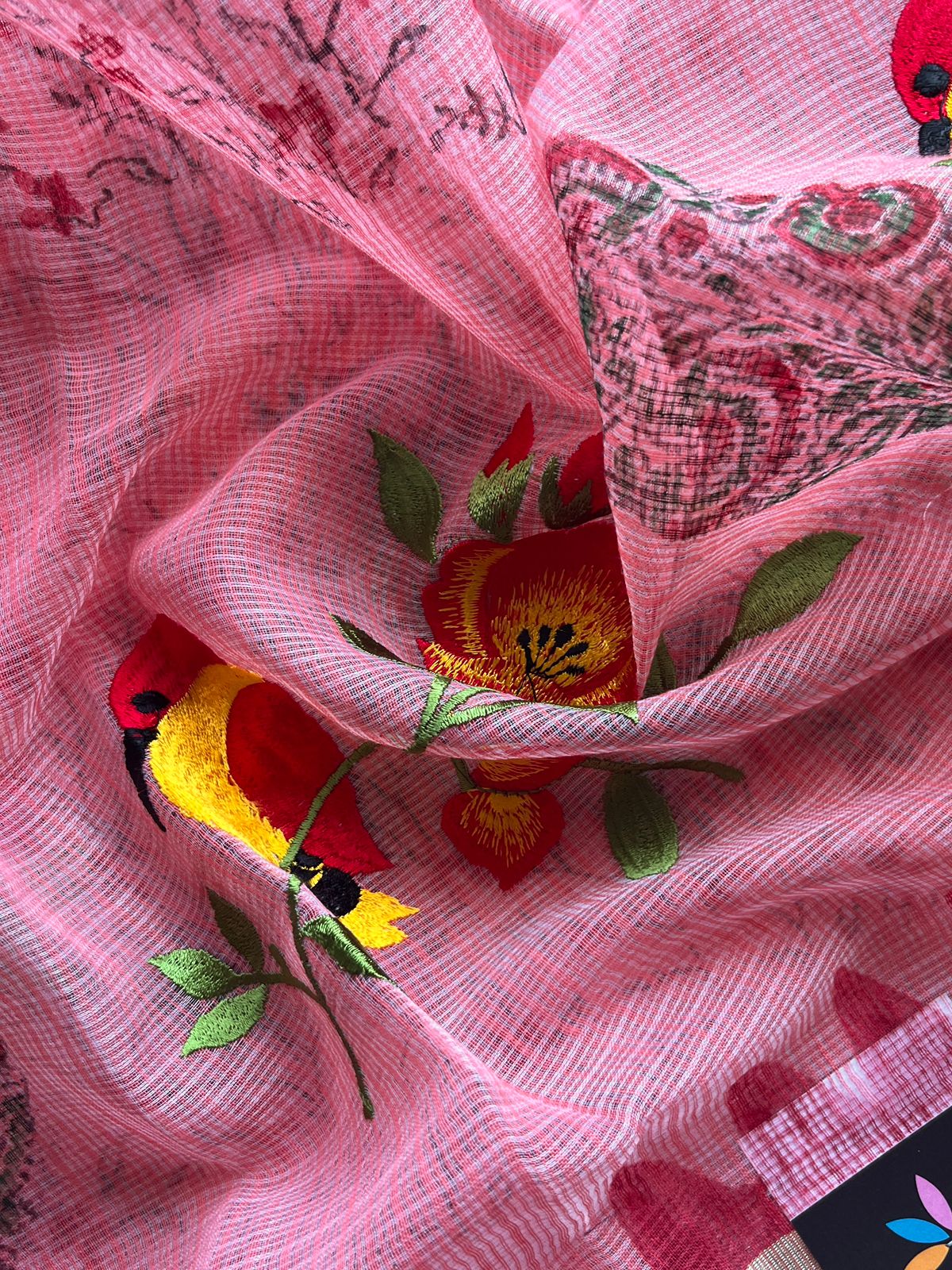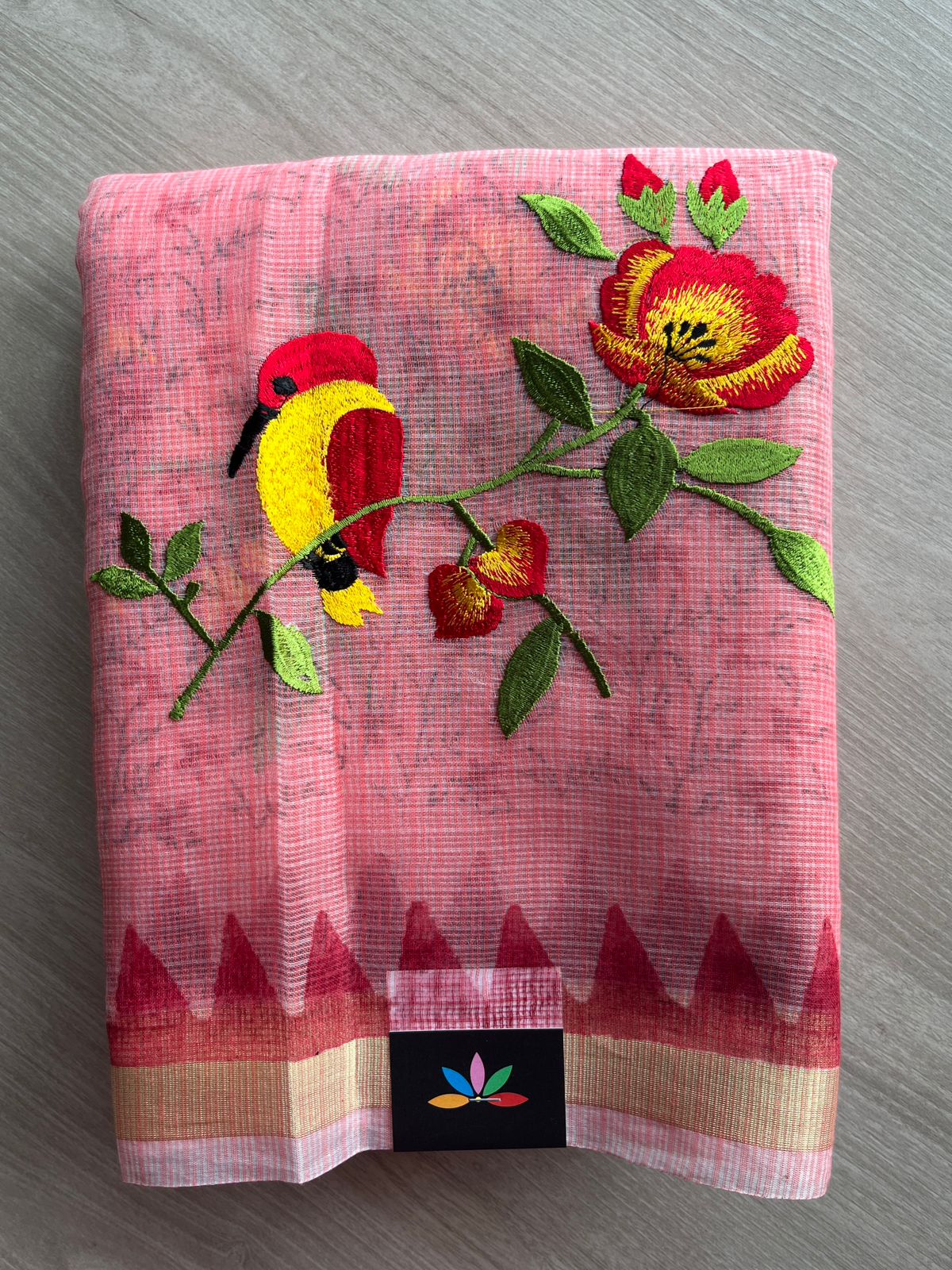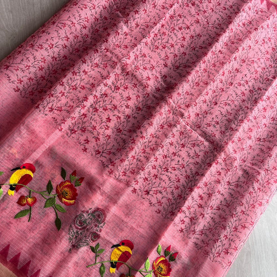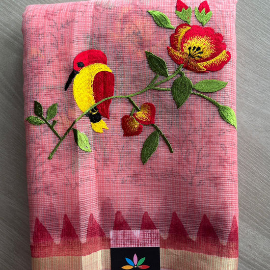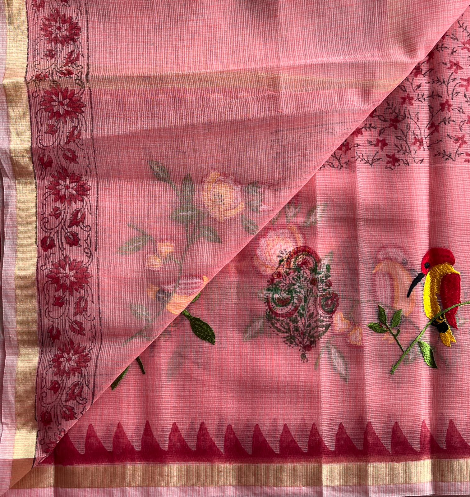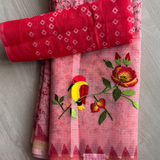Embroidered Printed Kota Saree with Contrast Blouse-26748