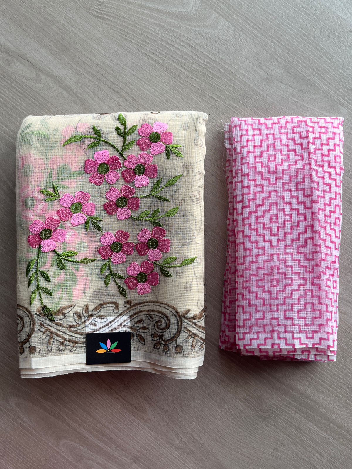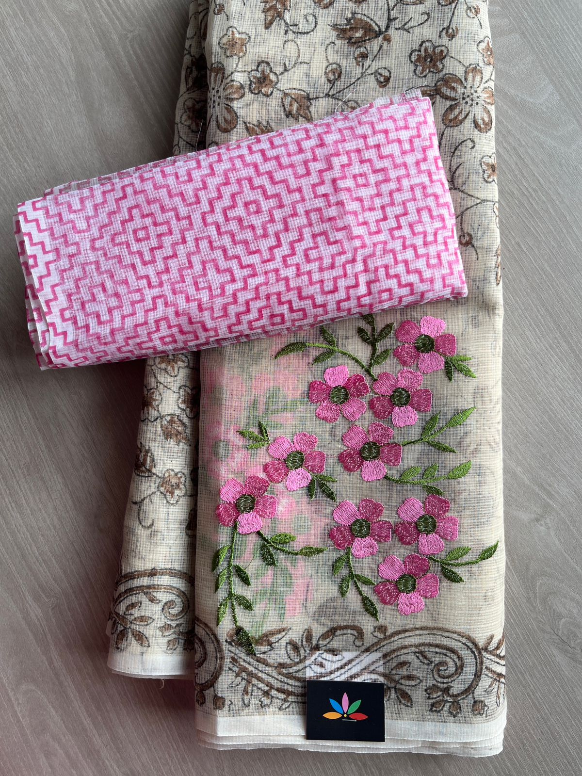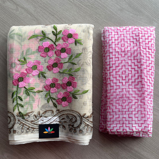 Embroidered Printed Kota Saree with Contrast Blouse-26749