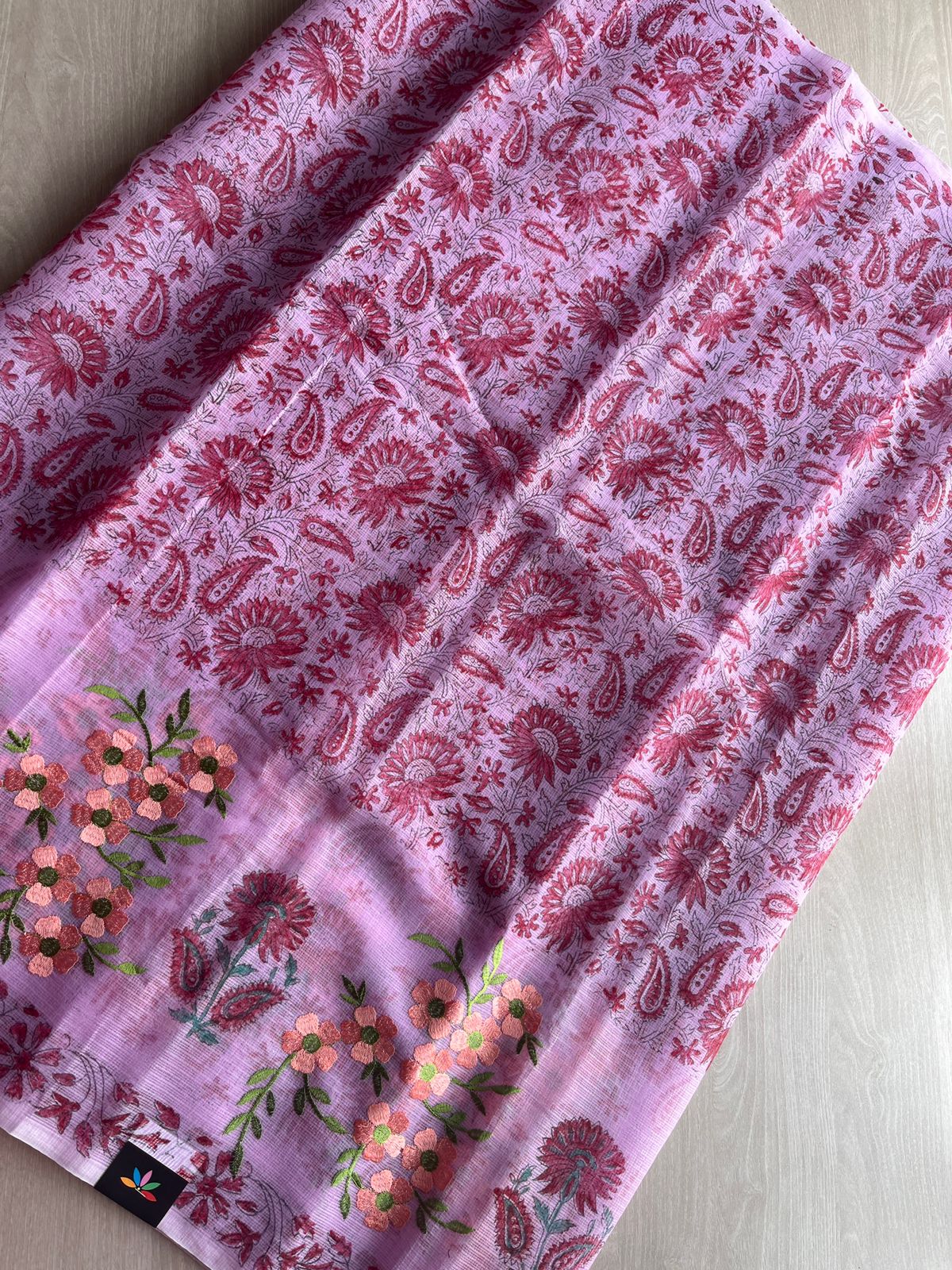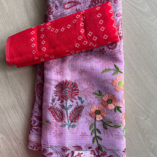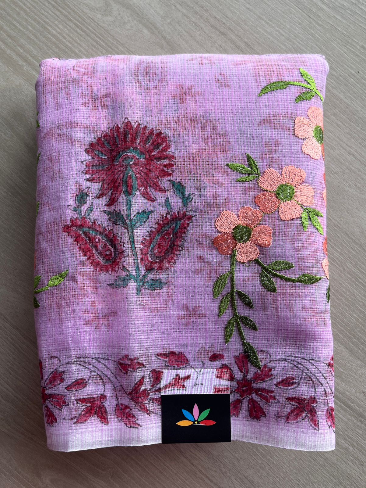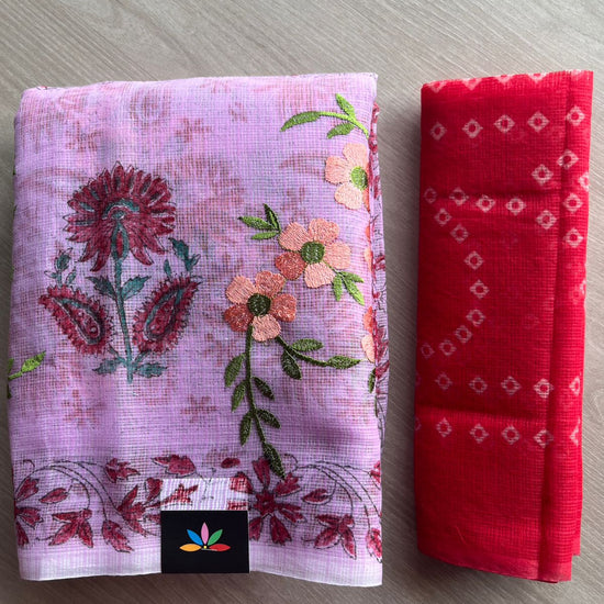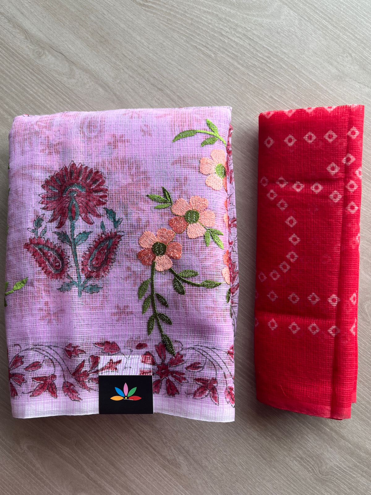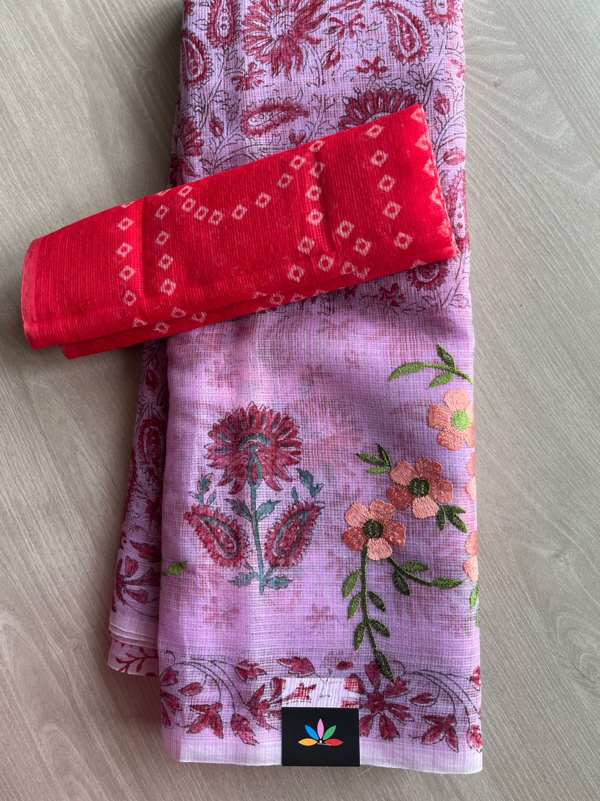 Embroidered Printed Kota Saree with Contrast Blouse-26751