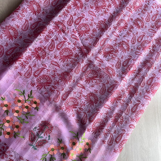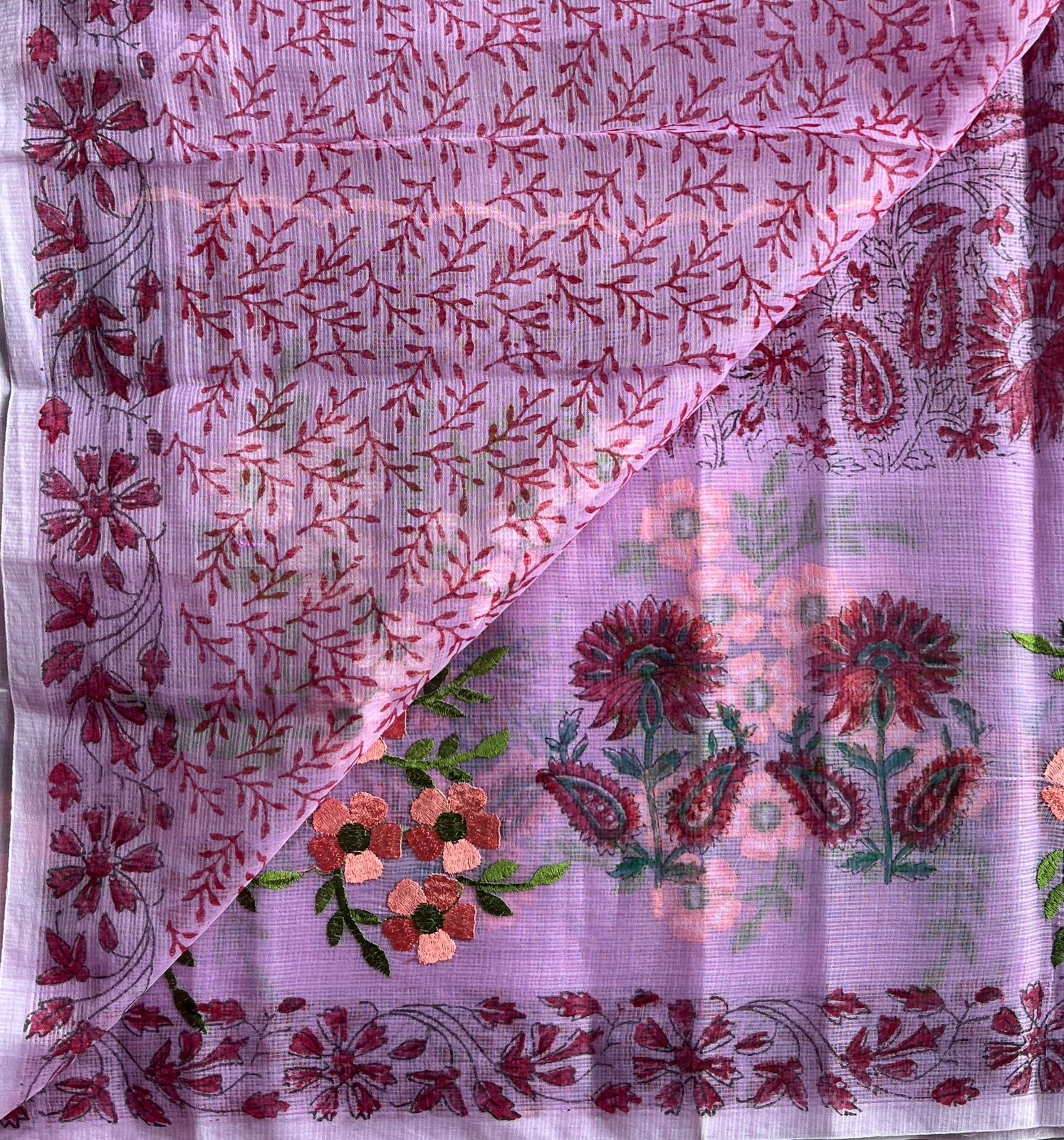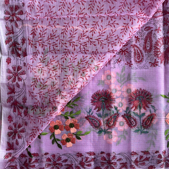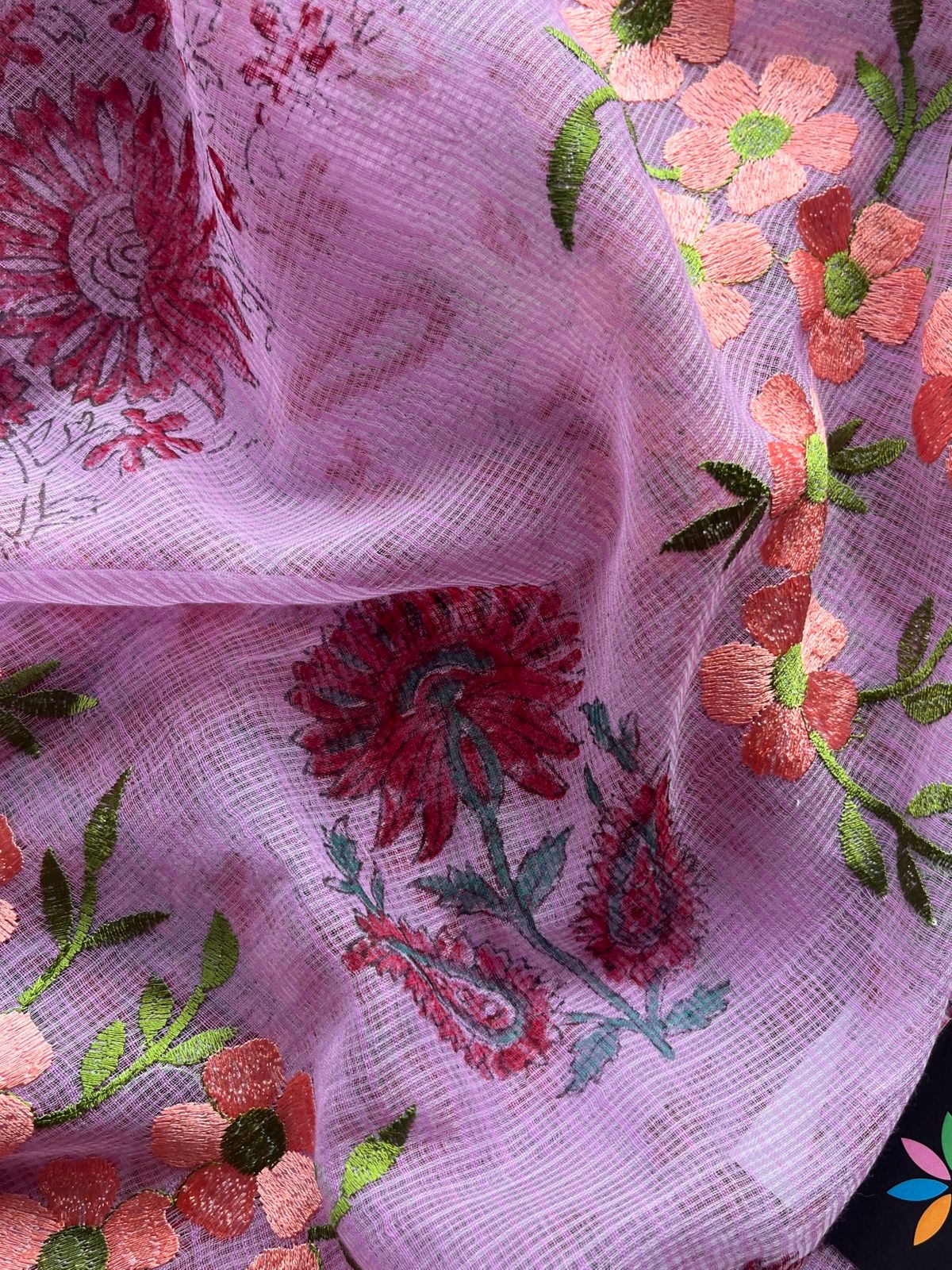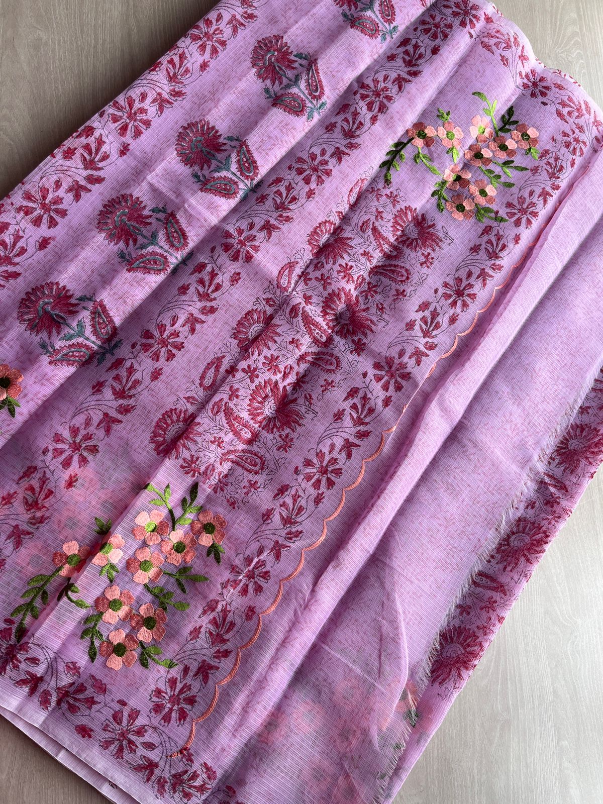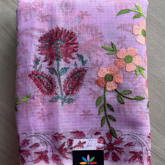 Embroidered Printed Kota Saree with Contrast Blouse-26751