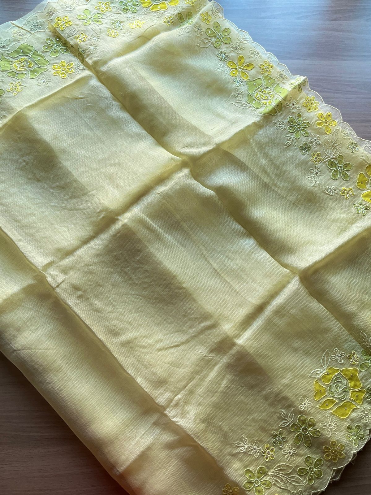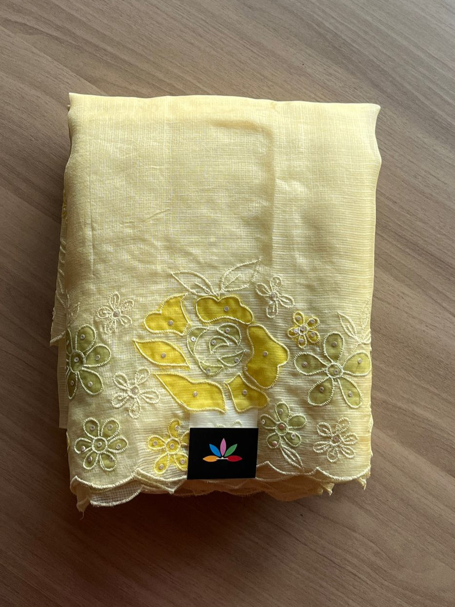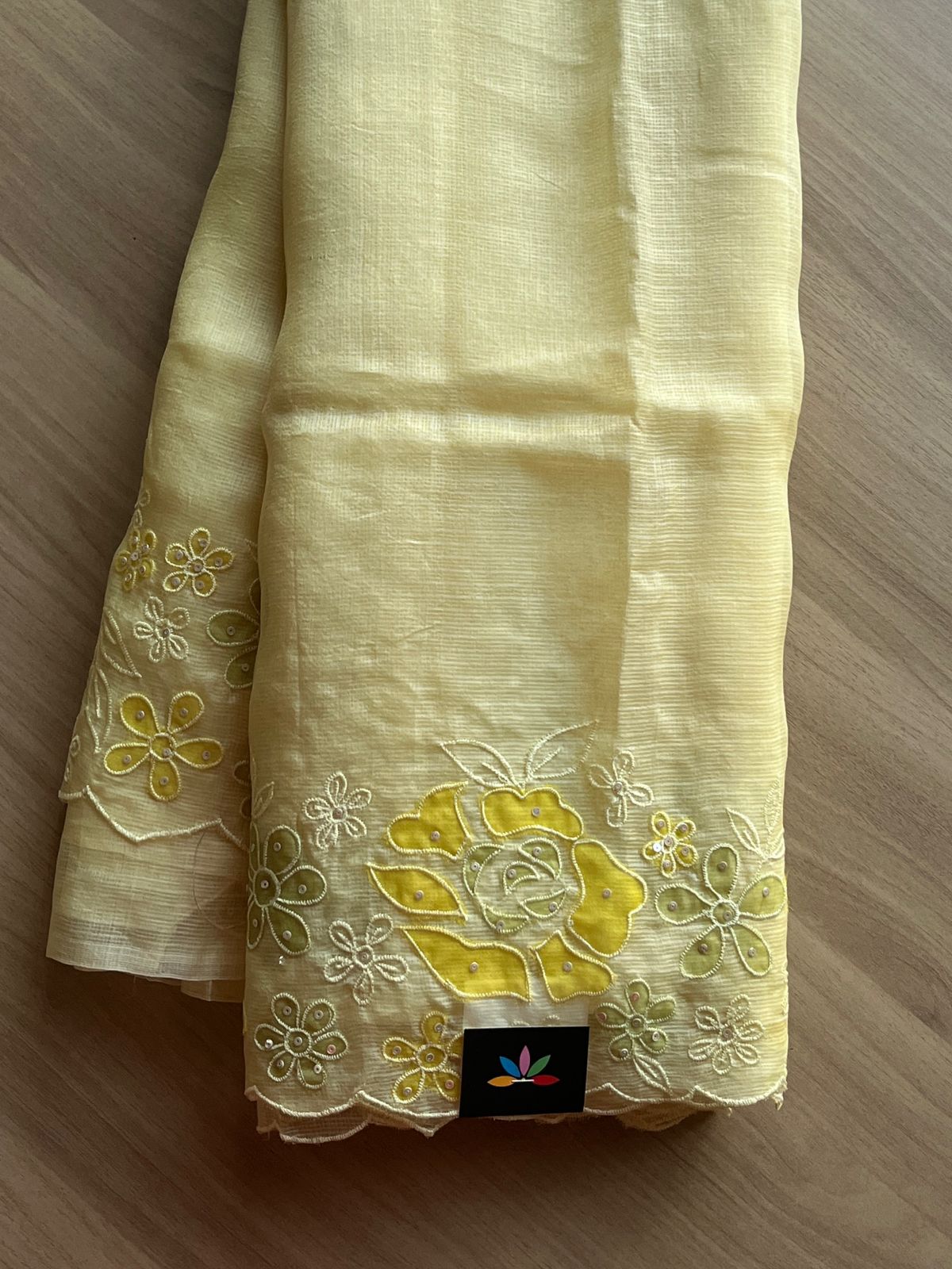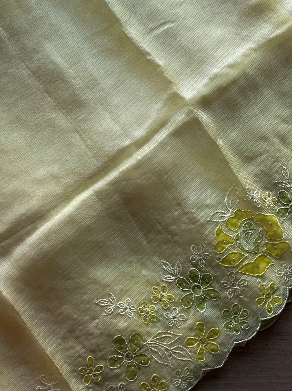 Embroidered Scallop Border Tussar Kota Silk Saree