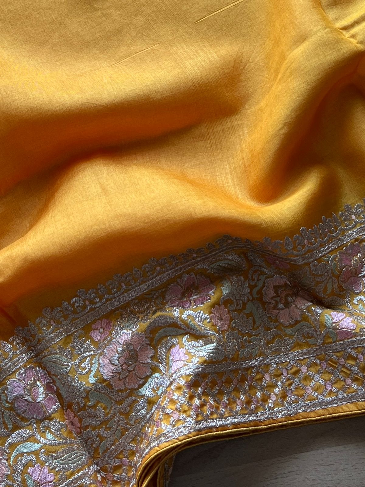 Floral Embroidery Pure Tussar Silk Saree-14783
