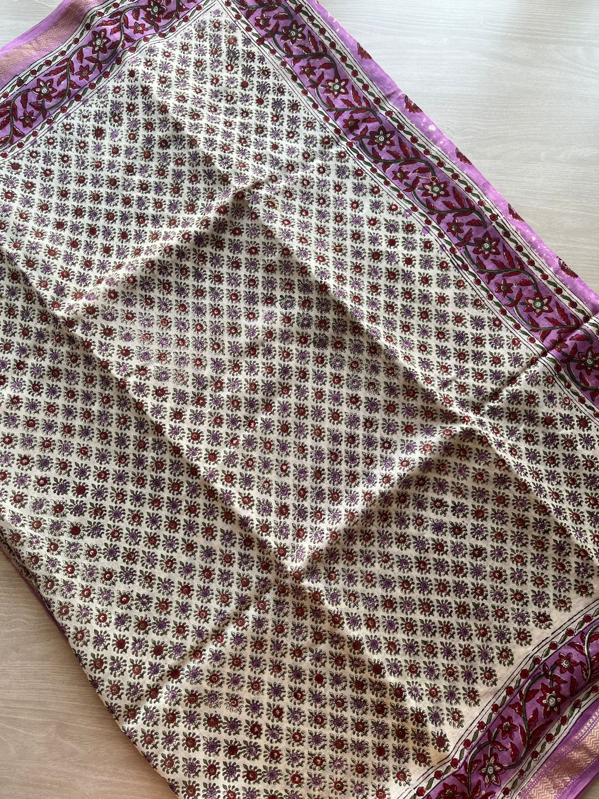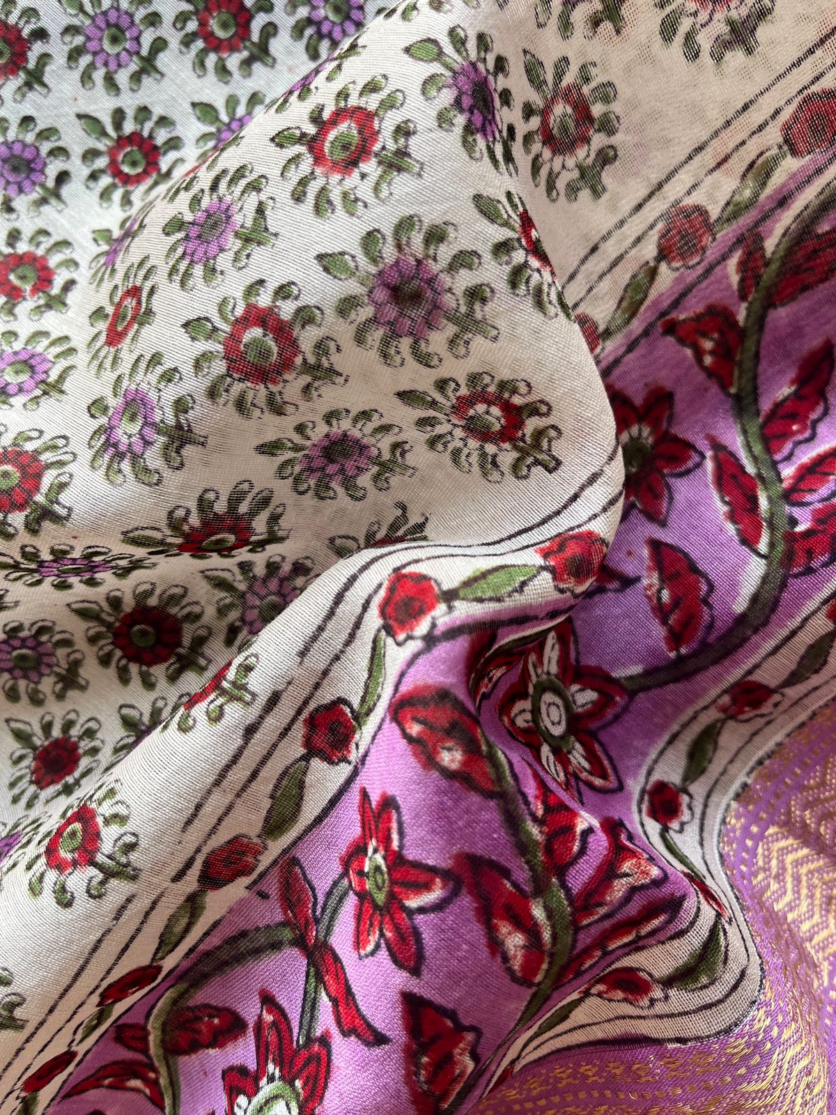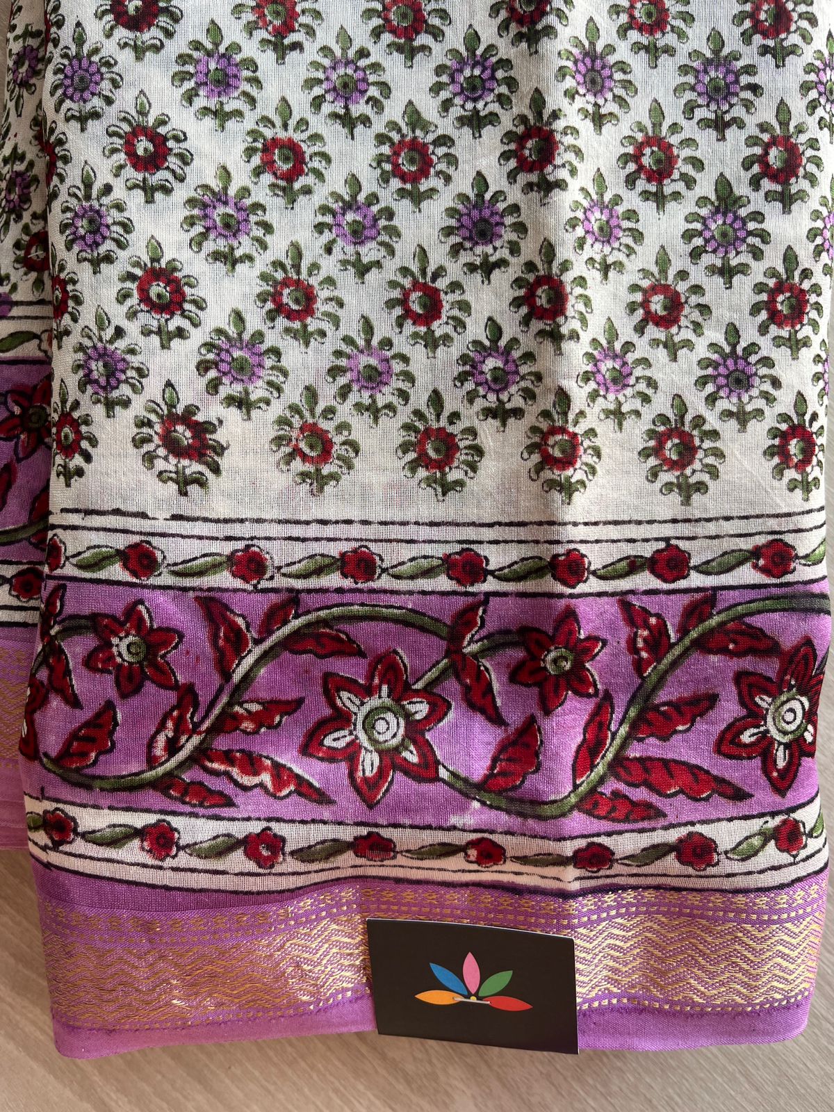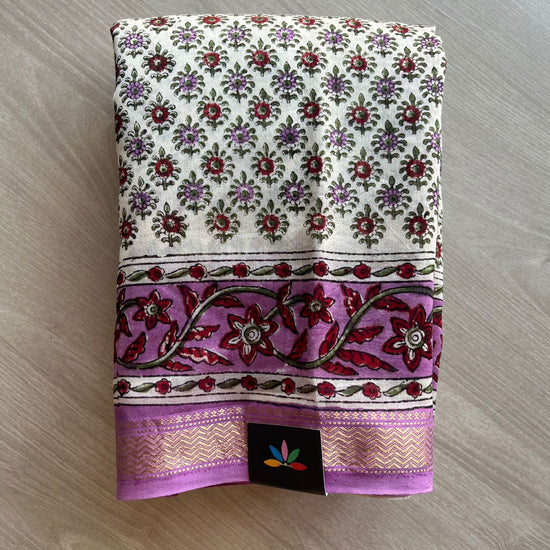 Floral Printed Chanderi Cotton Silk Saree with Traditional Zari Border-24373