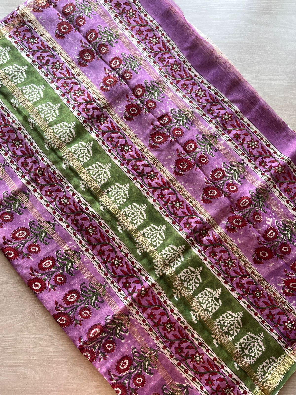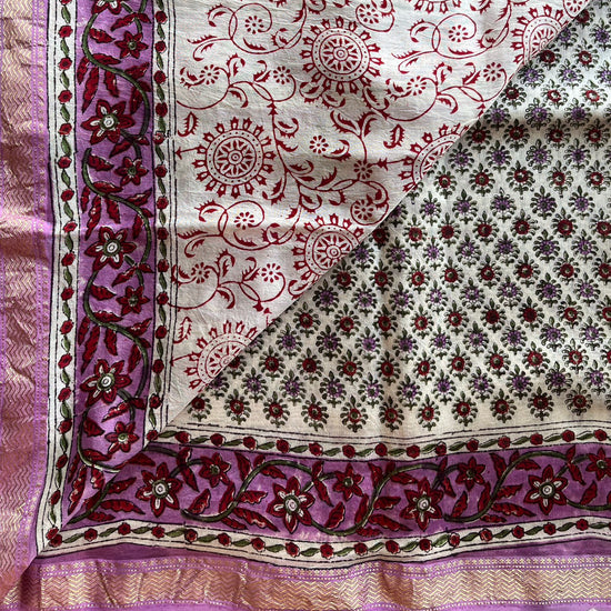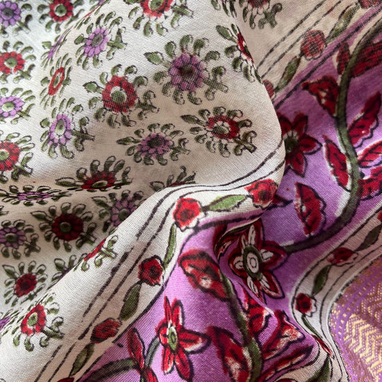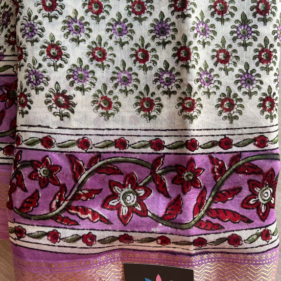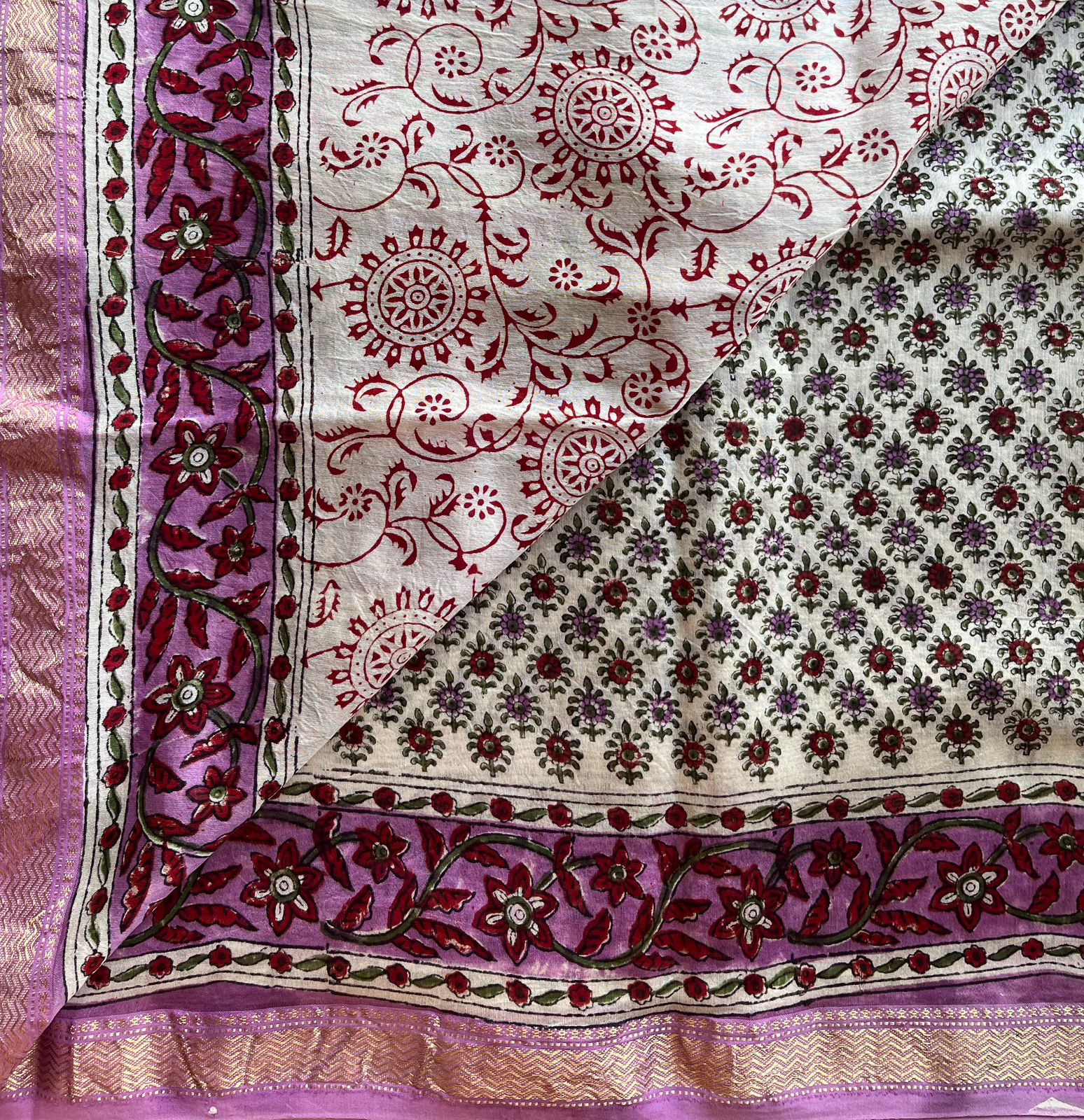 Floral Printed Chanderi Cotton Silk Saree with Traditional Zari Border-24373