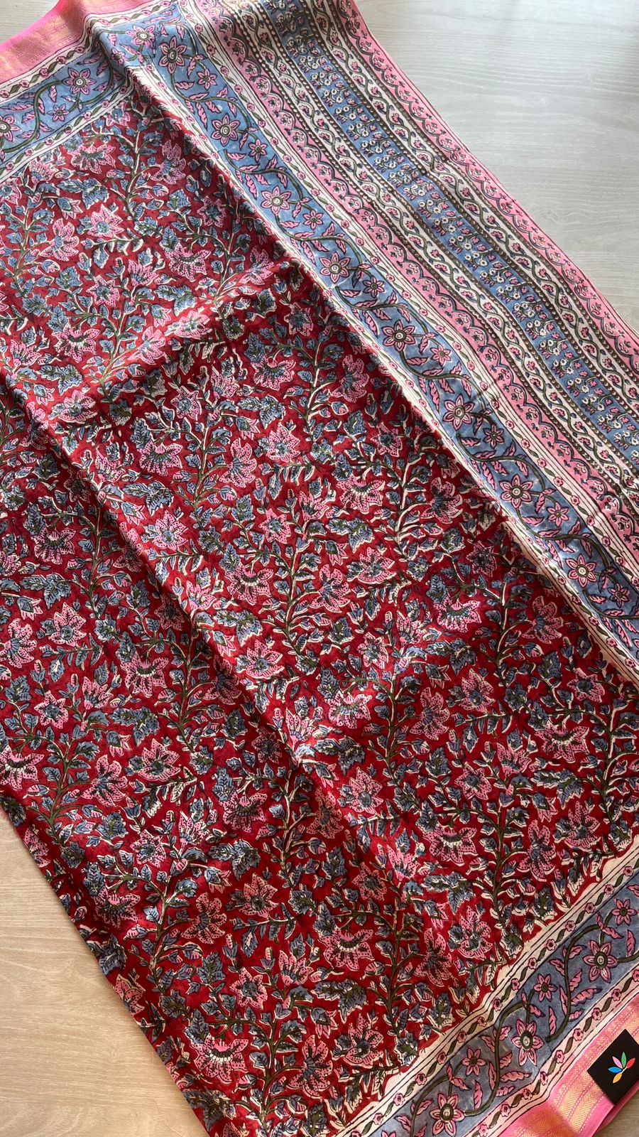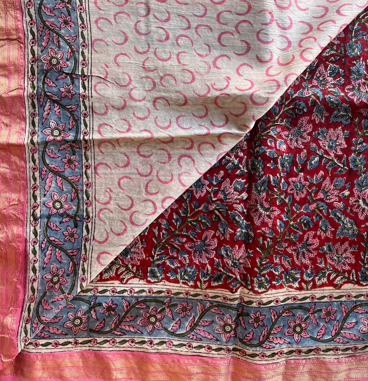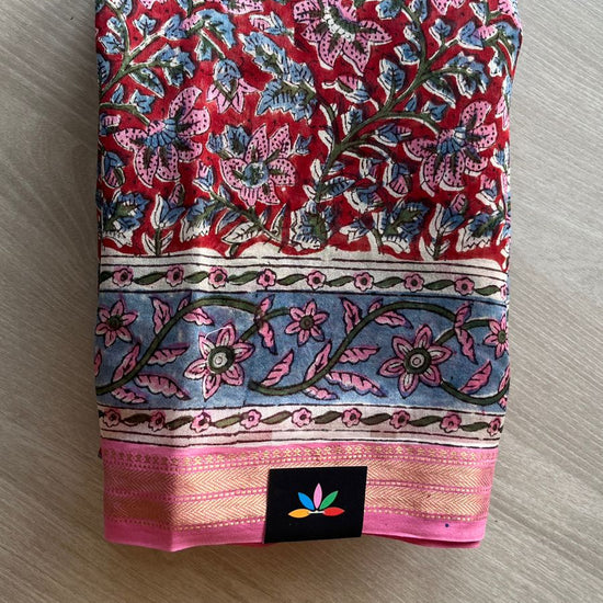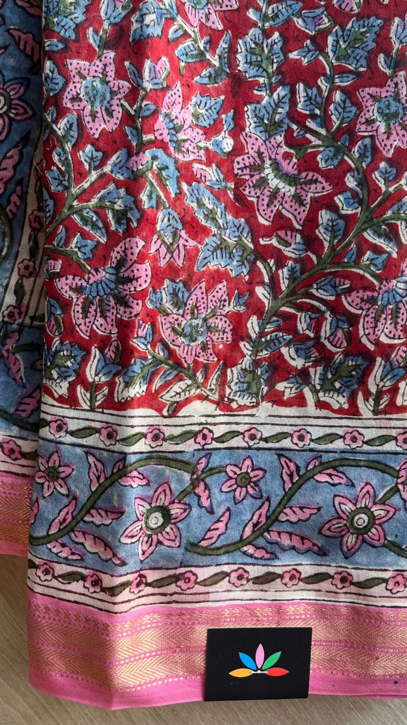 Floral Printed Chanderi Cotton Silk Saree with Traditional Zari Border-24377