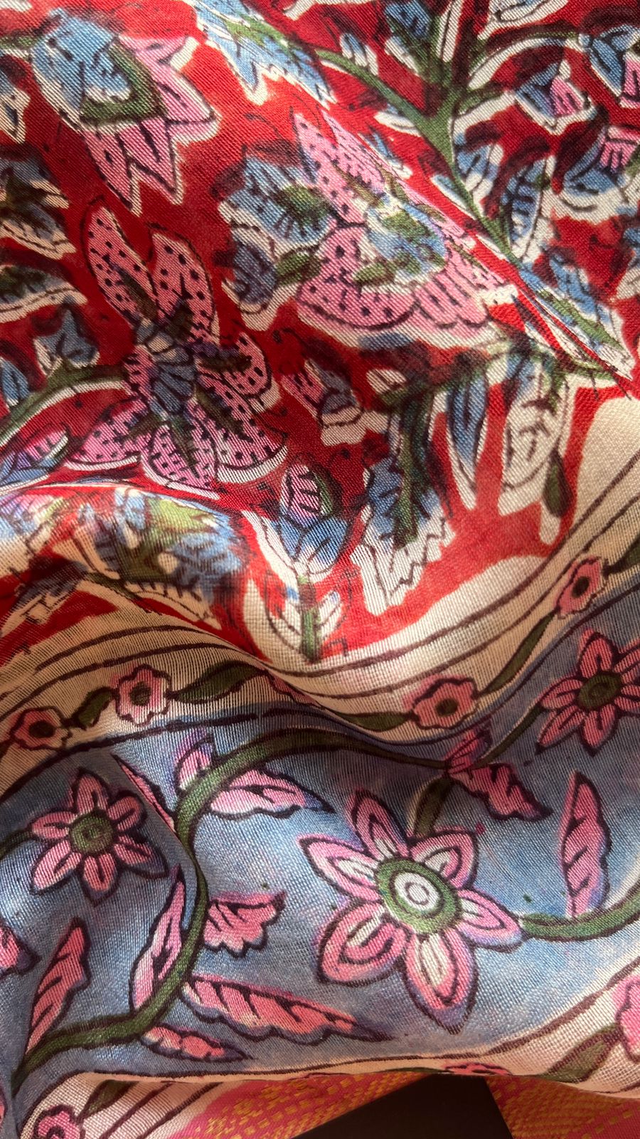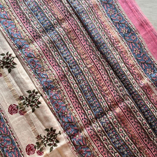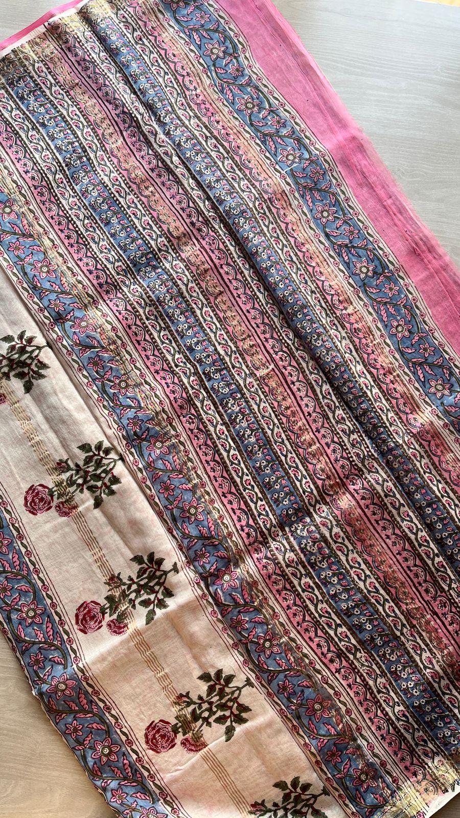 Floral Printed Chanderi Cotton Silk Saree with Traditional Zari Border-24377