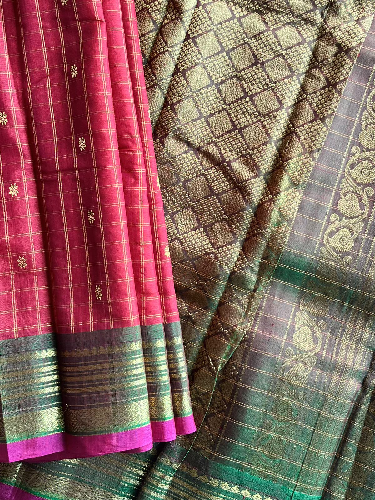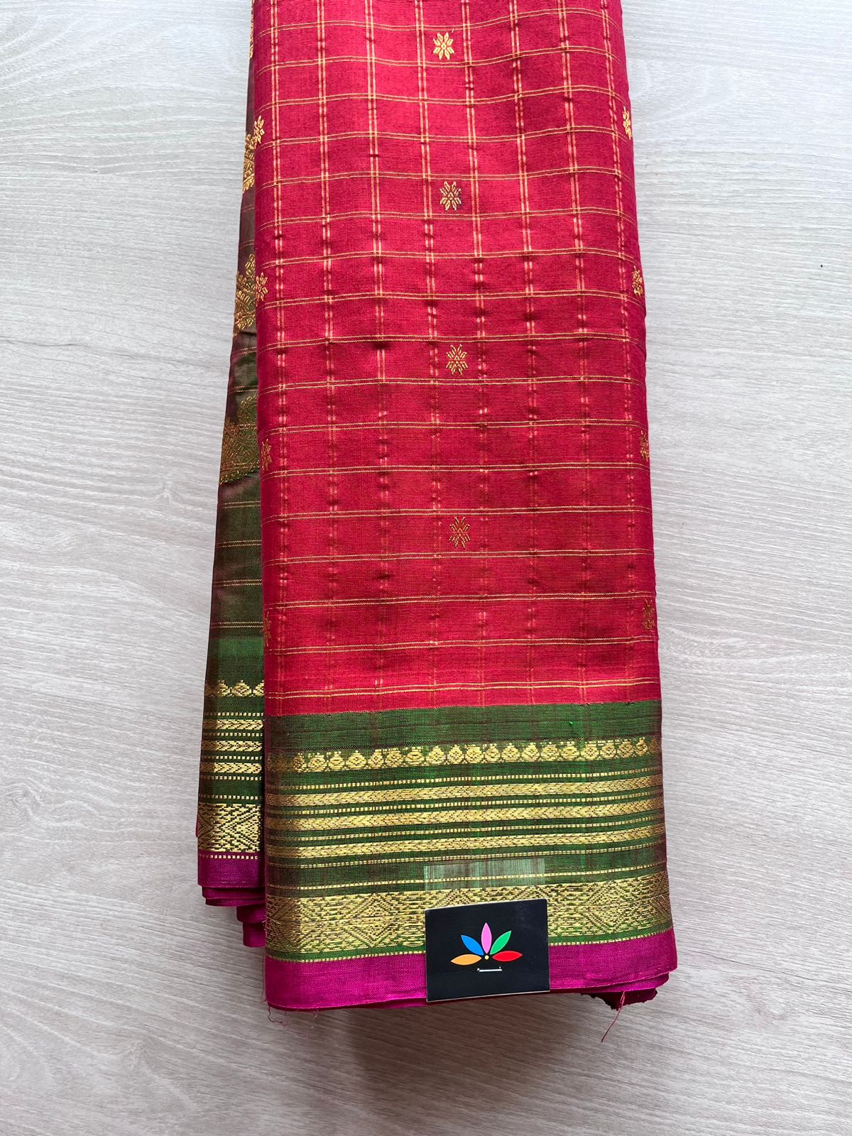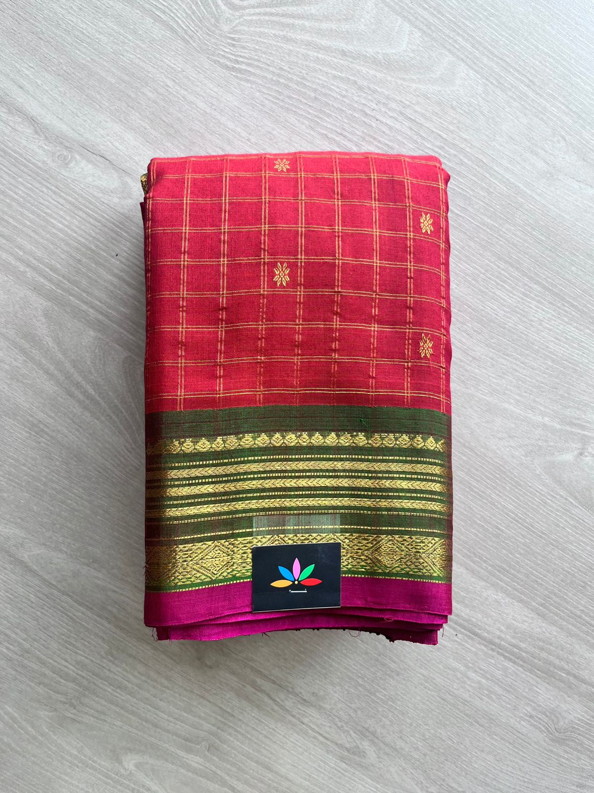 Gadwal Pure Silk Cotton Saree with Contrast Pallu and Blouse