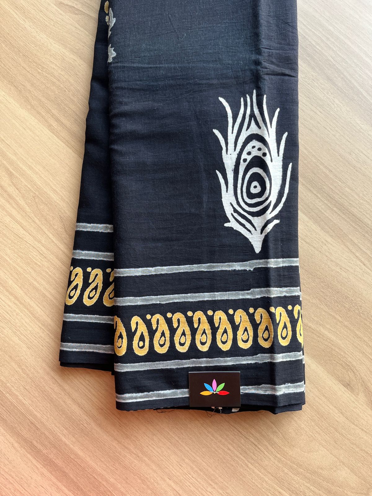 Hand Block Printed Fine Mul Cotton Saree -13873