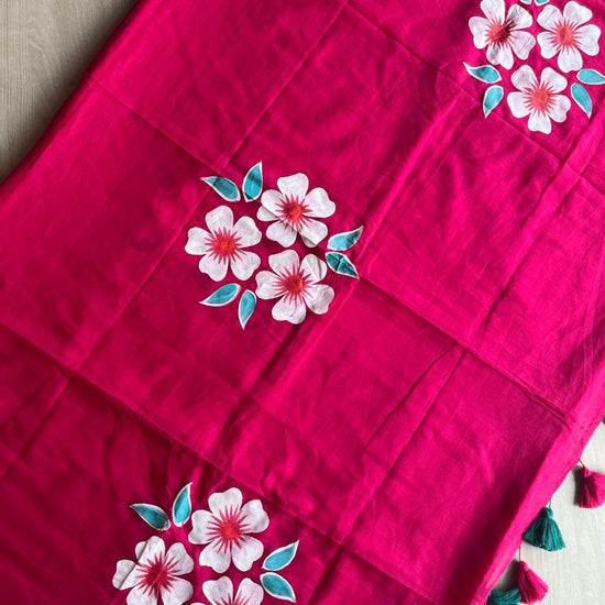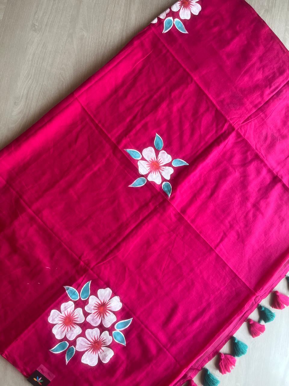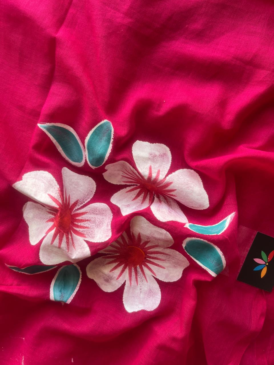Hand Brush Printed Feather Light Mul Cotton Saree - 28371