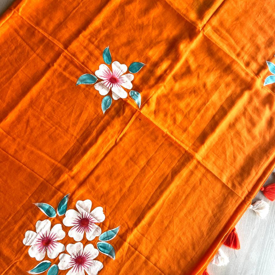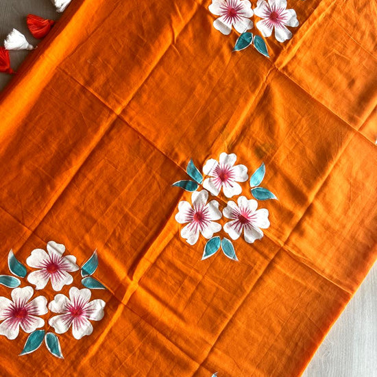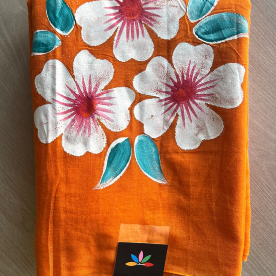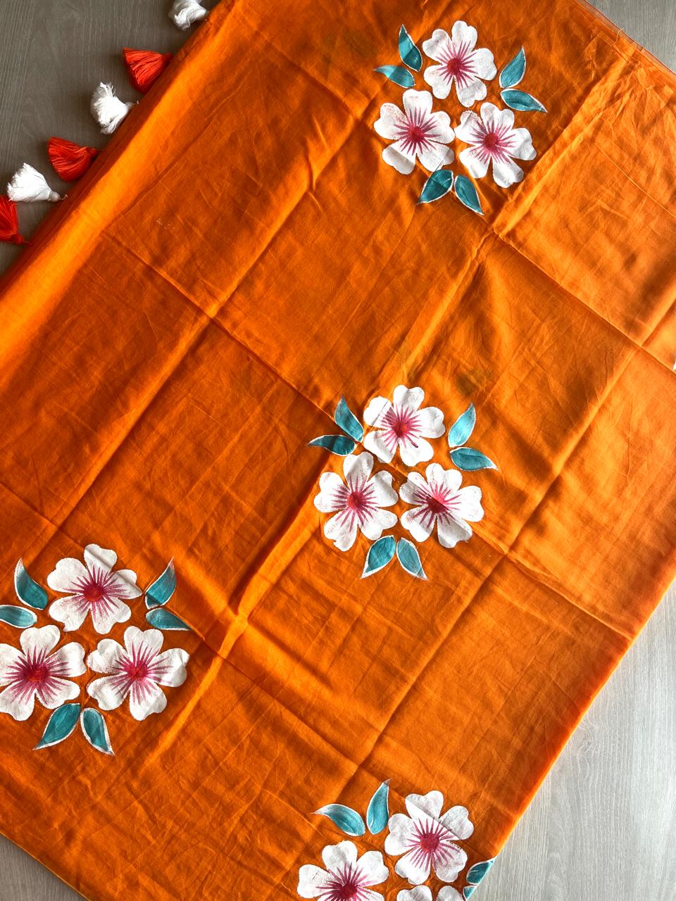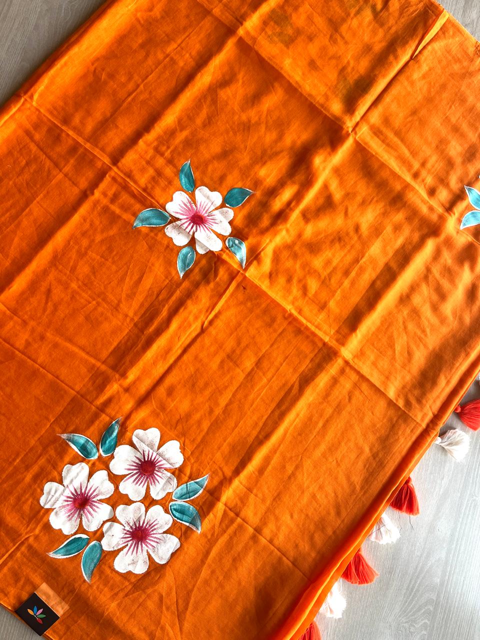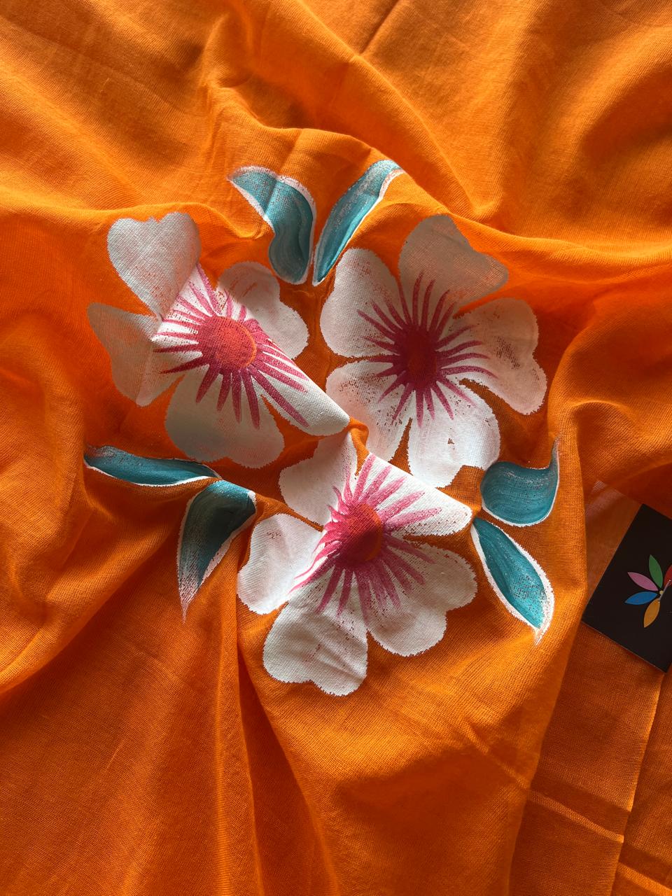Hand Brush Printed Feather Light Mul Cotton Saree