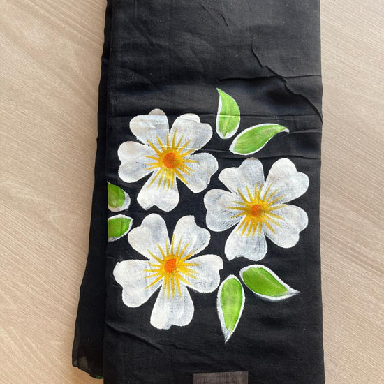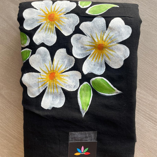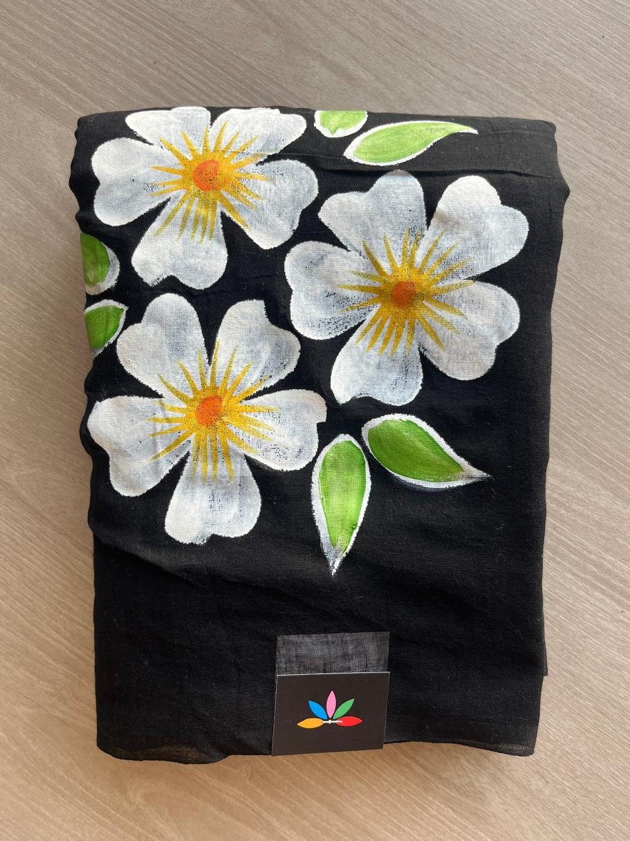 Hand Brush Printed Feather Light Mul Cotton Saree