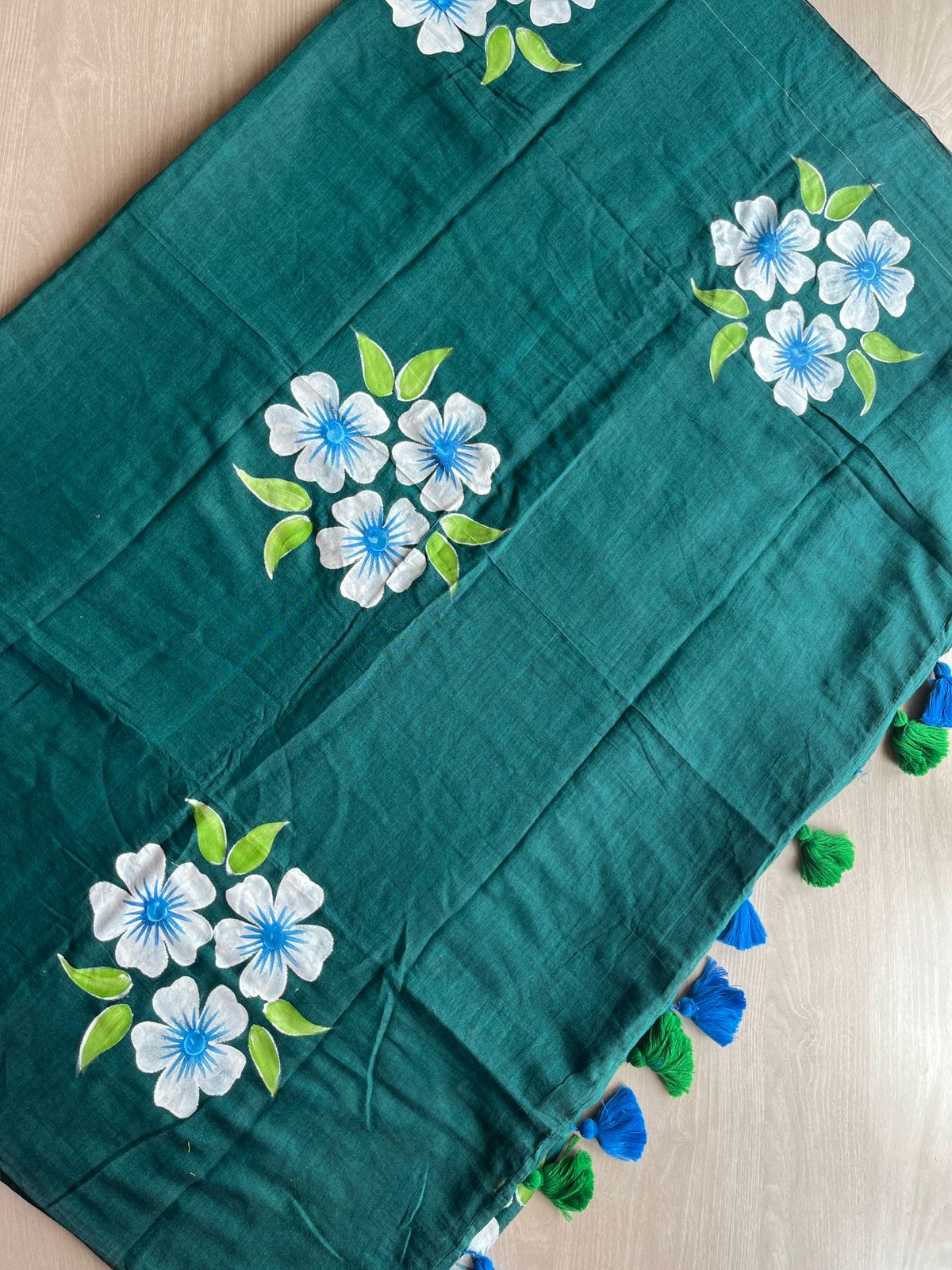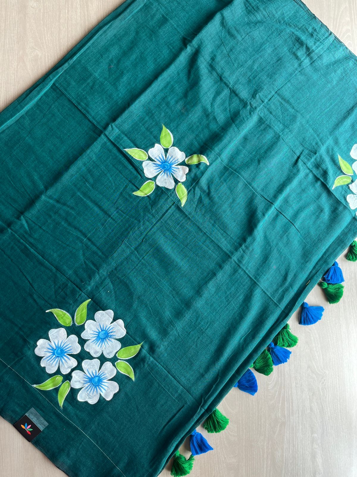 Hand Brush Printed Feather Light Mul Cotton Saree