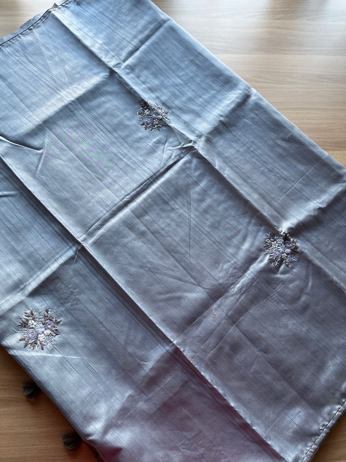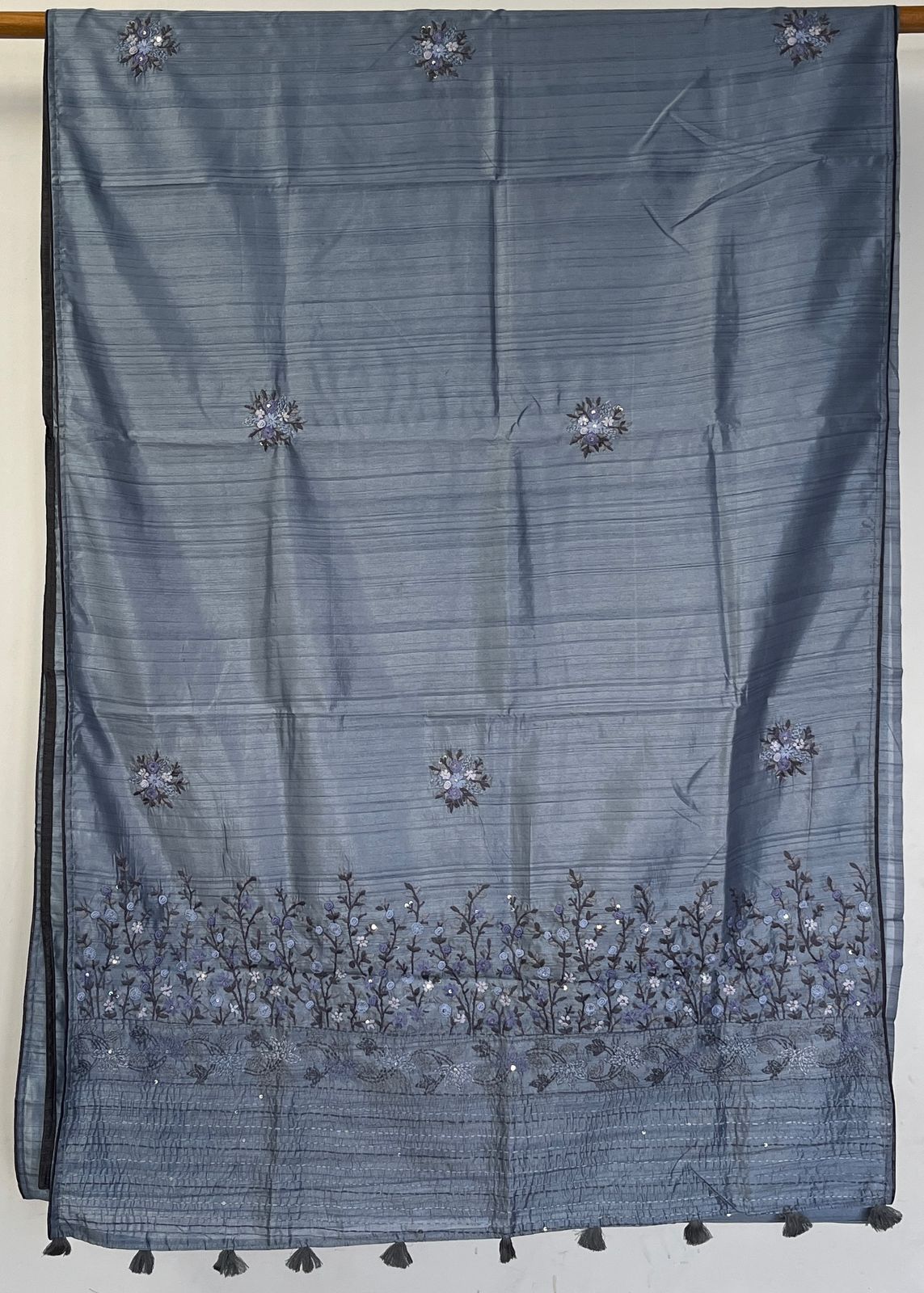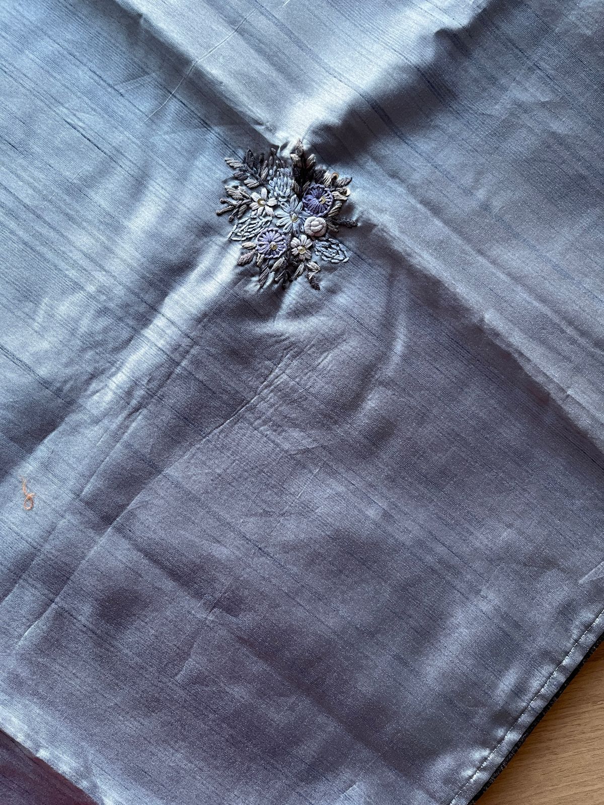 Hand embroidered Bullion Knot Semi Tussar Silk Saree-18005