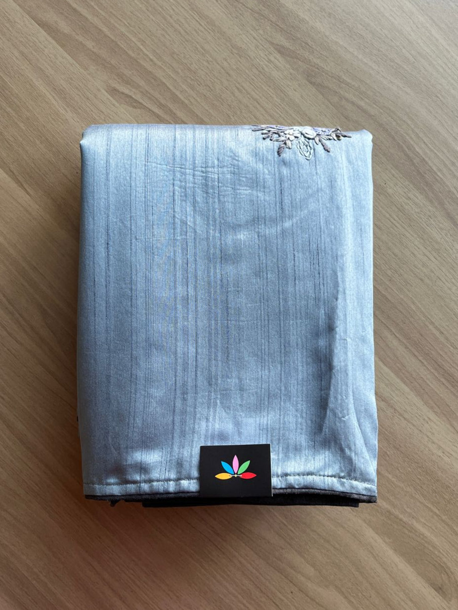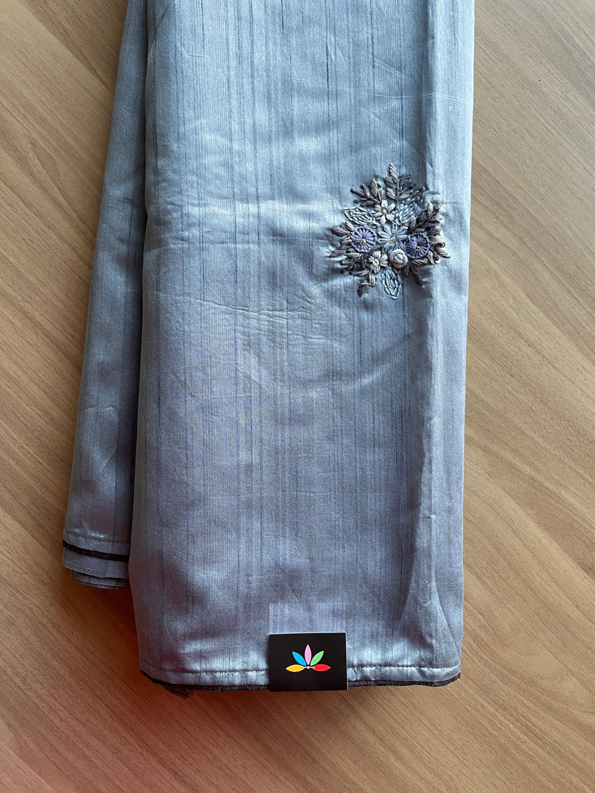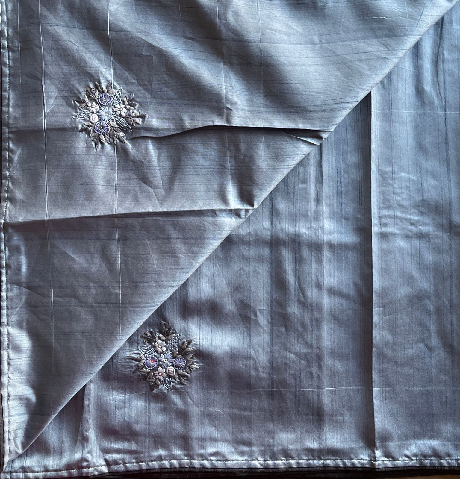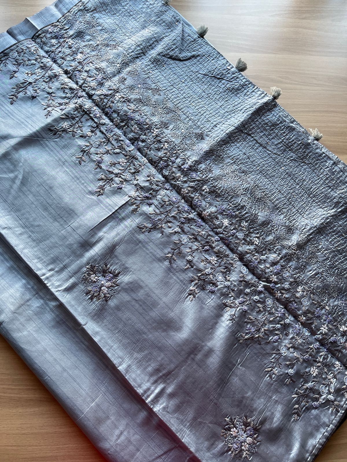 Hand embroidered Bullion Knot Semi Tussar Silk Saree-18005
