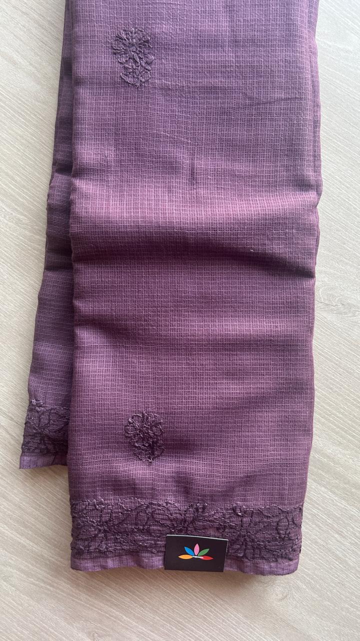 Hand embroidered Chikankari Kota Cotton Saree