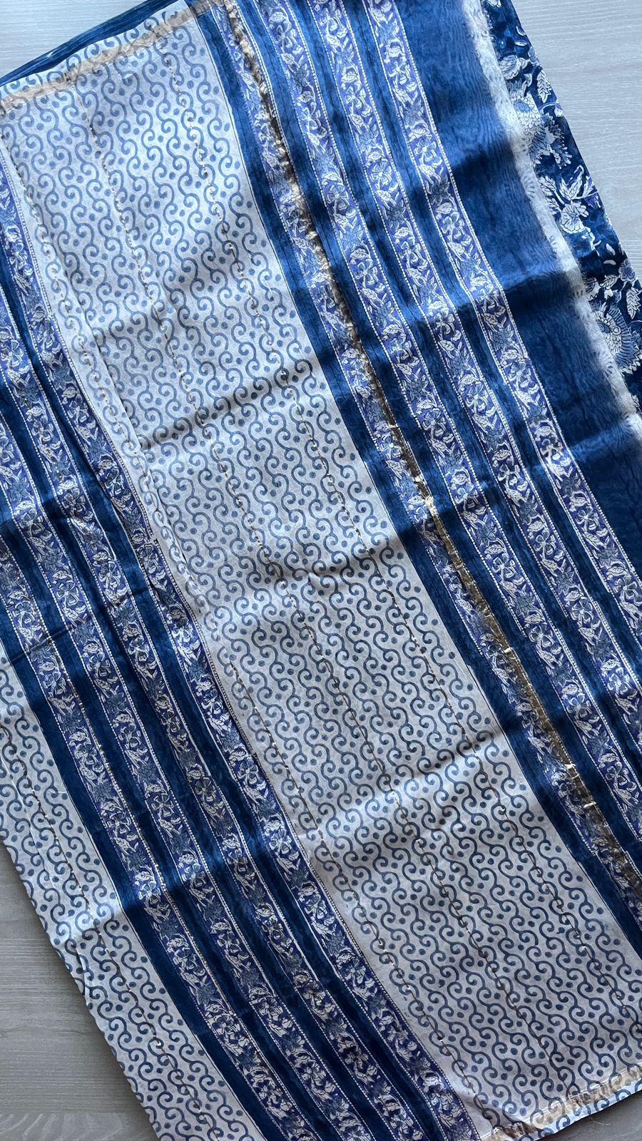 Handblock Printed Chanderi Cotton Silk Saree -24497-24498