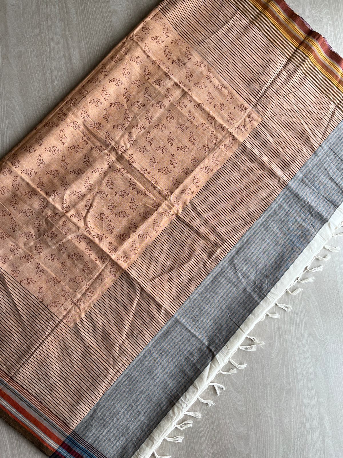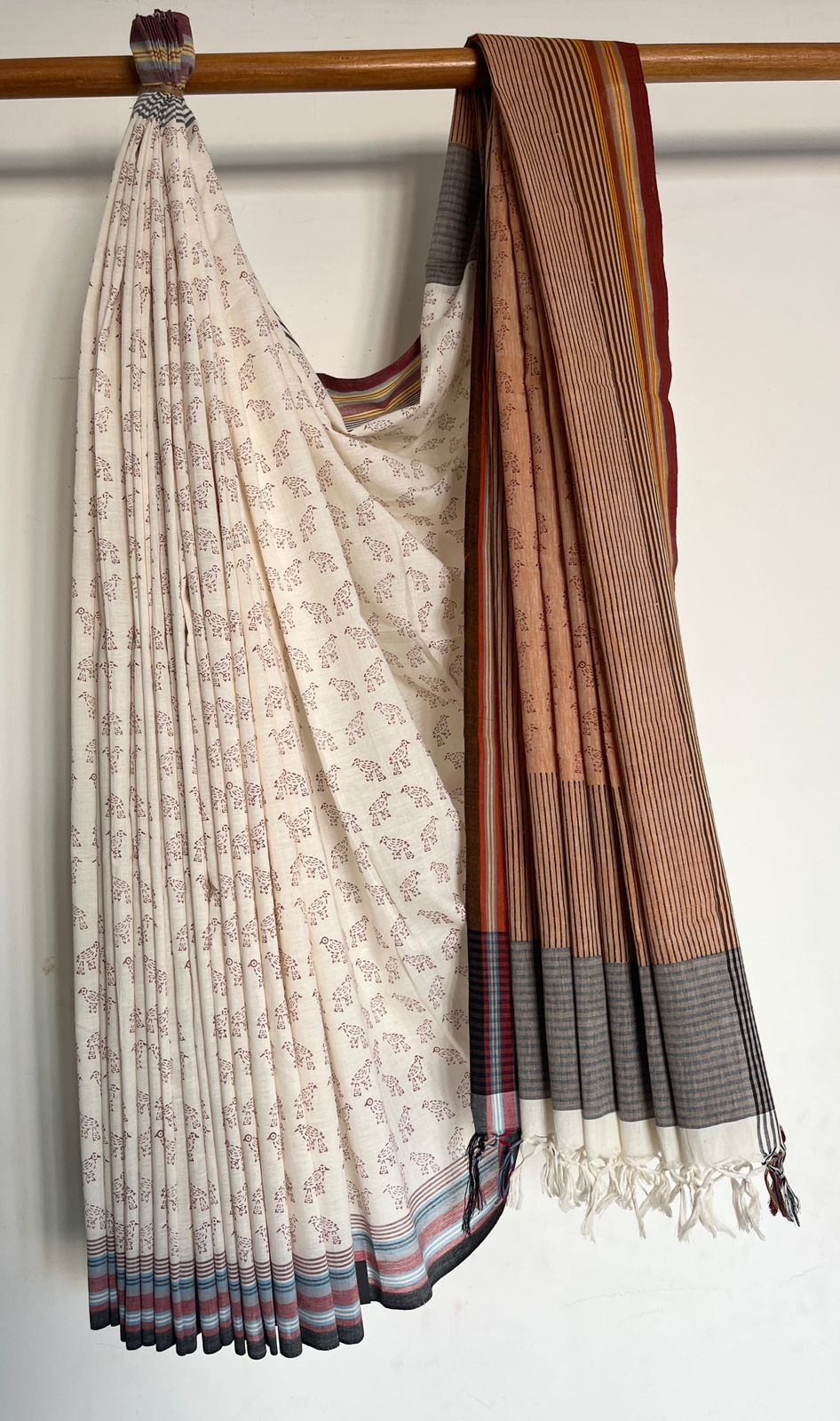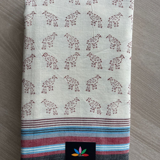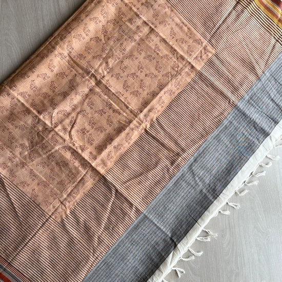 Handblock Printed Handloom Cotton Saree (without blouse)