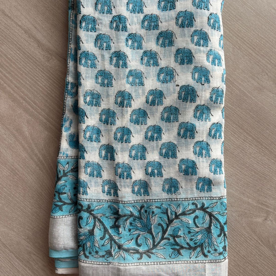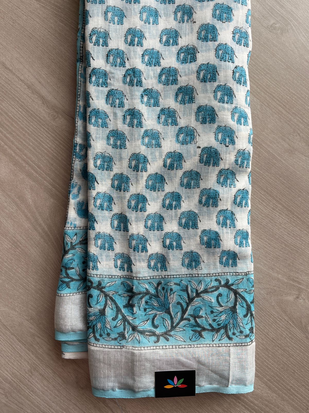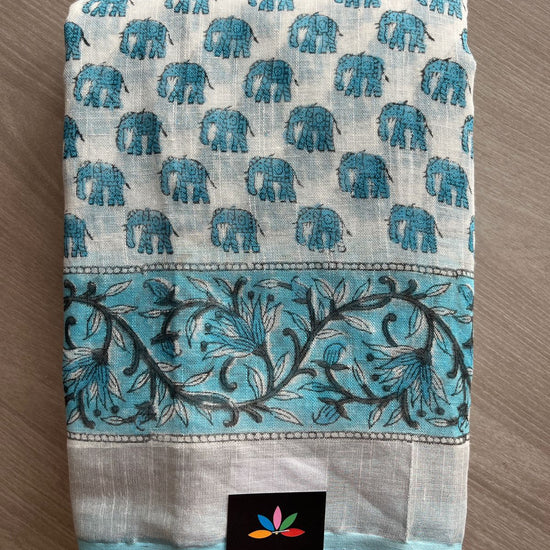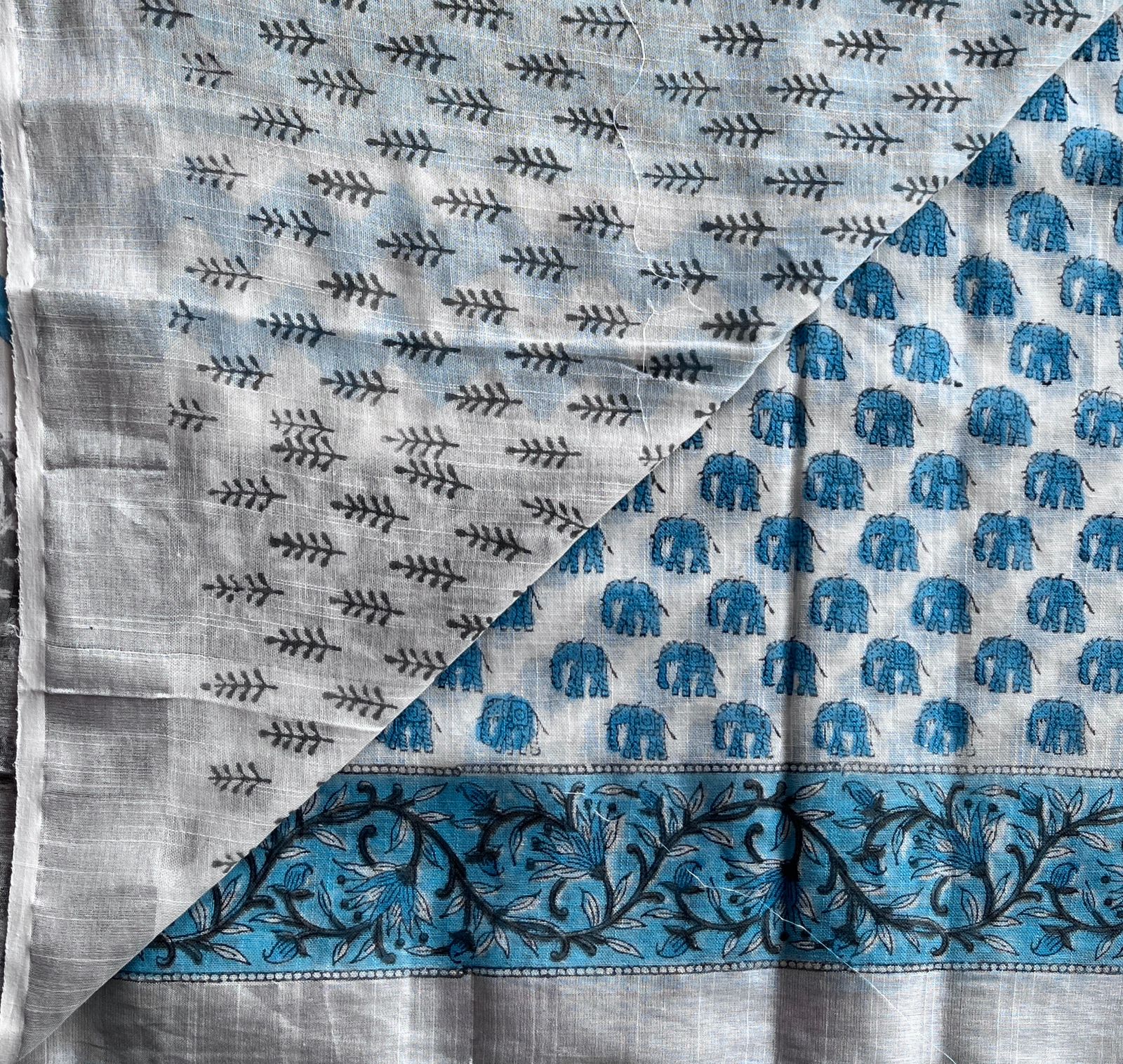 Handblock Printed Linen Cotton Saree - 27183-27184