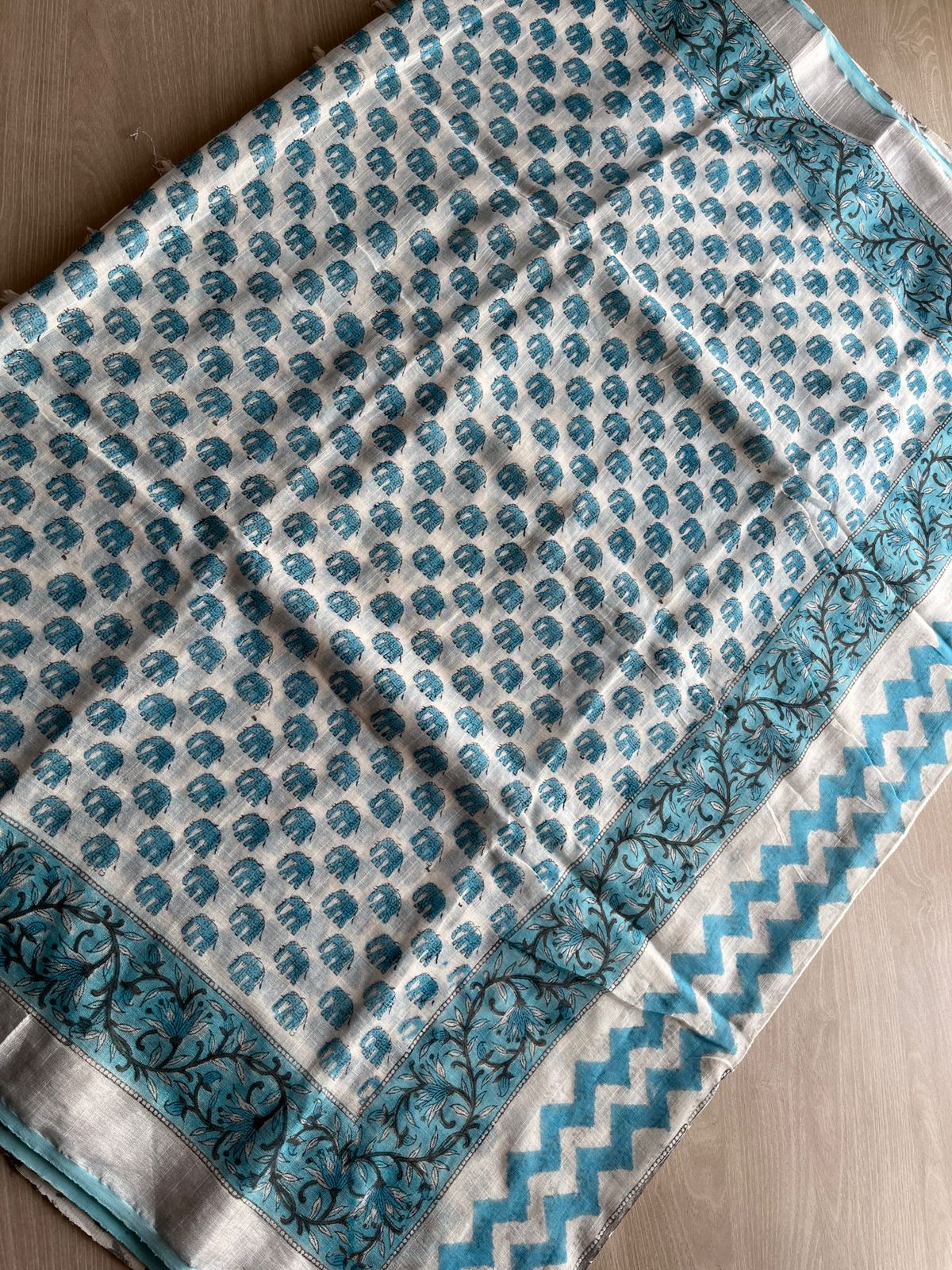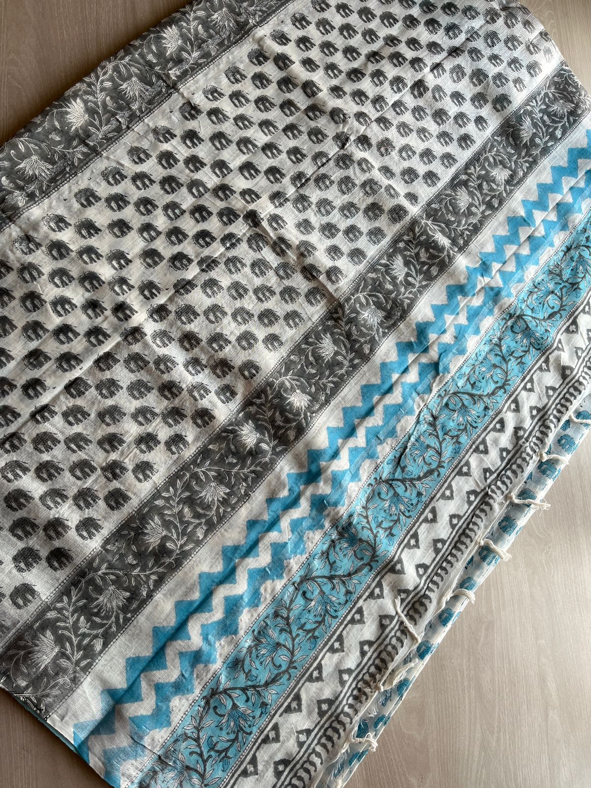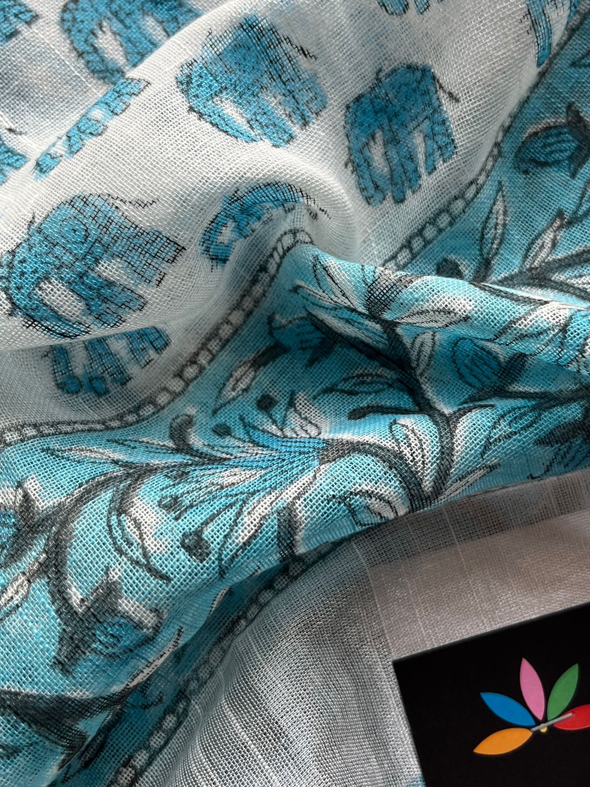 Handblock Printed Linen Cotton Saree - 27183-27184