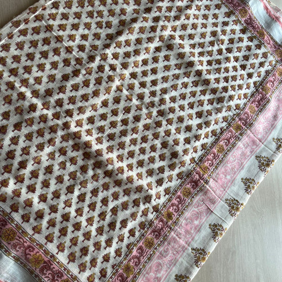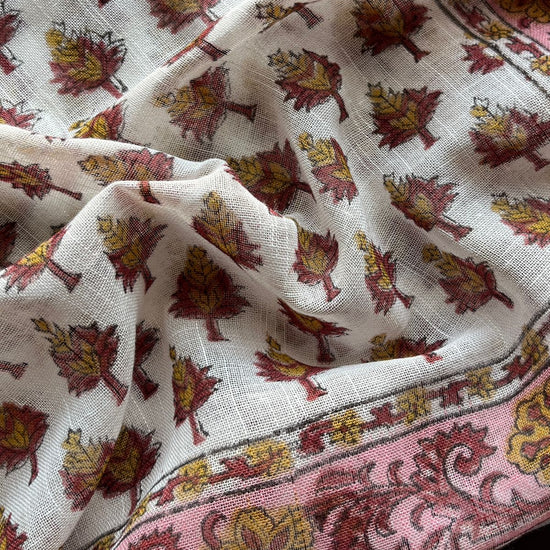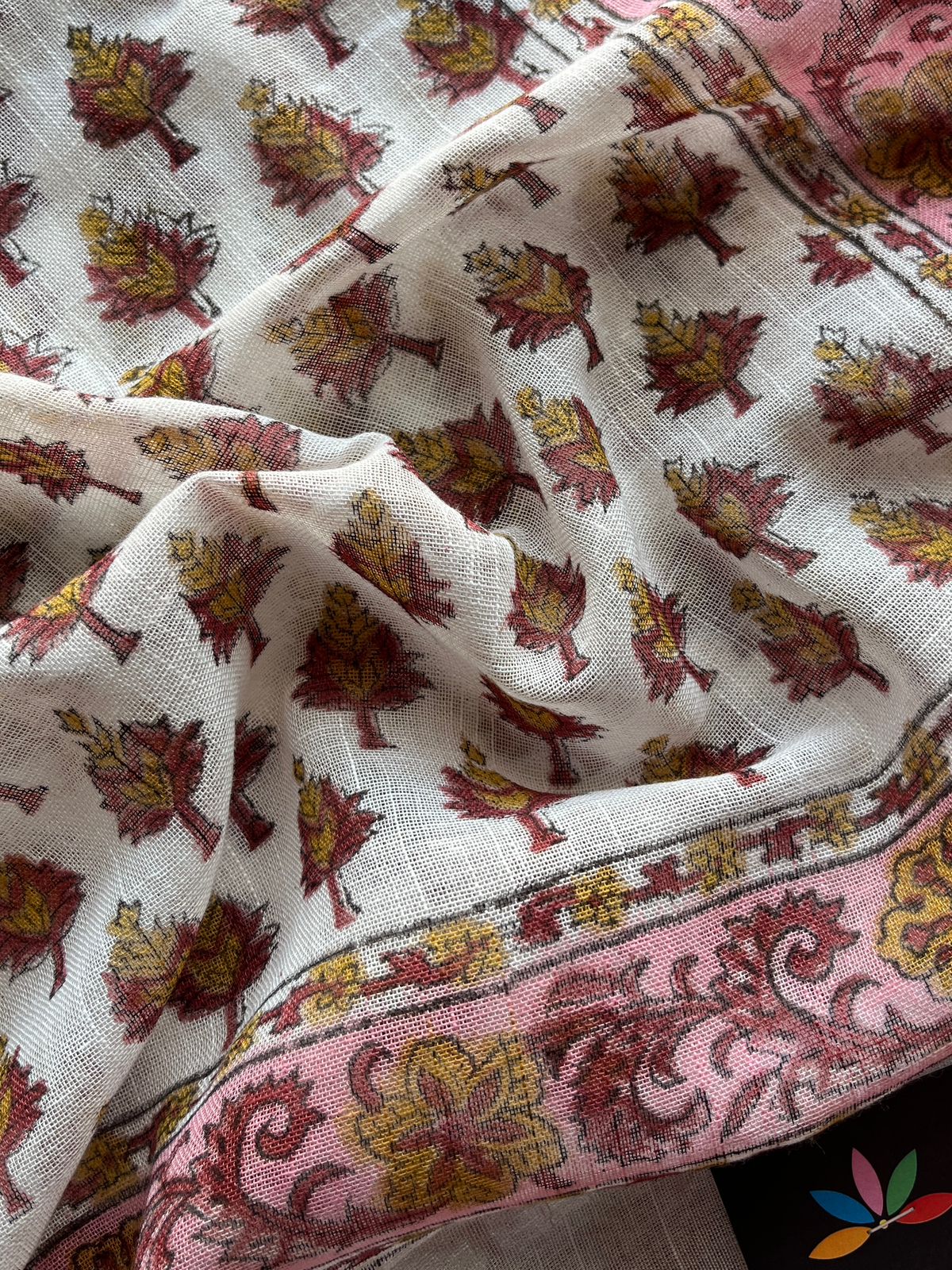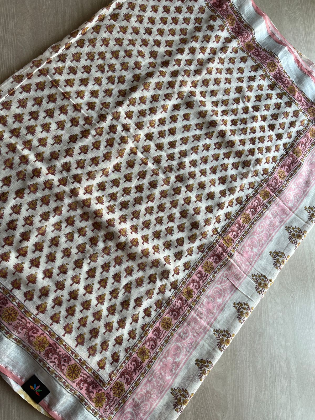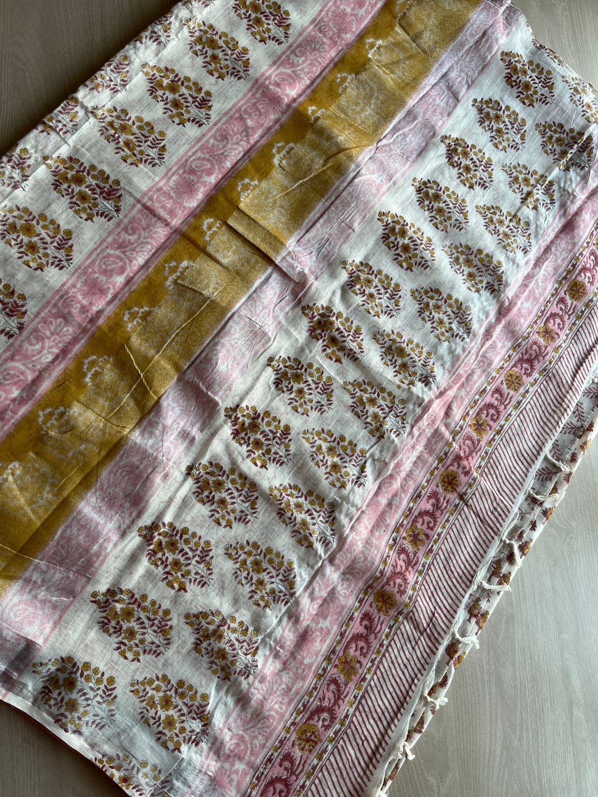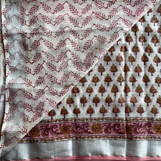 Handblock Printed Linen Cotton Saree - 27185-27186