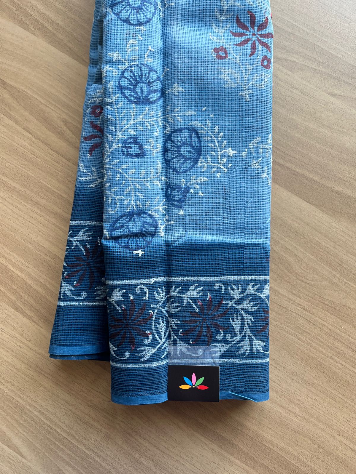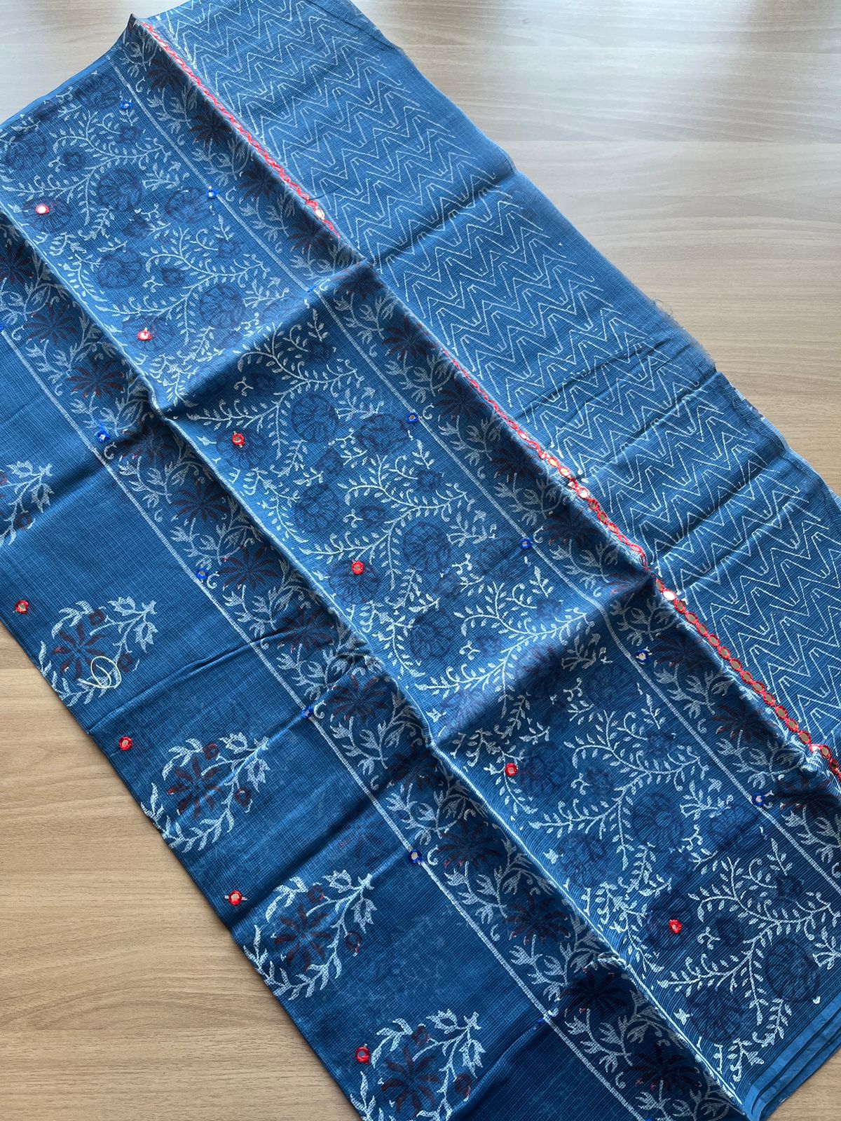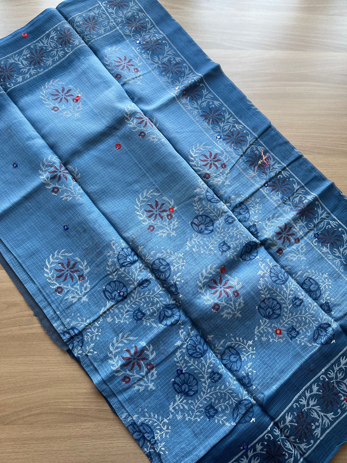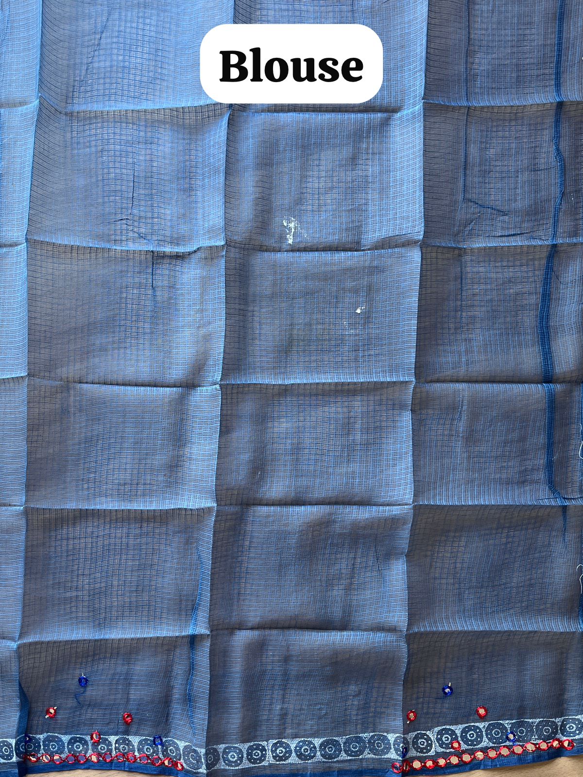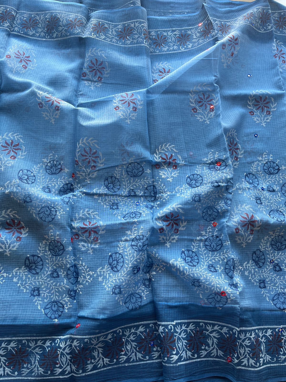 Handblock Printed Mirror Work Kota Cotton Saree-18571