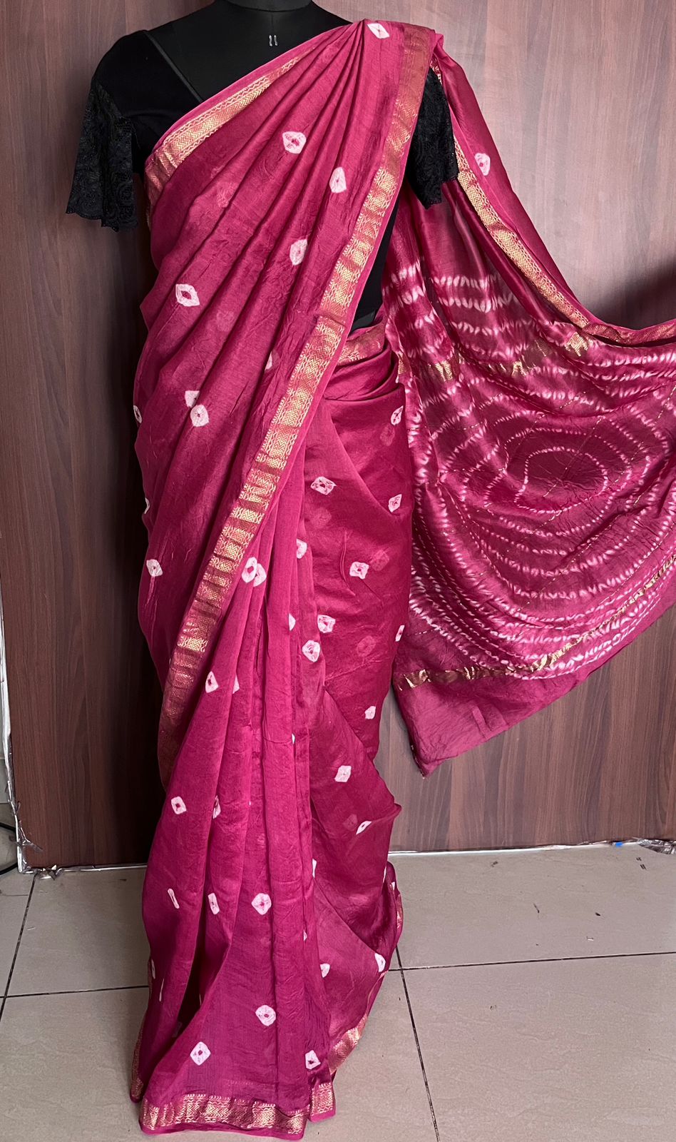 Handcrafted Chanderi Silk Cotton Saree with zari border-27415