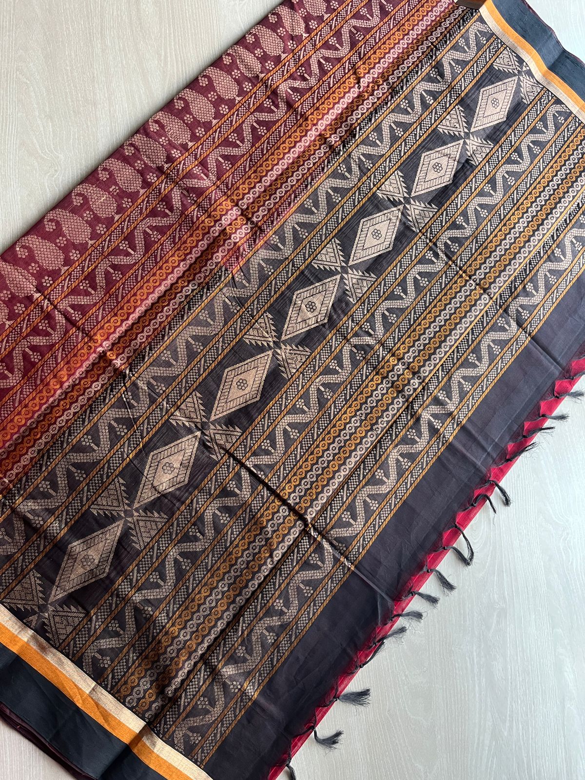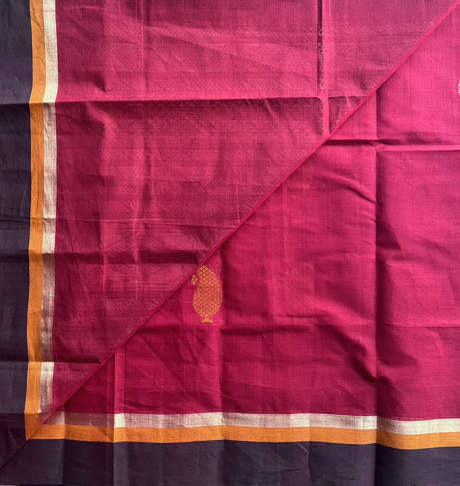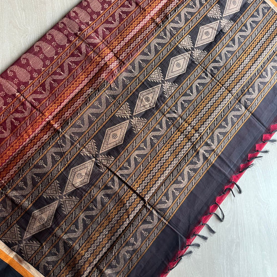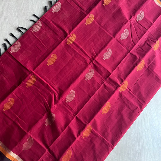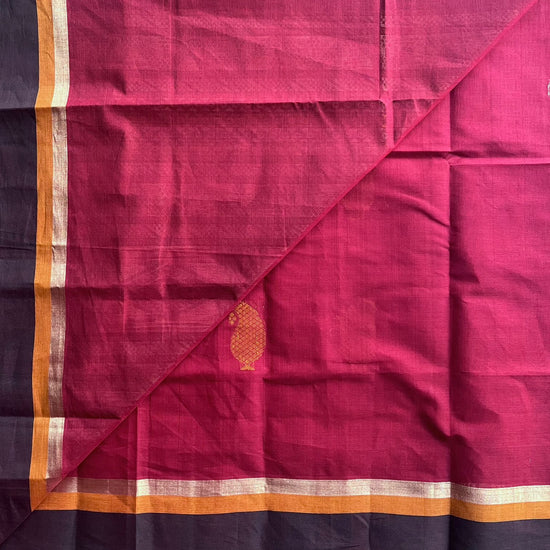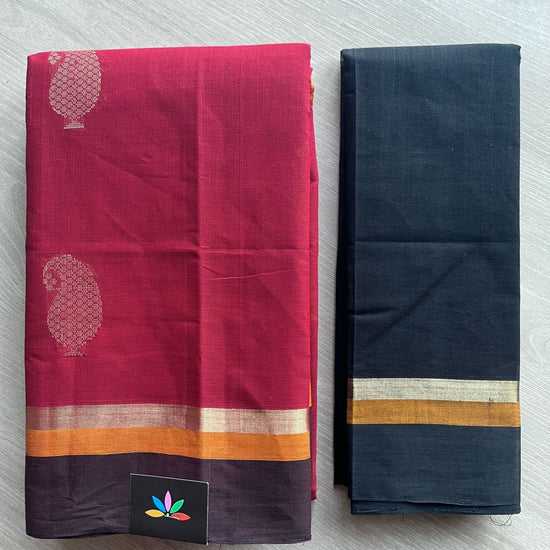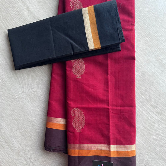 Handloom Fine Cotton Saree with Contrast Pallu and Blouse