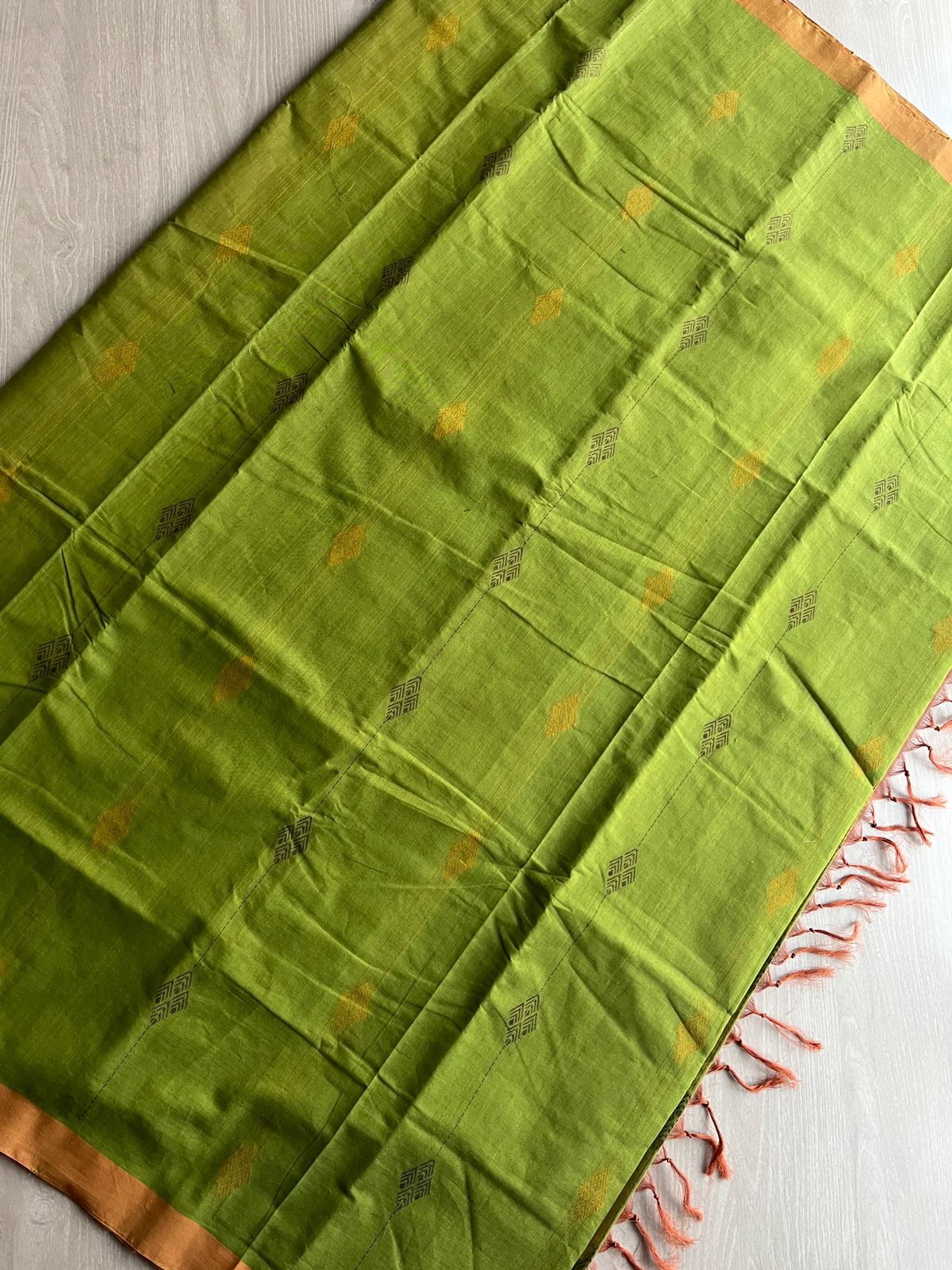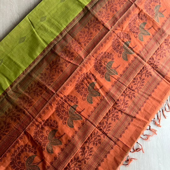 Handloom Fine Cotton Saree with Contrast Pallu and Blouse