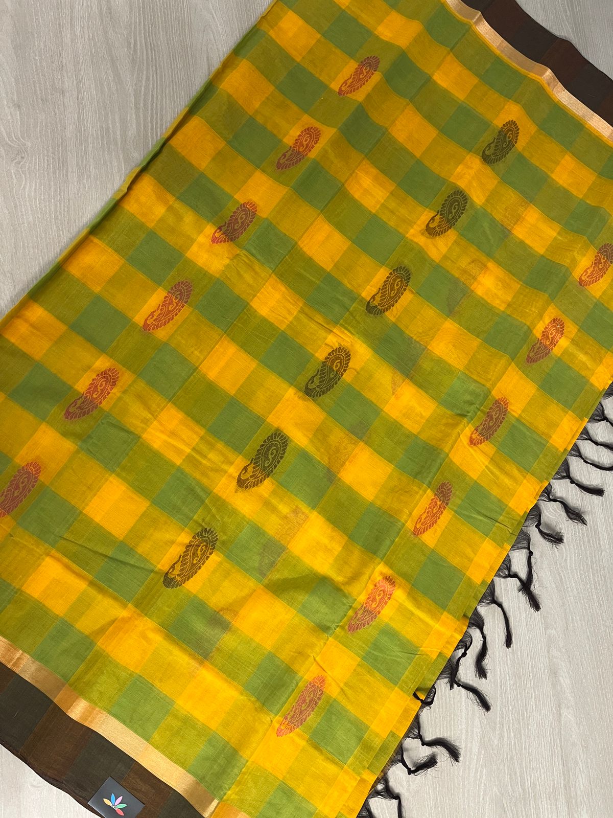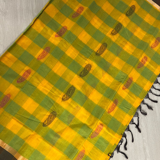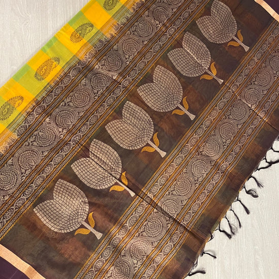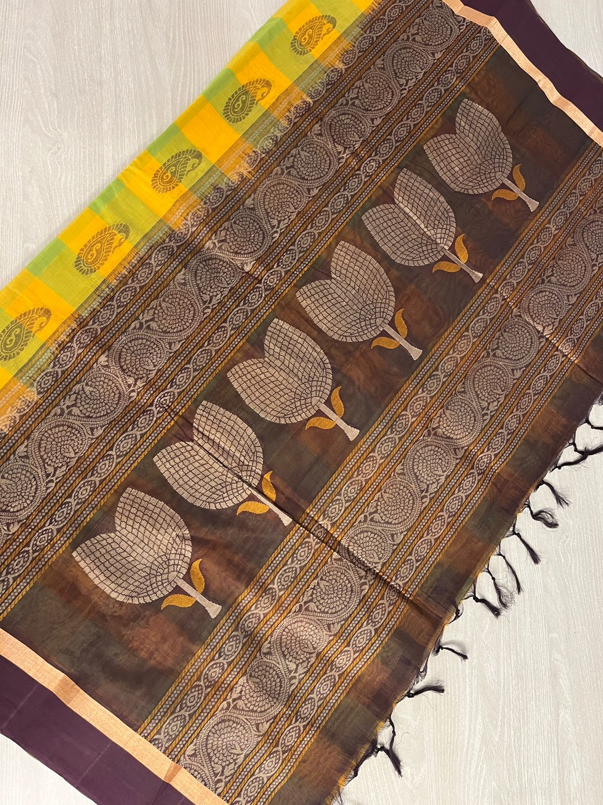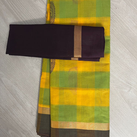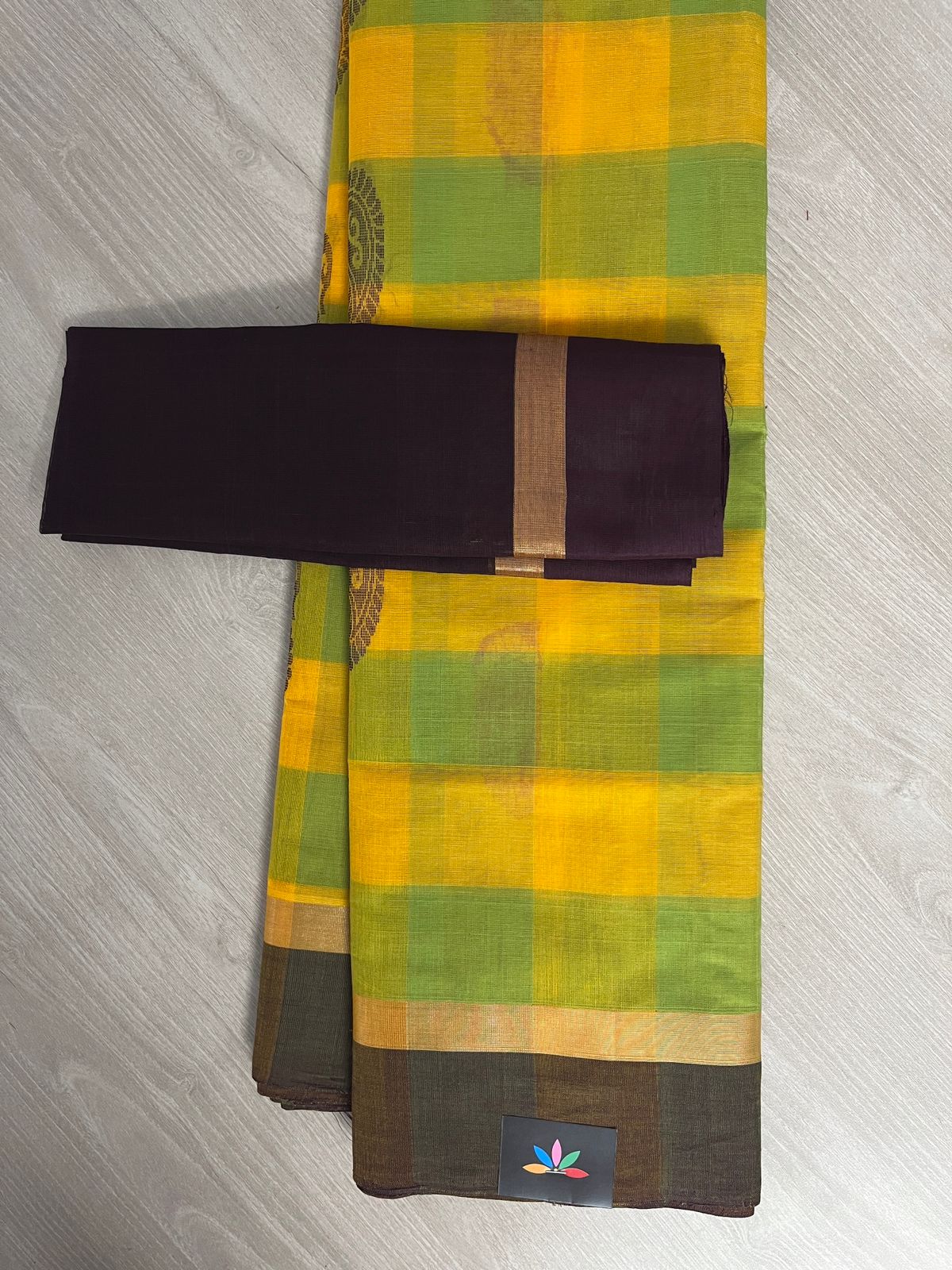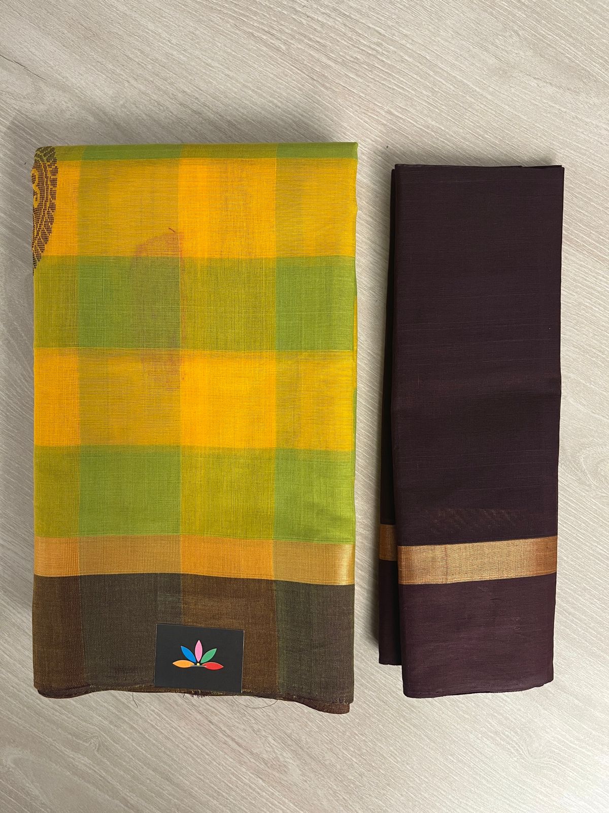 Handloom Fine Cotton Saree with Contrast Pallu and Blouse