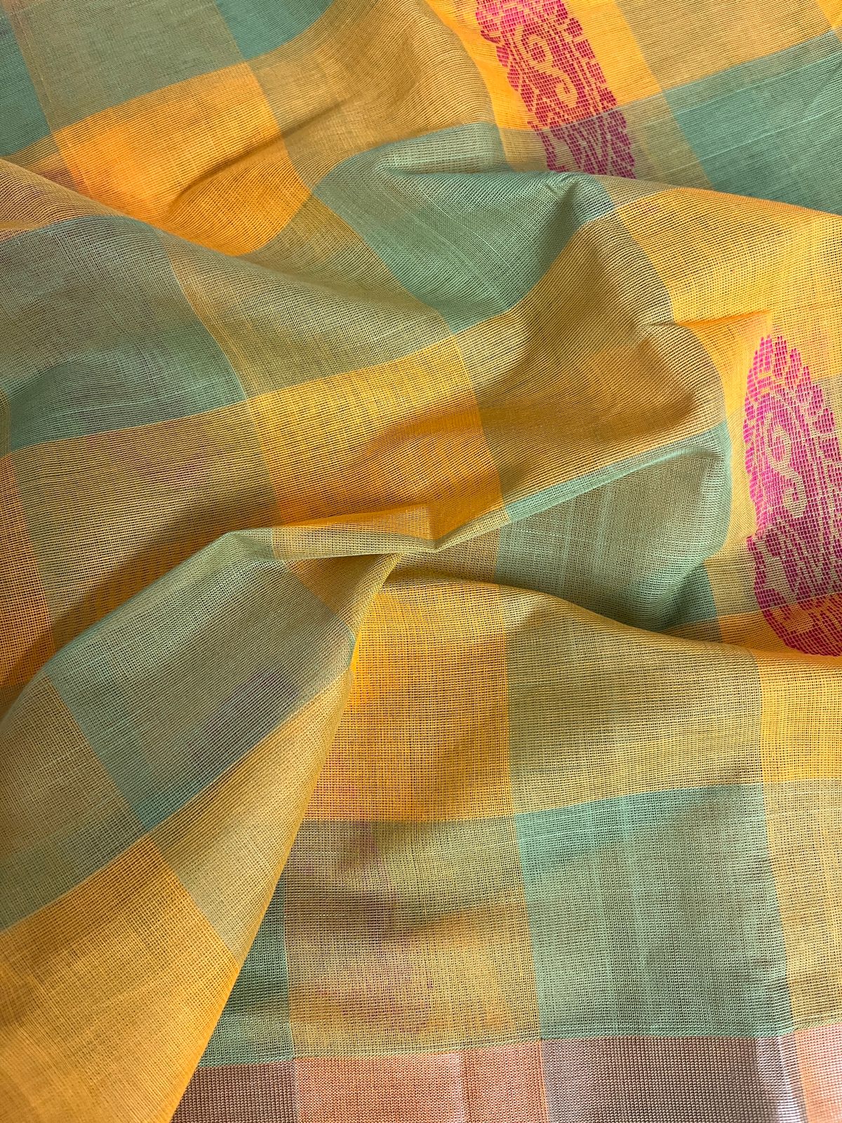 Handloom Fine Cotton Saree with Contrast Pallu and Blouse - 26622