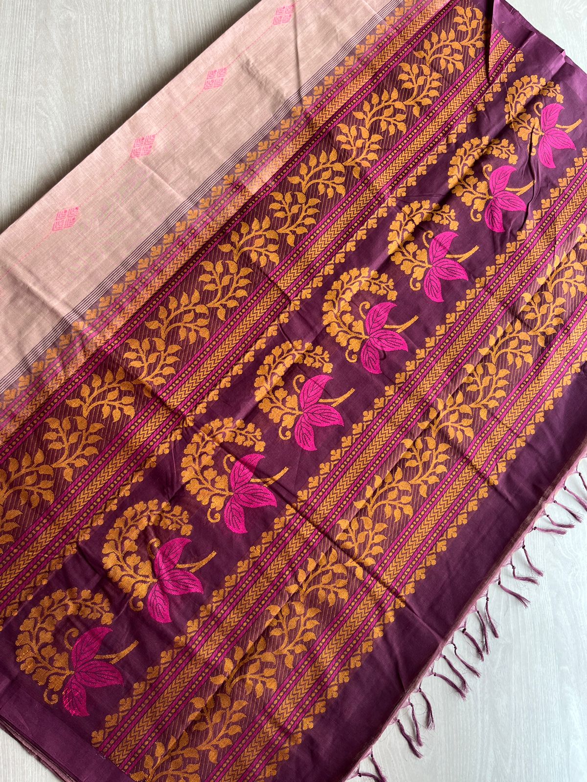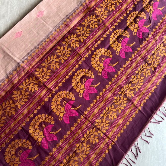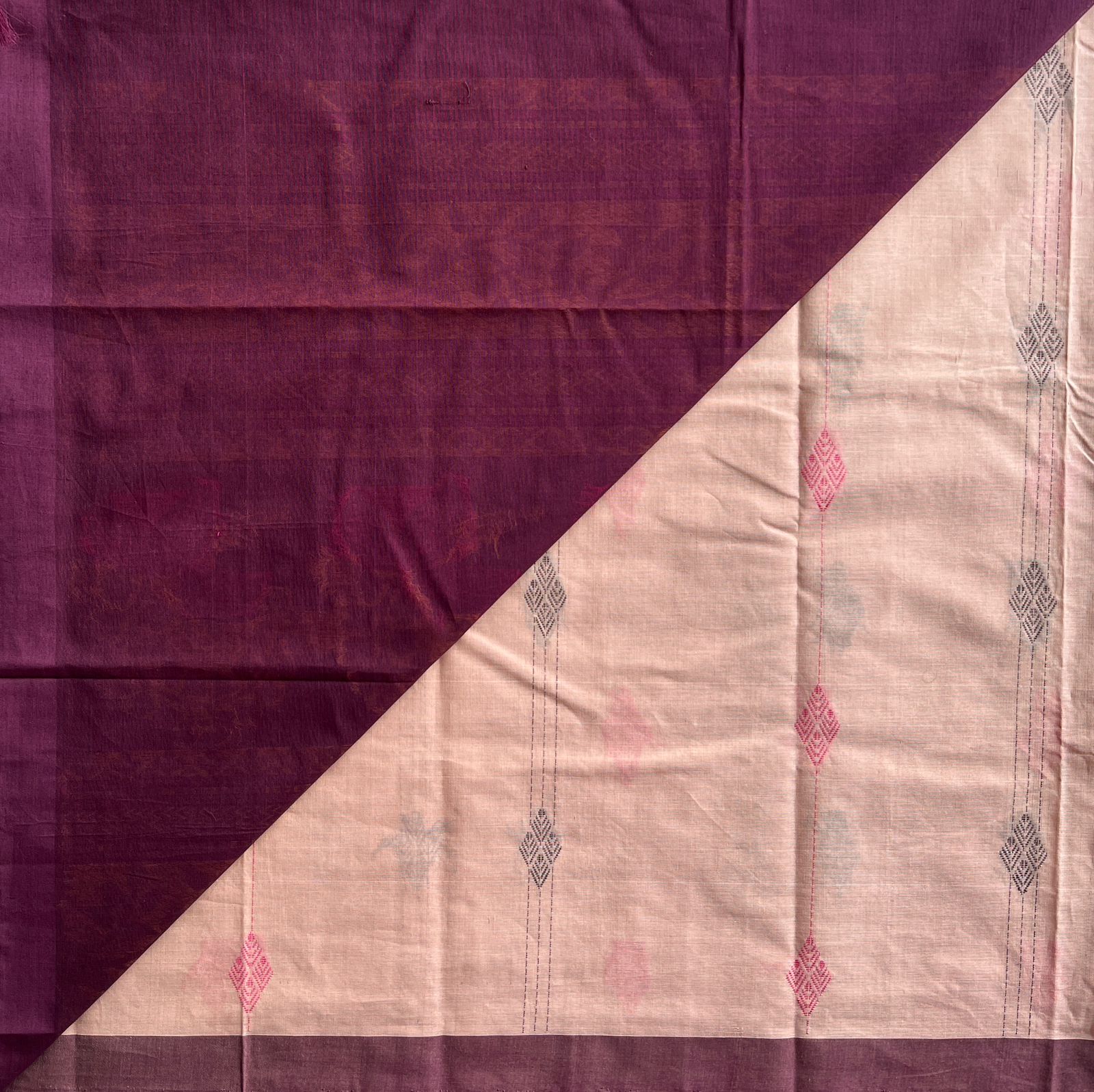 Handloom Fine Cotton Saree with Contrast Pallu and Blouse