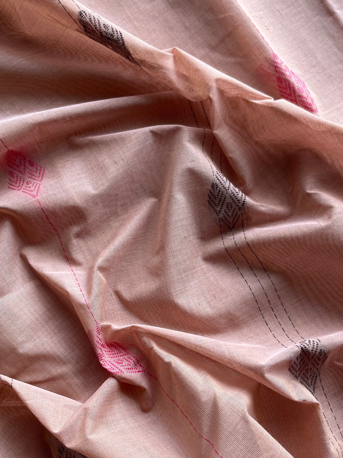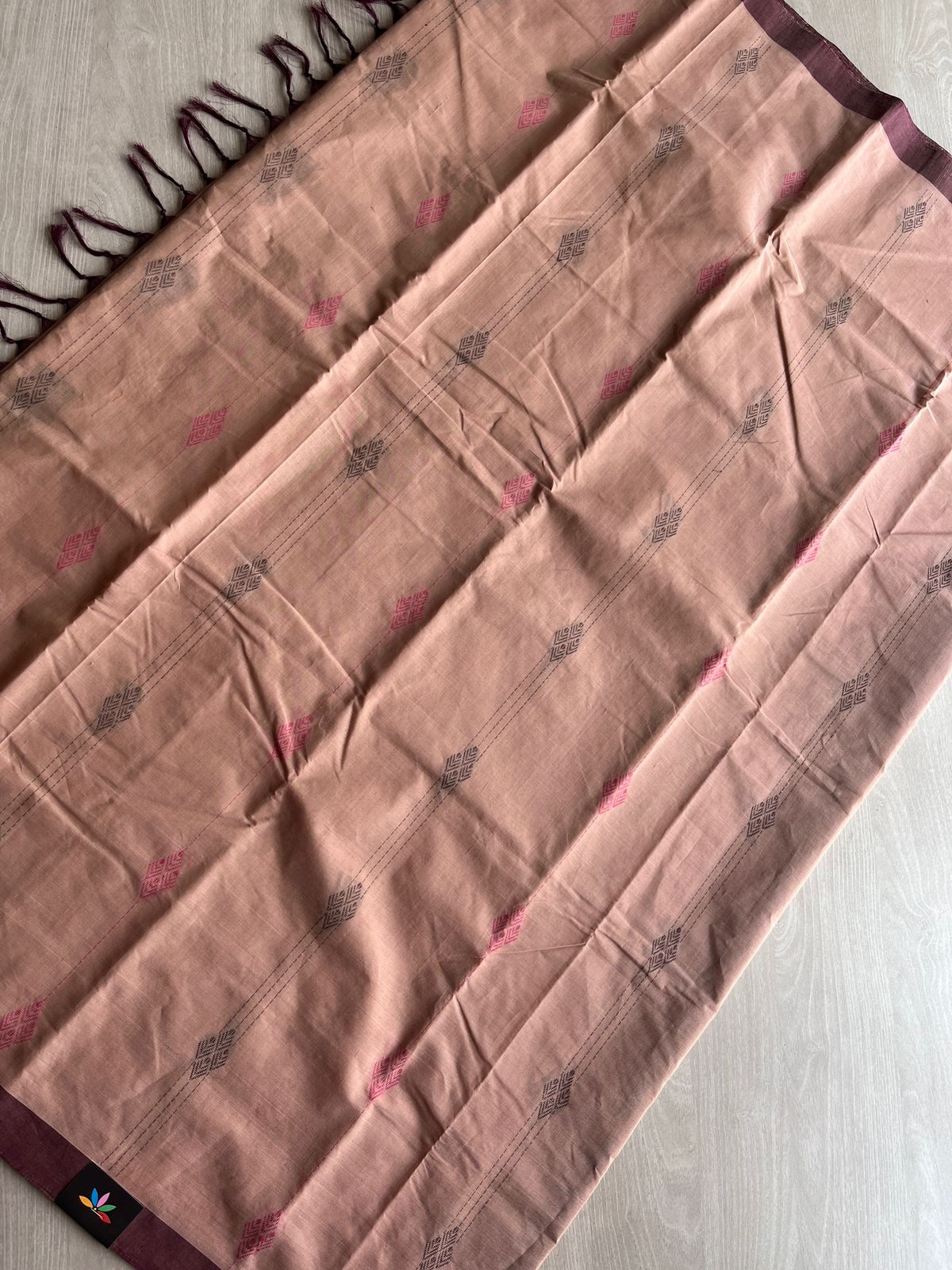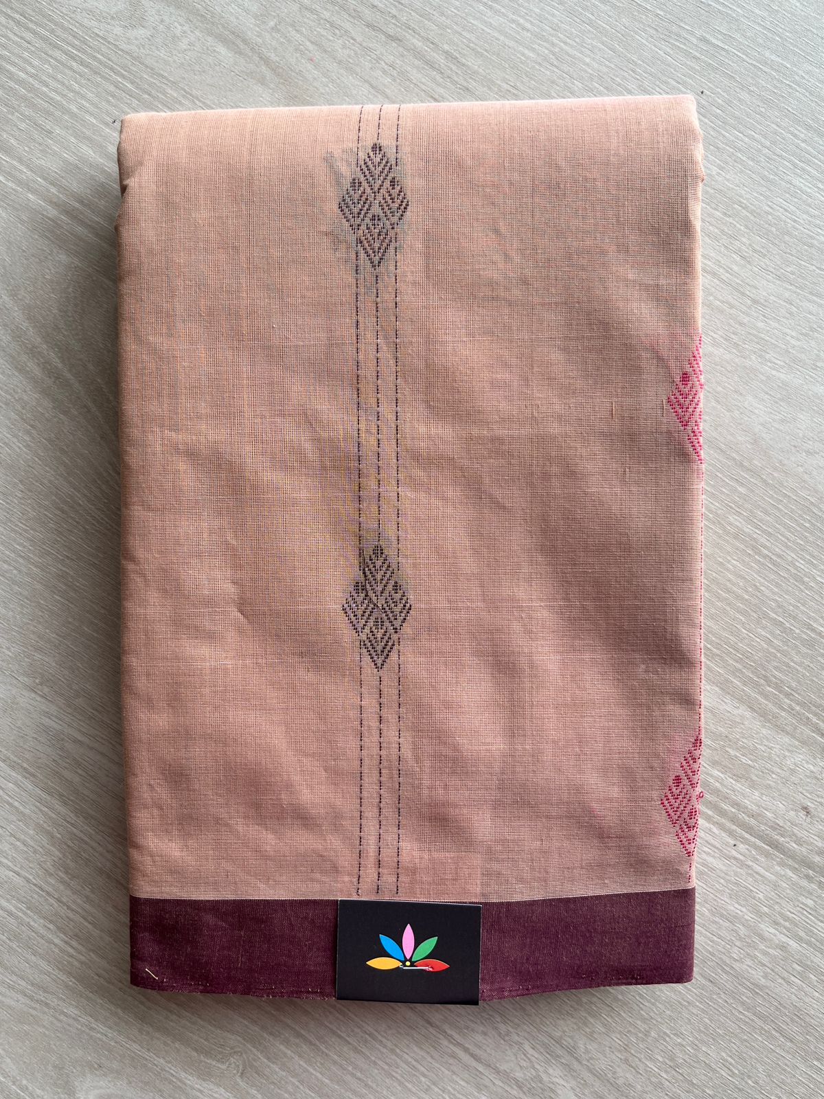Handloom Fine Cotton Saree with Contrast Pallu and Blouse