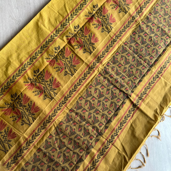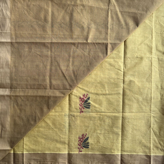 Handloom Fine Cotton Saree with Contrast Pallu and Blouse