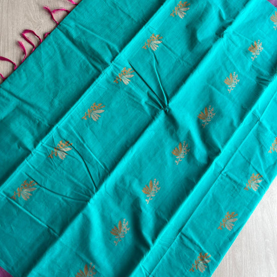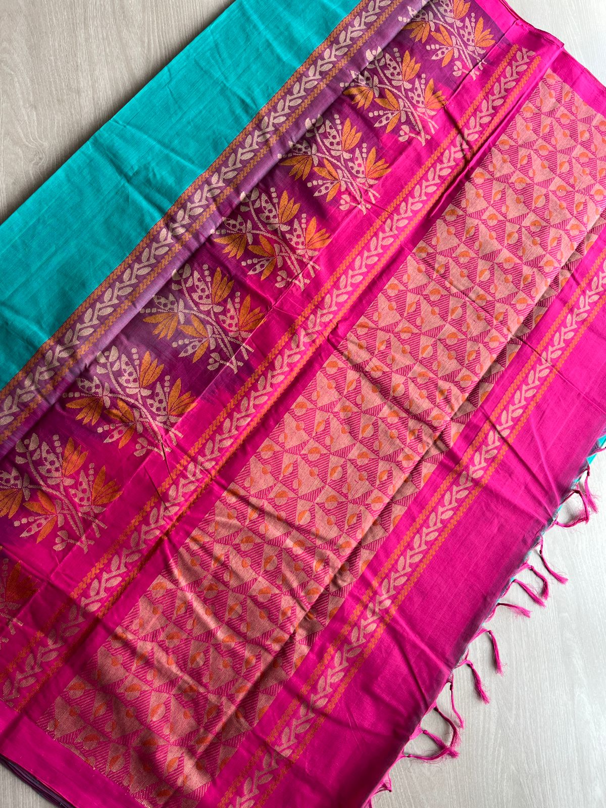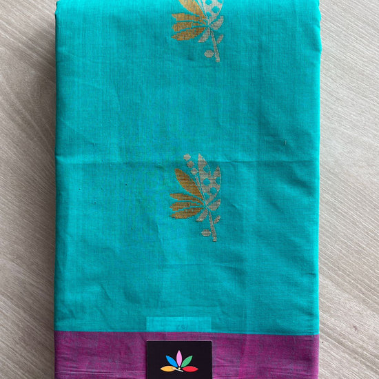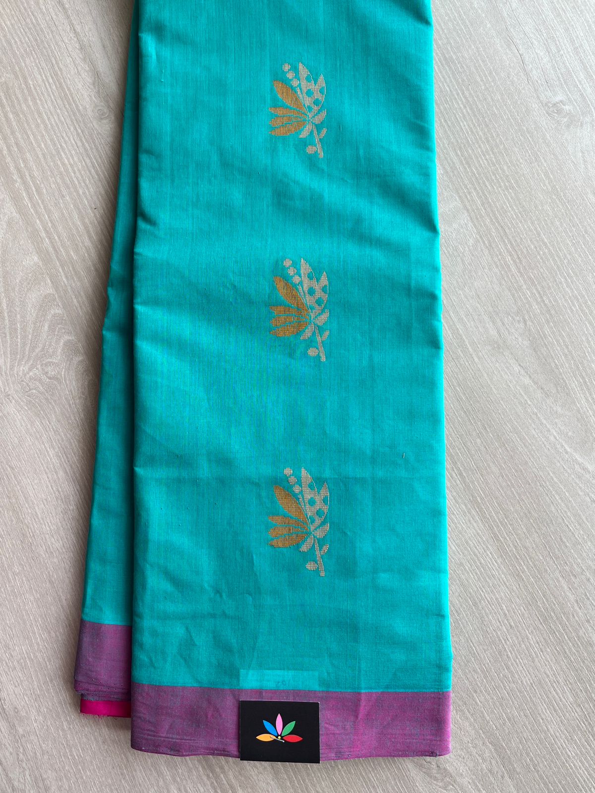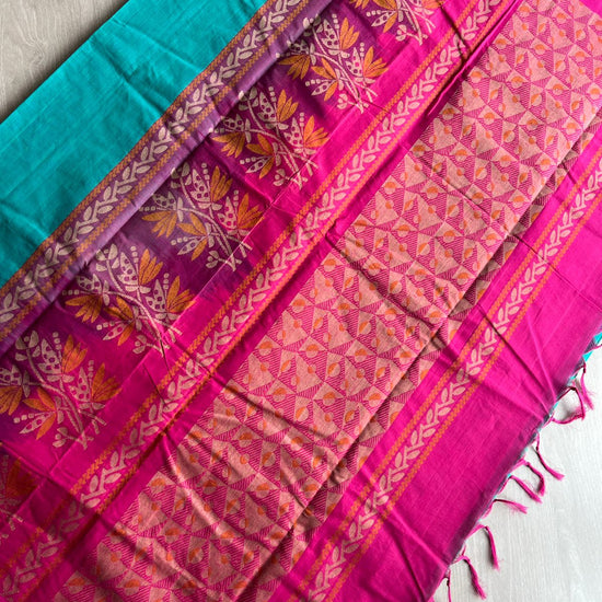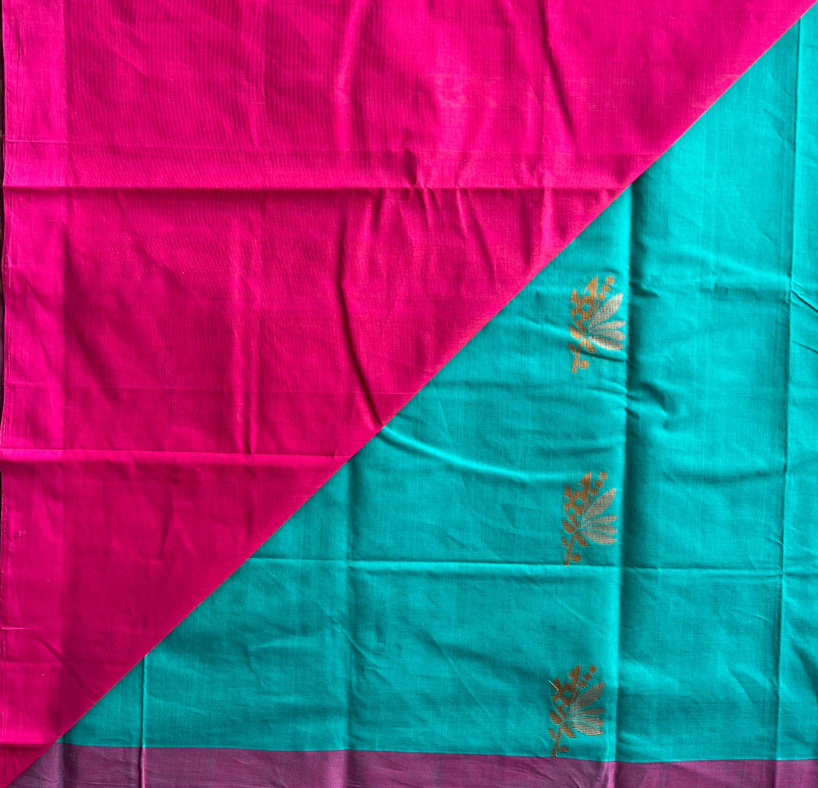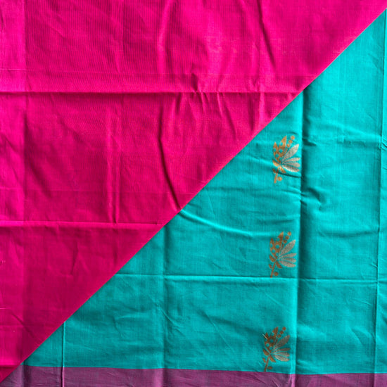Handloom Fine Cotton Saree with Contrast Pallu and Blouse