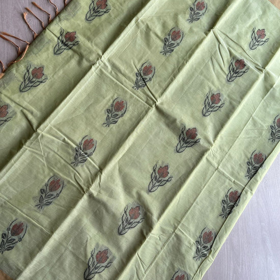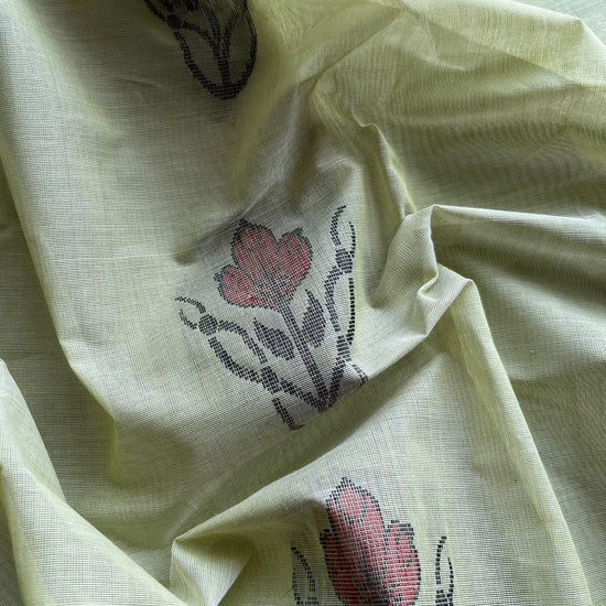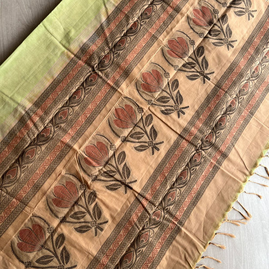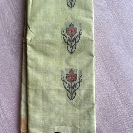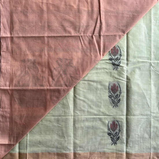 Handloom Fine Cotton Saree with Contrast Pallu and Blouse